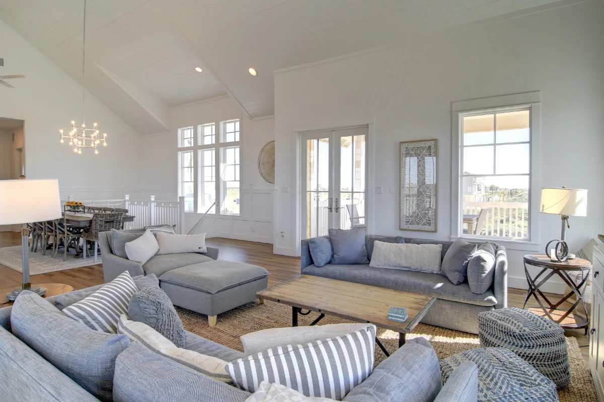 Coastal elegance meets gorgeous Gulf-front. Take your morning coffee out to the balcony as you savor the view and plan your day. The first floor features a Gulf-front master bedroom with a queen bed and a private ensuite bath with a walk-in shower. Adjacent is a guest bedroom with a bunk room with two twin-over-twin bunk beds - perfect for the young and the young-at-heart with a private ensuite. The first floor is also home to a laundry area. The third master suite is located at the end of the hall and features a queen bed and private ensuite with a walk-in shower. The second floor is the heart of this 4-bedroom; 4.5-bathroom home. Here you'll find a chef's kitchen featuring designer cabinets; granite countertops and select stainless steel appliances; including a gas range. The kitchen opens onto the dining area with table seating for 10 guests, while the counter offers seating for another 5. The living room offers a flat screen television, shiplap ceilings and hardwood floors. But it's the sweeping views of the Gulf that command your attention throughout the second floor. Step out onto the balcony and take in the salt air and the sound of the wind through the sea oats and rolling dunes. The third master suite is located on the second floor and features a king bed and a private bathroom with a shower. It also has a private living space with two high-back chairs; flat-screen television; and a private balcony with Gulf views. Sunflower Beach Resort offers direct access to the pristine Gulf Coast Beaches. Bike and Golf Cart Rentals; Walking Distance to Palmilla Golf Course; Adult Only and Family Pools. Sunflower Beach Resort is under development, and you may encounter some construction during your stay.