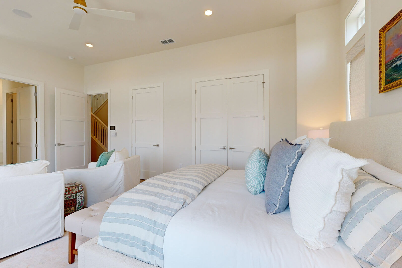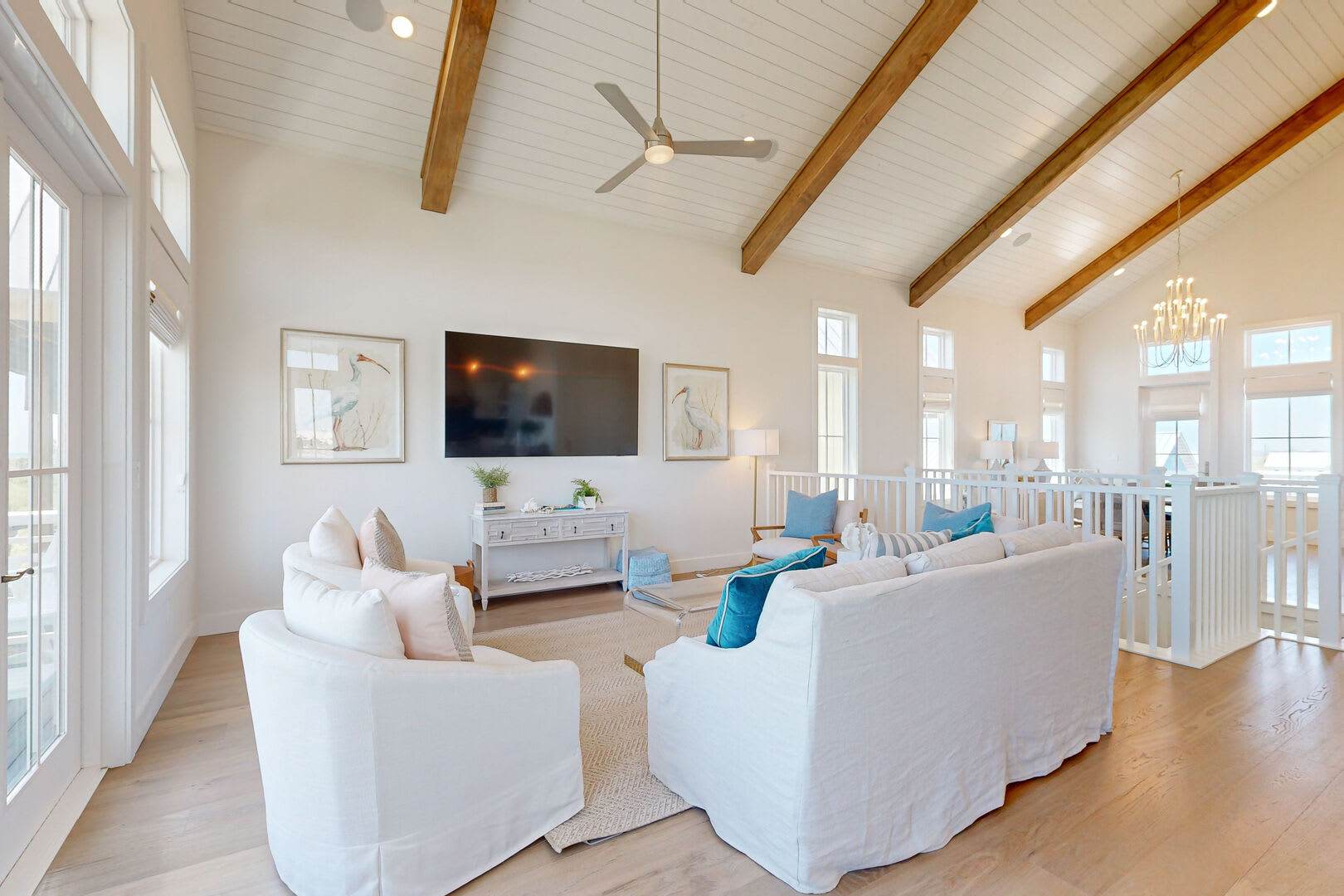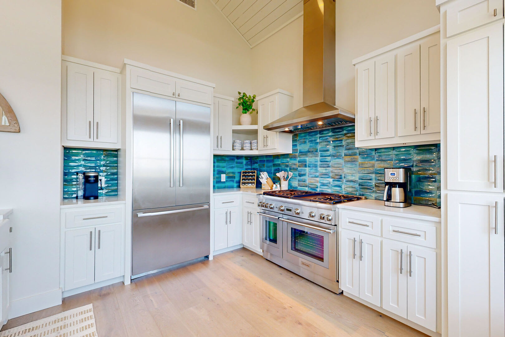 The first level offers a cozy living area complete with a TV and a beverage fridge, ideal for relaxing evenings after a day at the beach. This level also features a bunk room, perfect for accommodating extra guests or family members.