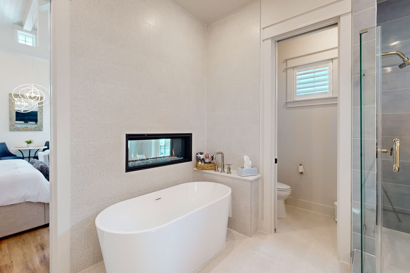 But perhaps the crown jewel of the Bohemian Breeze is its lavish bathroom, boasting a soaking tub for your relaxation and a walk-in shower crafted to wash away the remnants of daily routine, leaving you refreshed, rejuvenated, and ready to explore.