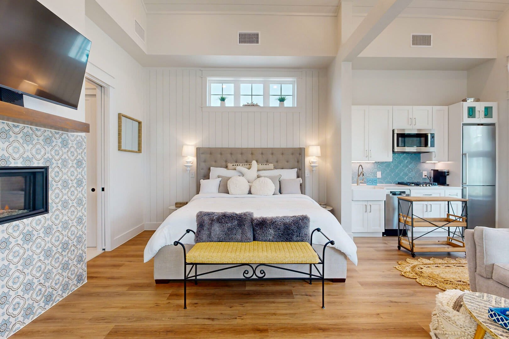Crafted for beachgoers and families alike, this exquisite studio is more than just a vacation rental - it's a promise of unforgettable memories by the sea. With an inviting coastal decor that mirrors the harmony of the beach outside, the Bohemian Breeze comfortably accommodates two guests, making it an ideal retreat for an intimate getaway.