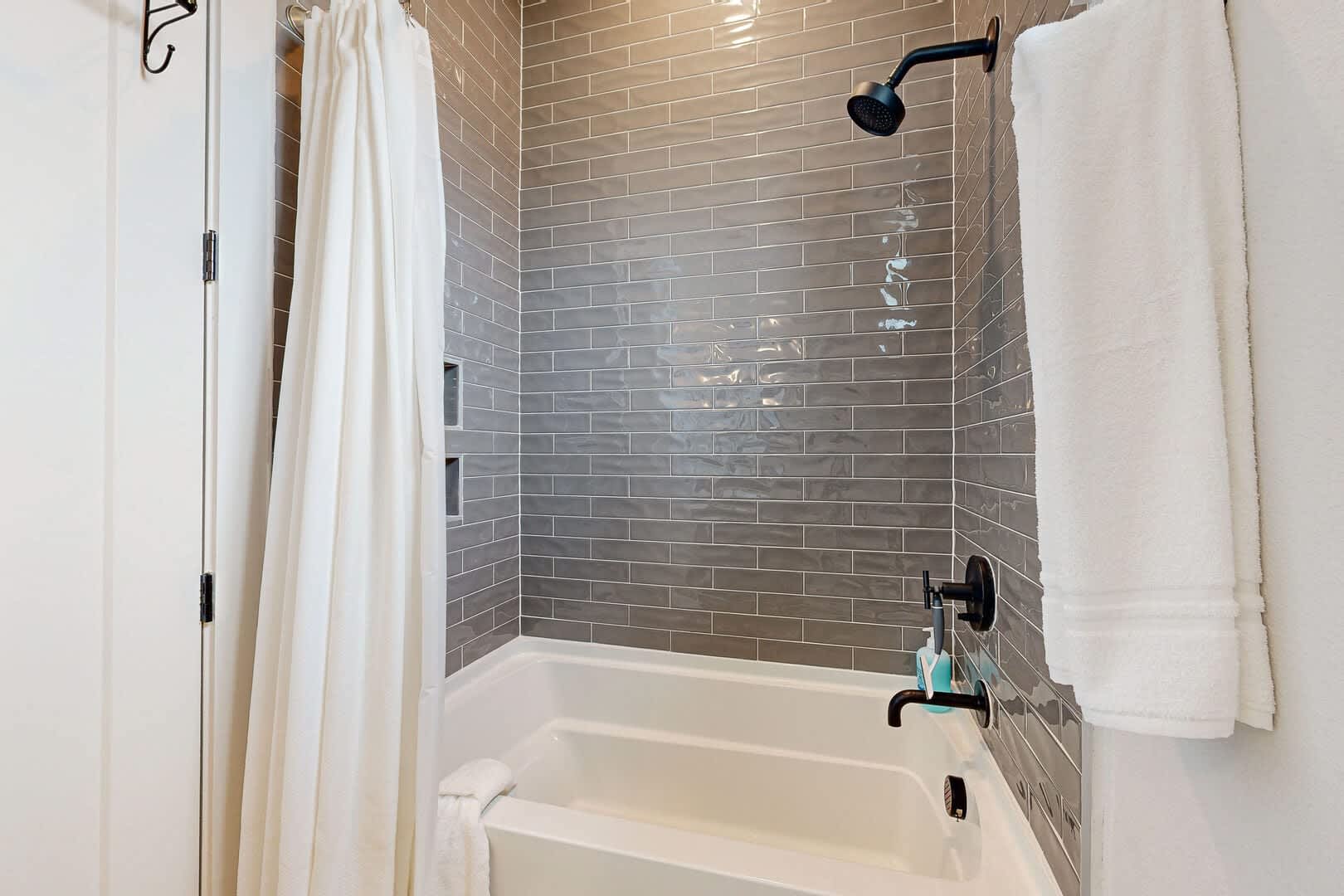 BR2 Queen, TV, Closet, ensuite bath w/ tub/shower combo, single vanity