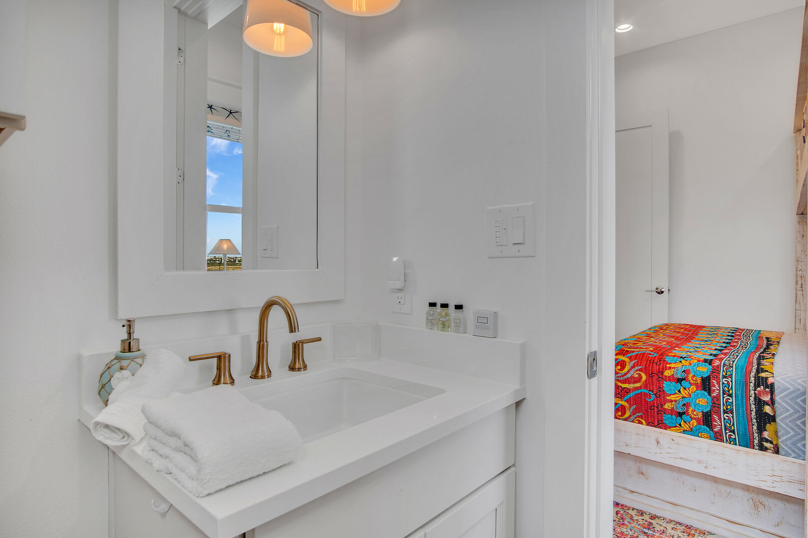 This gorgeous; two-story Sunflower Beach home offers 2 bedrooms; 2.5 bathrooms; accommodations for 7 guests; and a host of incredible amenities—including a lovely private deck; and an unbeatable location just steps from the beach and a short bike ride. Spacious; open floor plan in the main living level provides plenty of room for everyone to relax! Guests will love the large flat-screen television and comfy, plush living room furniture. The living room sofa is a comfy and plush king-size sleeper sofa. The kitchen's granite countertops; stainless steel appliances; and gas range make preparing meals a delight; and the nearby wet bar offers a great place for preparing evening cocktails. Enjoy additional sleeping on the king-sized sofa bed. The luxurious master bedroom offers a plush king-size bed; a flat-screen TV and a private ensuite bathroom with a walk-in shower; a tub; and a dual-sink vanity. The guest bedroom offers a bunk bed with an extra-long twin over queen and a private bathroom with a shower/tub combo. After a fun day in PA; drop your beach gear and soak up some sun at one of the two Premier Sunflower Pools. Sunflower Beach Resort offers direct access to the pristine Gulf Coast Beaches. Bike and Golf Cart Rentals; Walking Distance to Palmilla Golf Course; Adult Only and Family Pools. Sunflower Library Stations; Community Lounge Areas and Much, Much, more! No pets