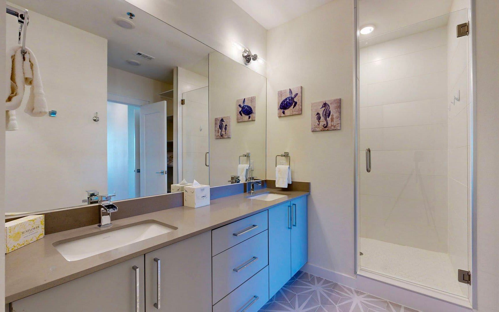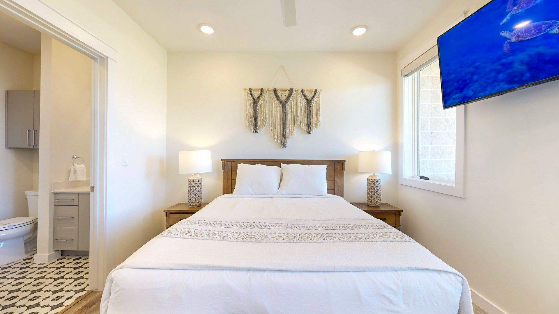 BD2 King, TV, Chest, Closet, Desk, Monitor with laptop docking station, ensuite bath w/ walk-in shower, dual vanity