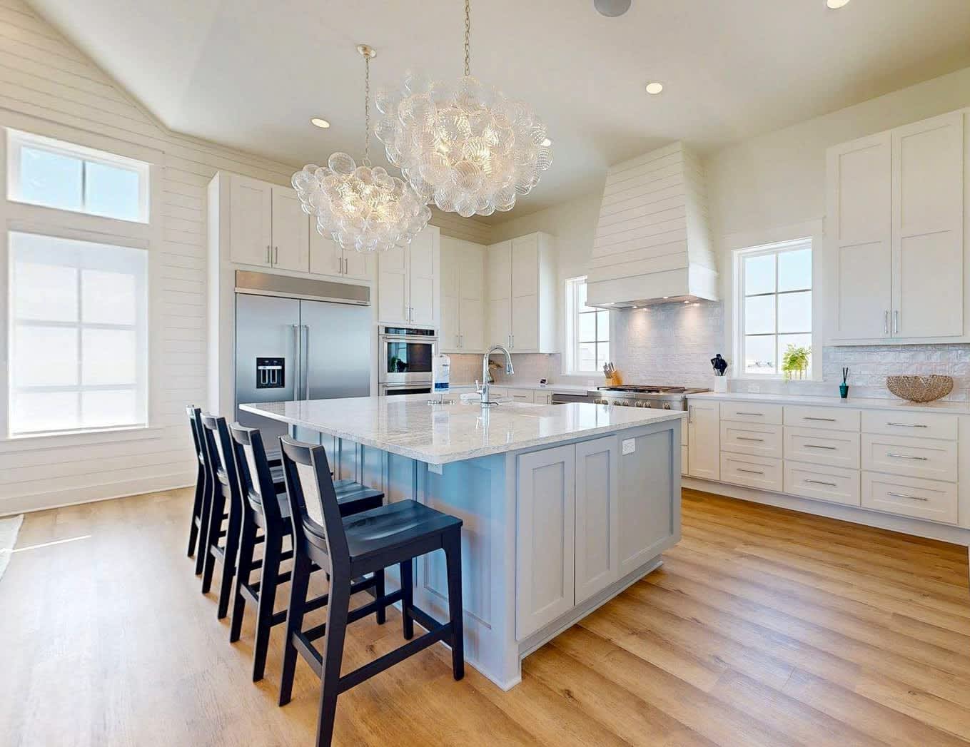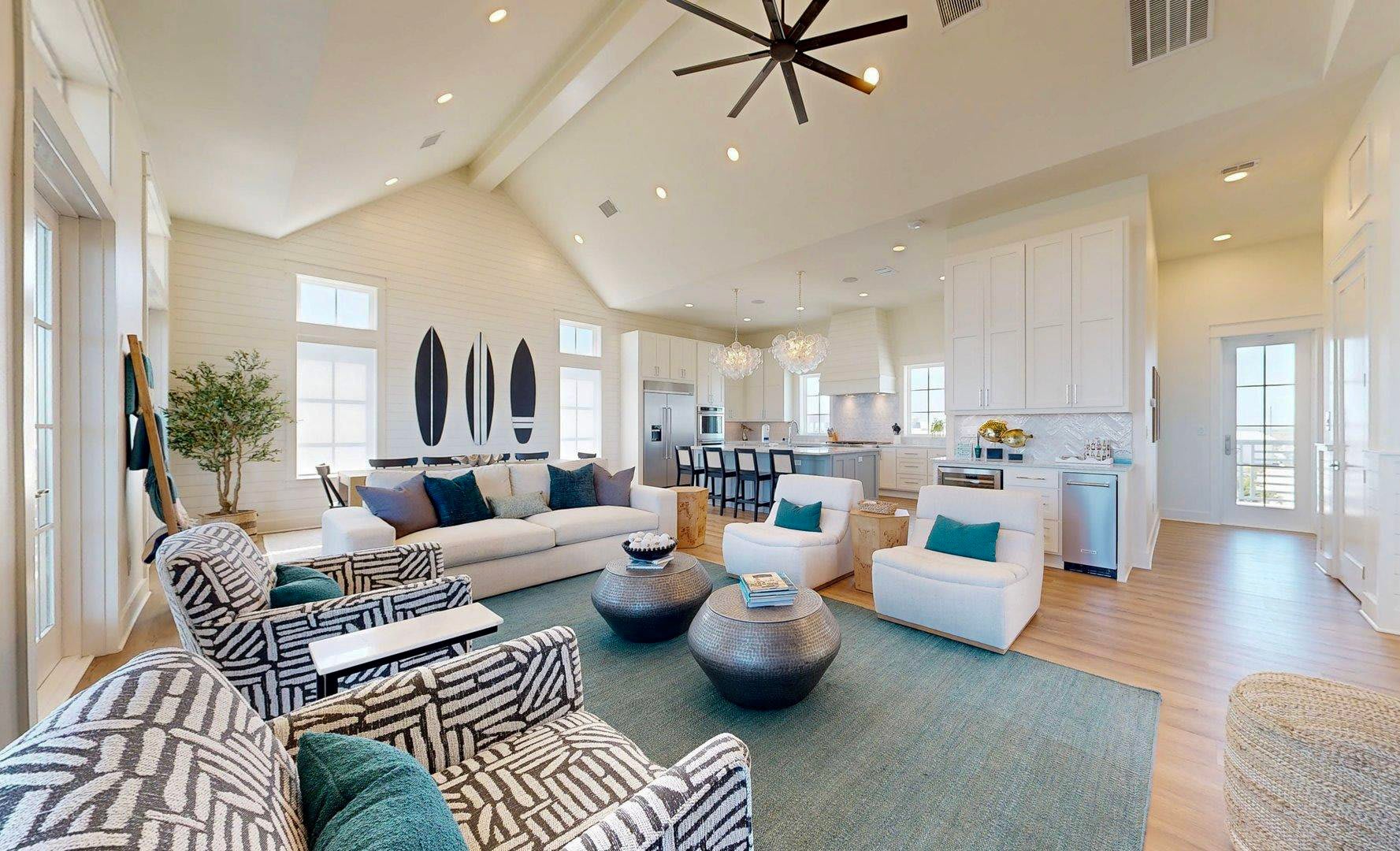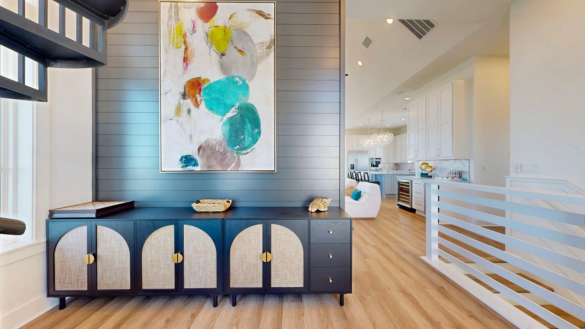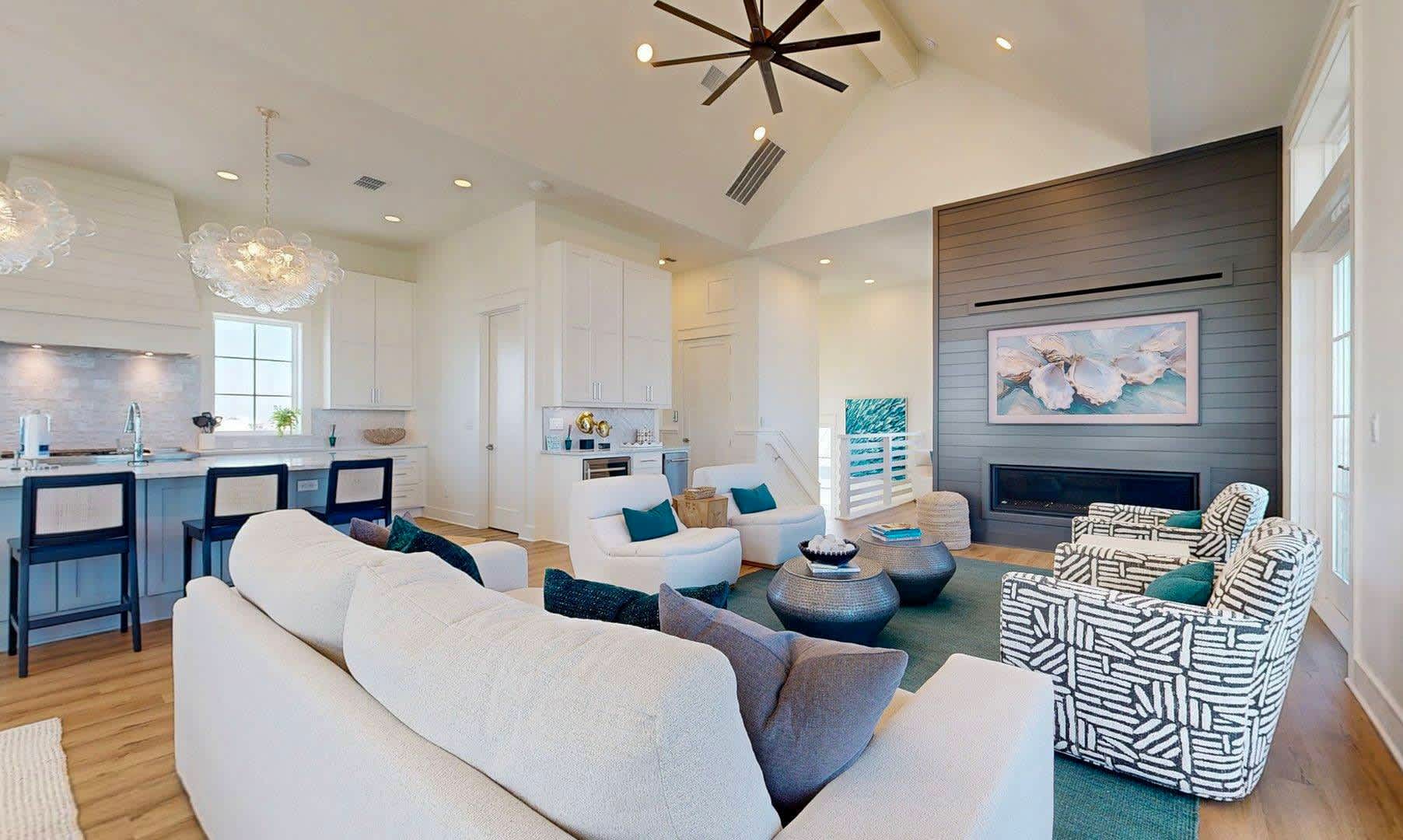 The third-floor living area is bright and open, designed for comfort and connection. The gourmet kitchen is equipped with top-tier appliances, including an air fryer, double oven, two dishwashers, a Keurig coffee maker (bring your favorite K-Cups), a wine/beverage fridge, and an ice maker. A second ice maker in the first-floor game room ensures you’re always ready for entertaining. Dine indoors or enjoy al fresco meals on the patio with ocean views, complete with a gas grill for barbecues.