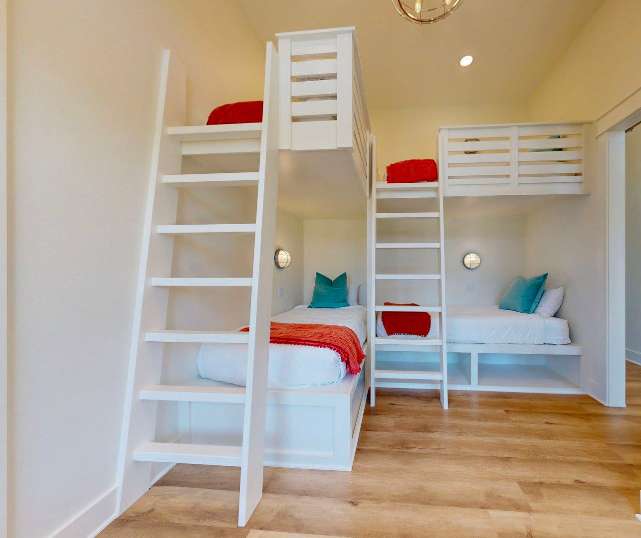 Bedroom 2: Bunk room with 2 sets of bunks (4 XL-twin beds)