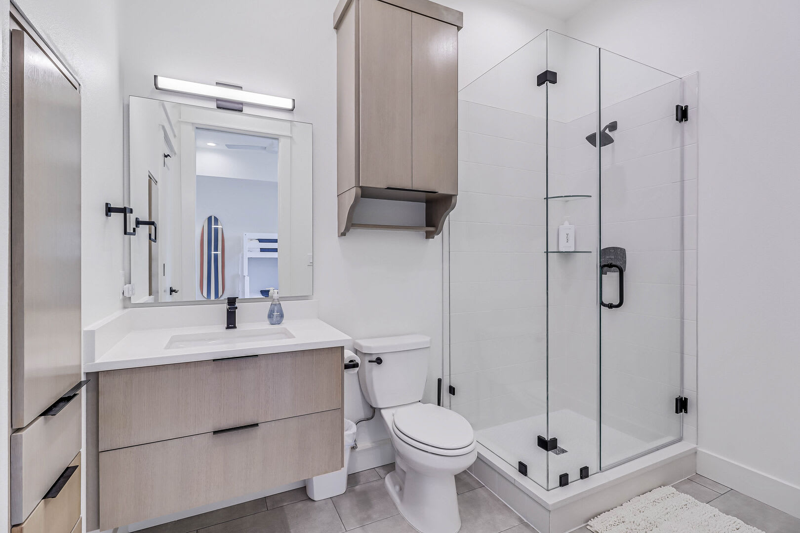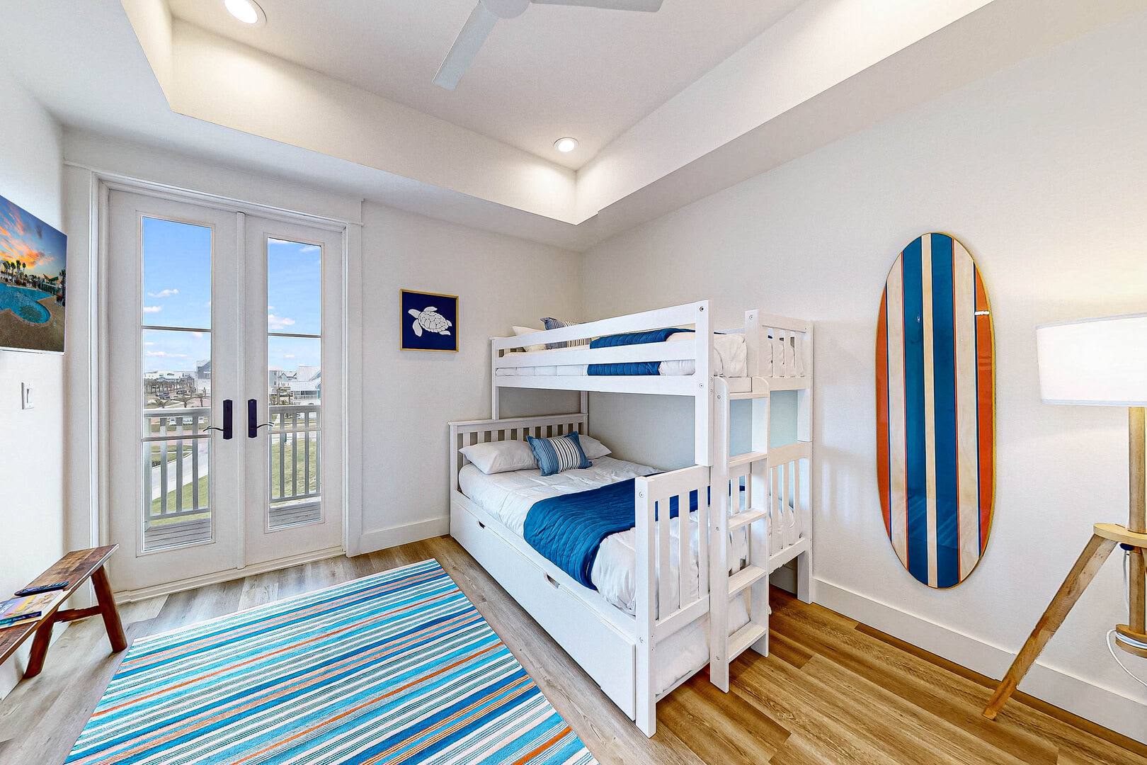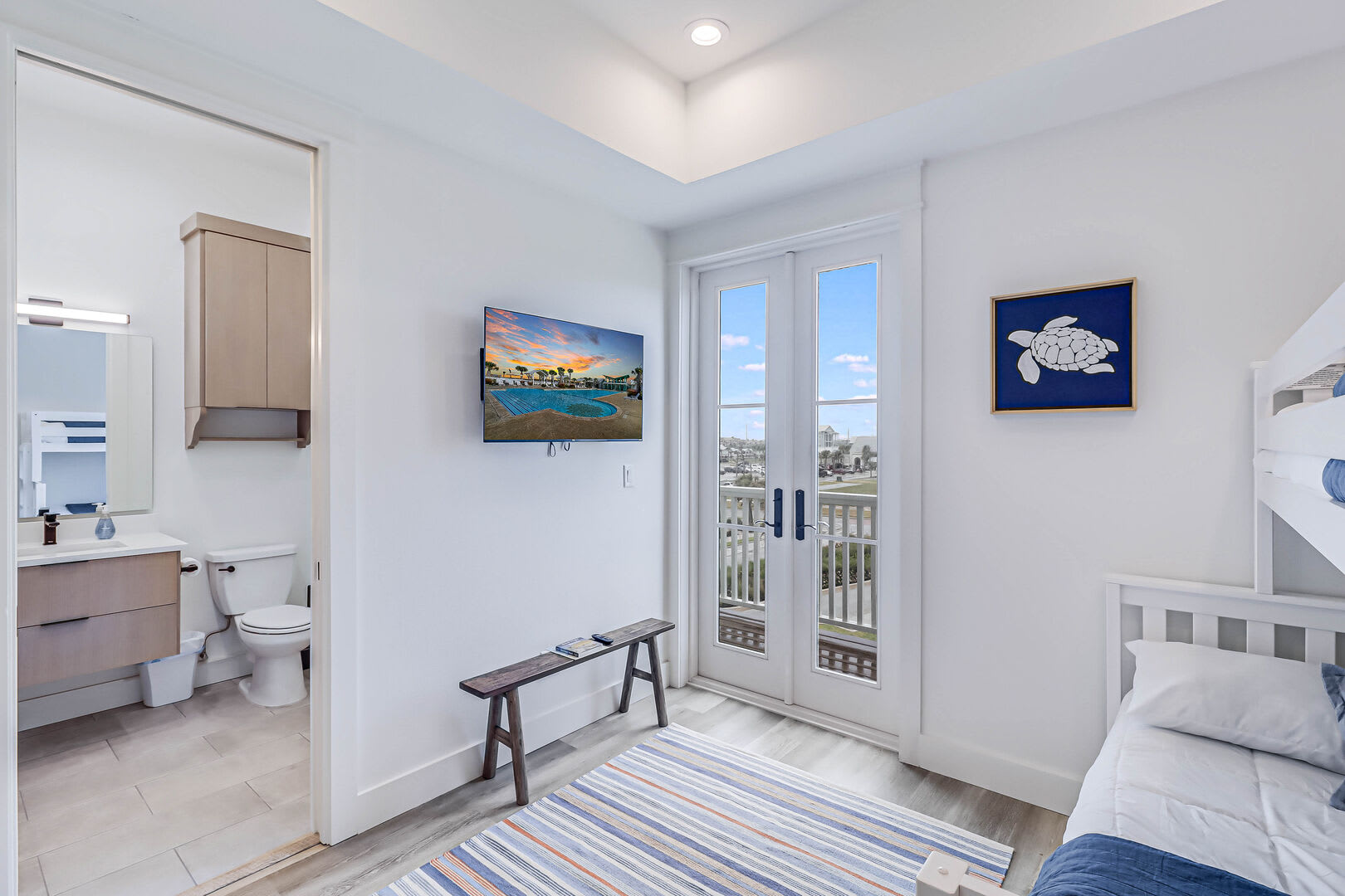 BR2-(3rd level) Queen over Queen bunk, TV, closet, ensuite bath w/ walk-in shower, single vanity