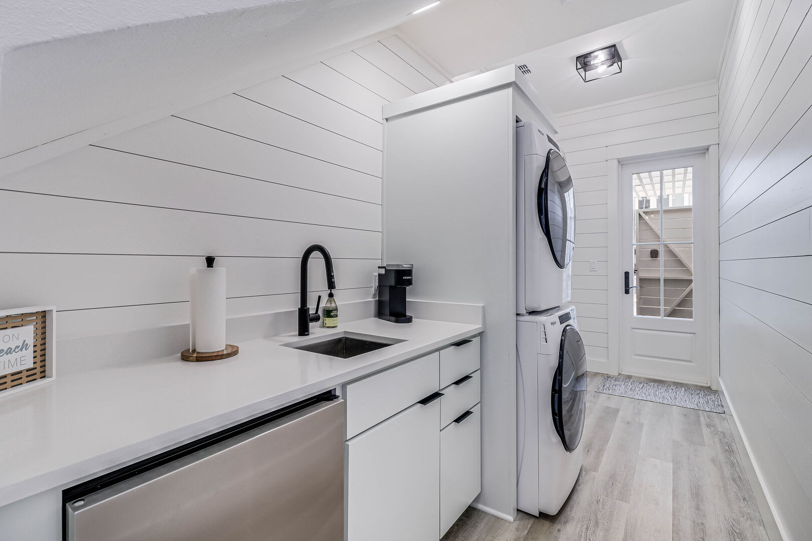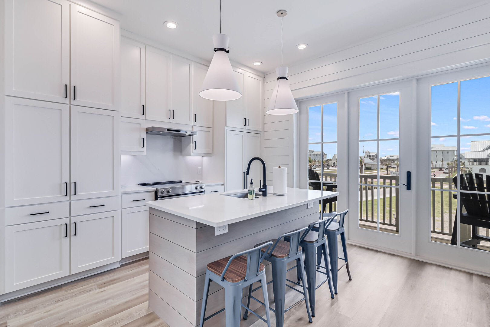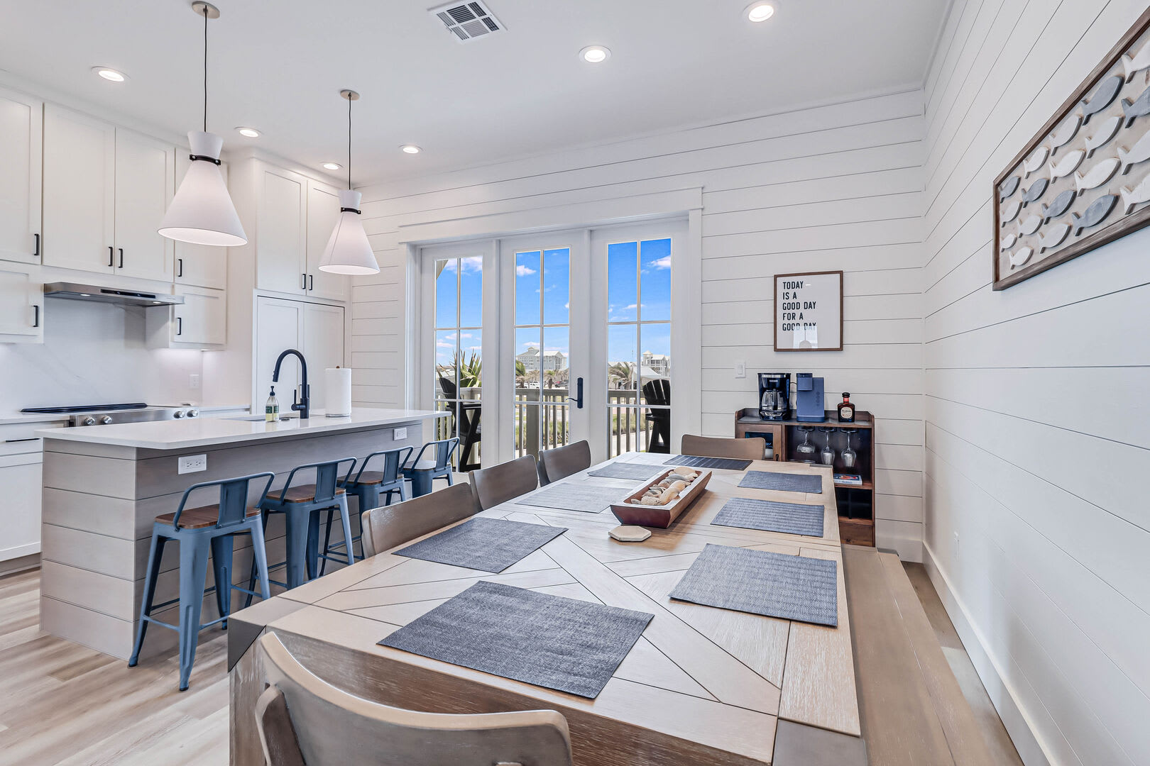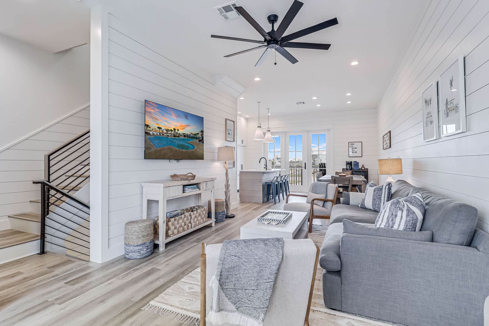 Step inside this luxurious retreat to discover chic finishes throughout, from the modern kitchen to the inviting living and dining spaces. On the ground floor, a comfortable guest suite awaits, complemented by a convenient laundry nook and a drop zone equipped with a mini fridge for easy beach snack preparation. The garage/rec room provides the perfect space for entertainment, featuring a Foosball table and various games to enjoy.
