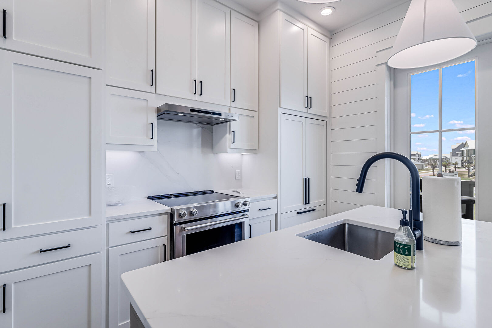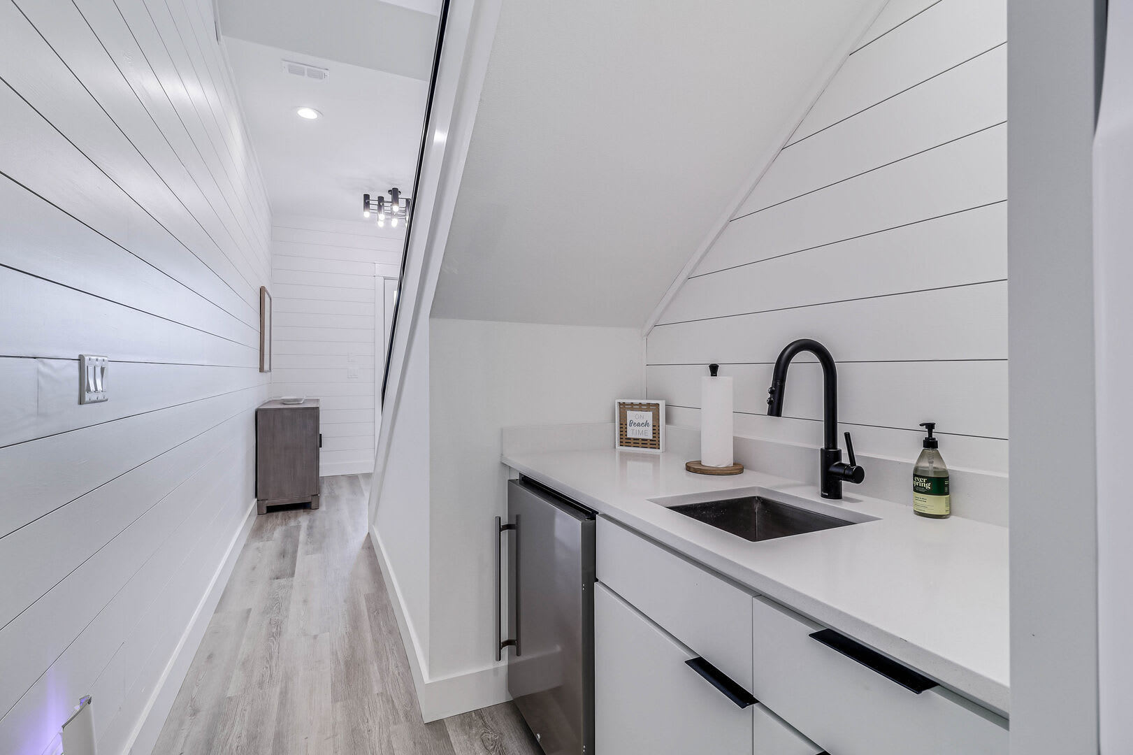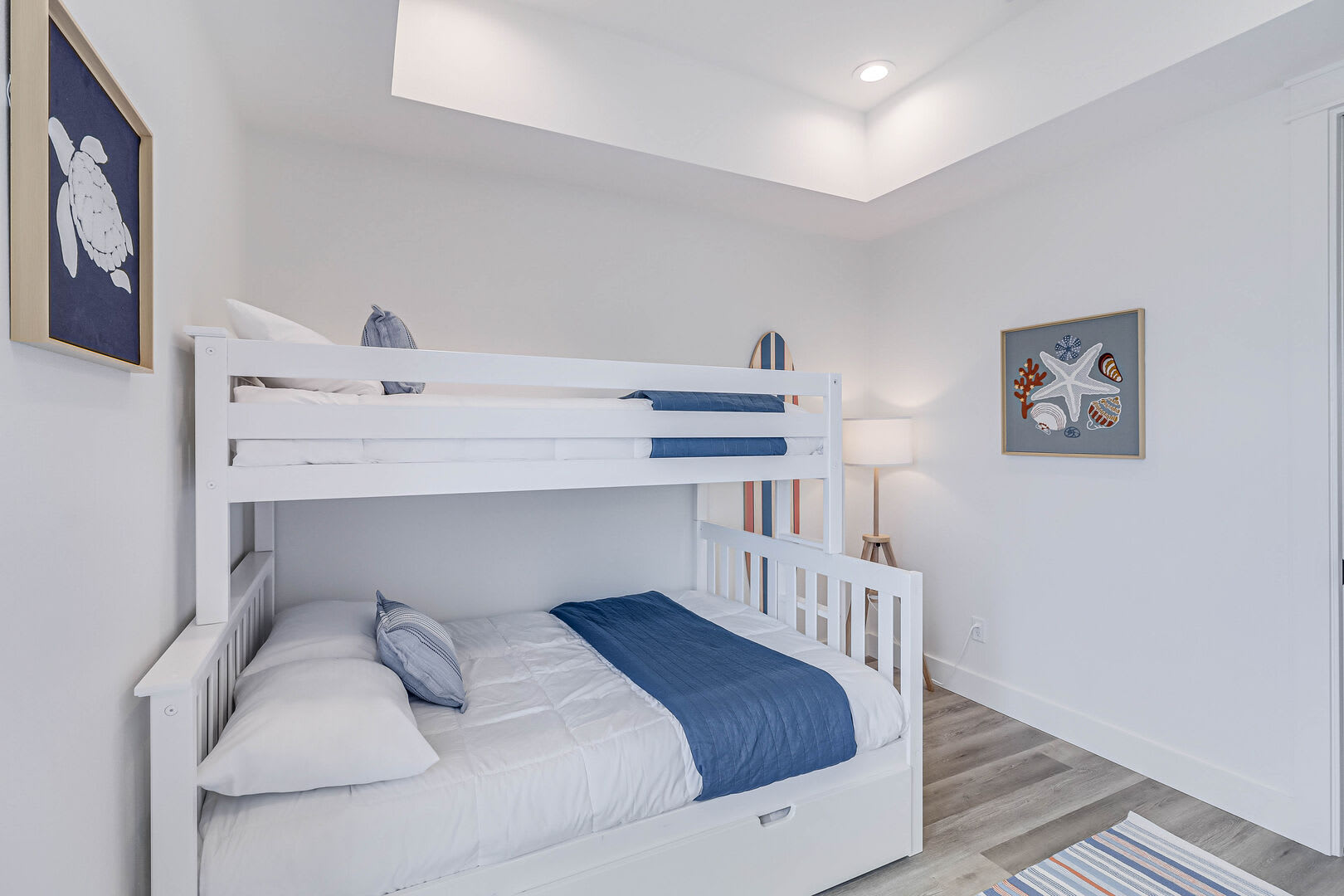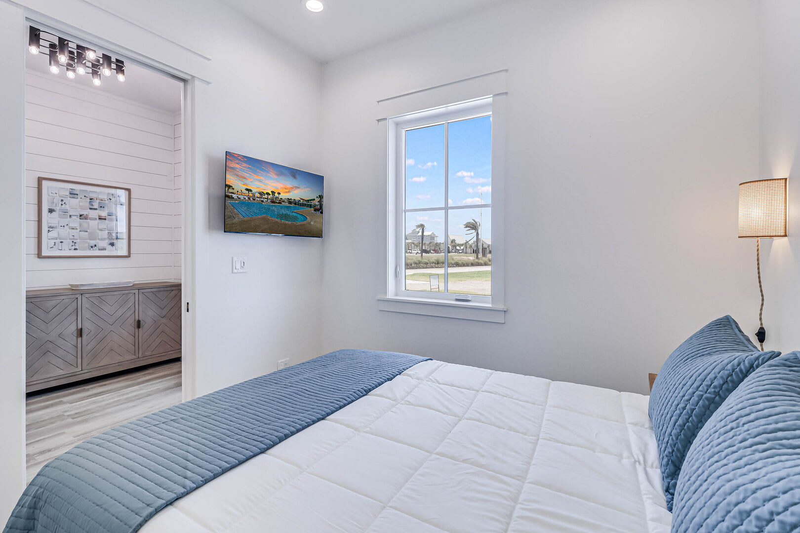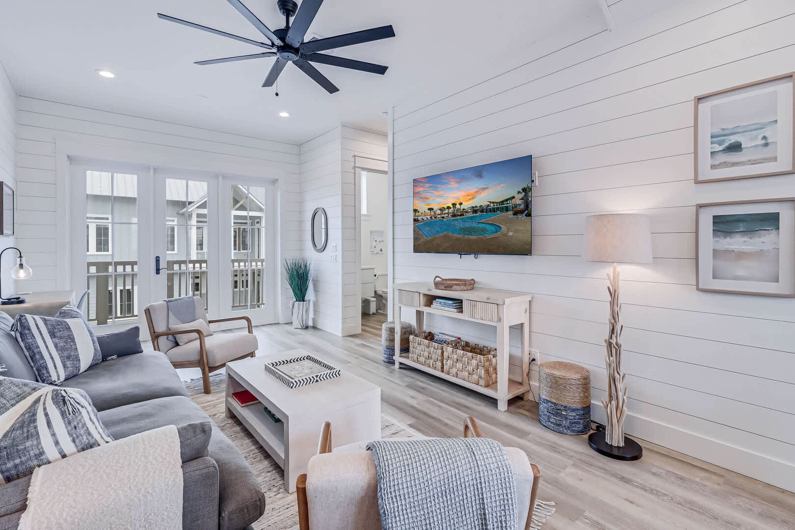 Step inside this luxurious retreat to discover chic finishes throughout, from the modern kitchen to the inviting living and dining spaces. On the ground floor, a comfortable guest suite awaits, complemented by a convenient laundry nook and a drop zone equipped with a mini fridge for easy beach snack preparation. The garage/rec room provides the perfect space for entertainment, featuring a Foosball table and various games to enjoy.