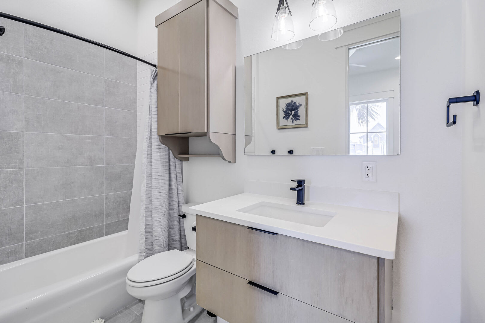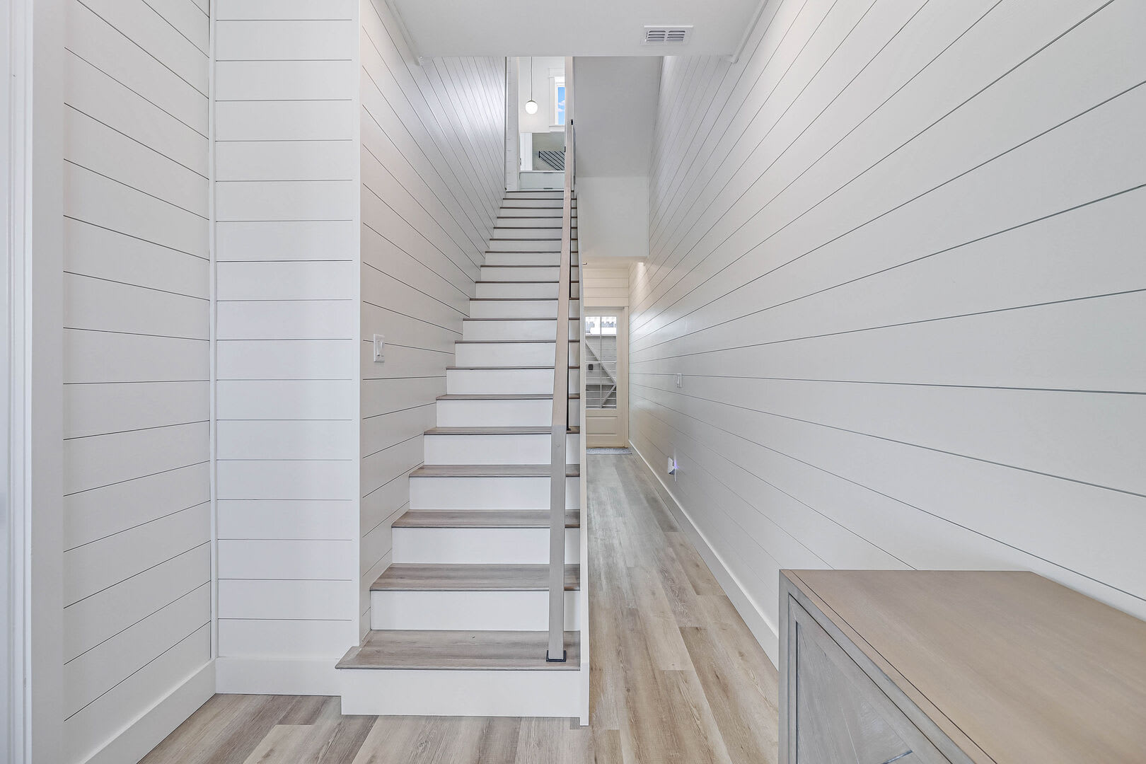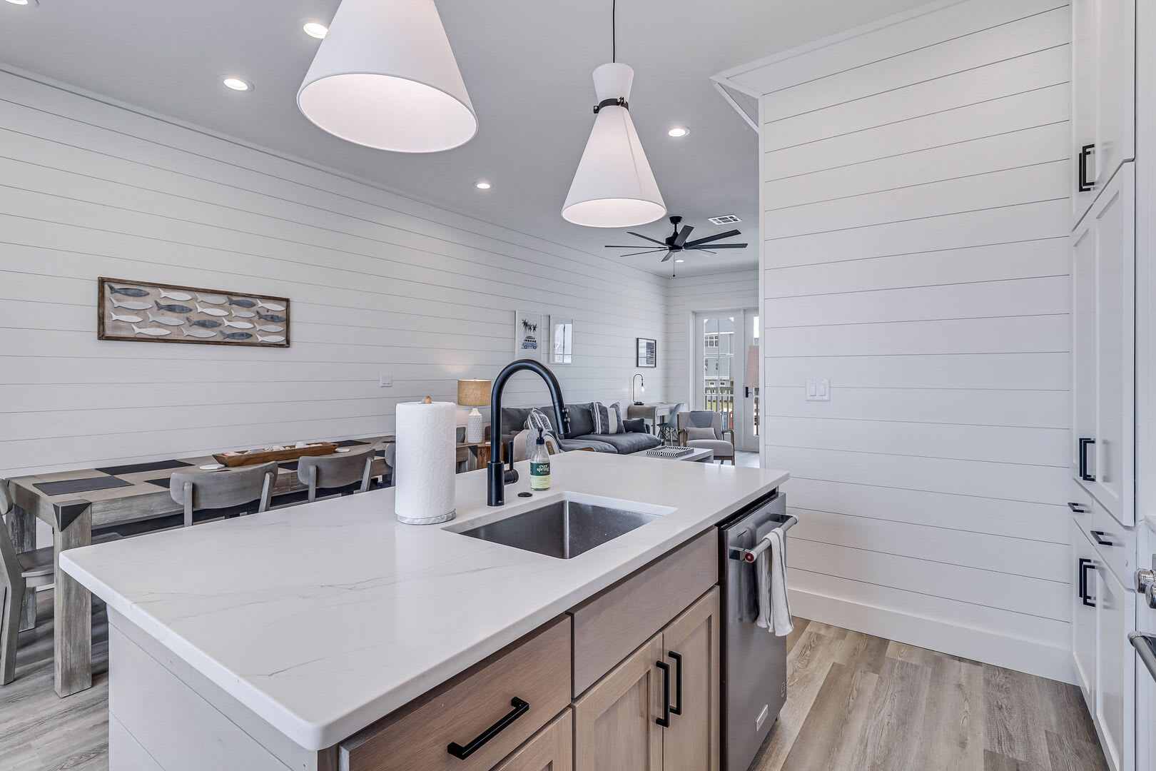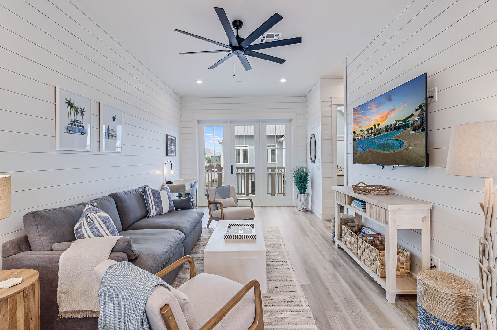 Step inside this luxurious retreat to discover chic finishes throughout, from the modern kitchen to the inviting living and dining spaces. On the ground floor, a comfortable guest suite awaits, complemented by a convenient laundry nook and a drop zone equipped with a mini fridge for easy beach snack preparation. The garage/rec room provides the perfect space for entertainment, featuring a Foosball table and various games to enjoy.