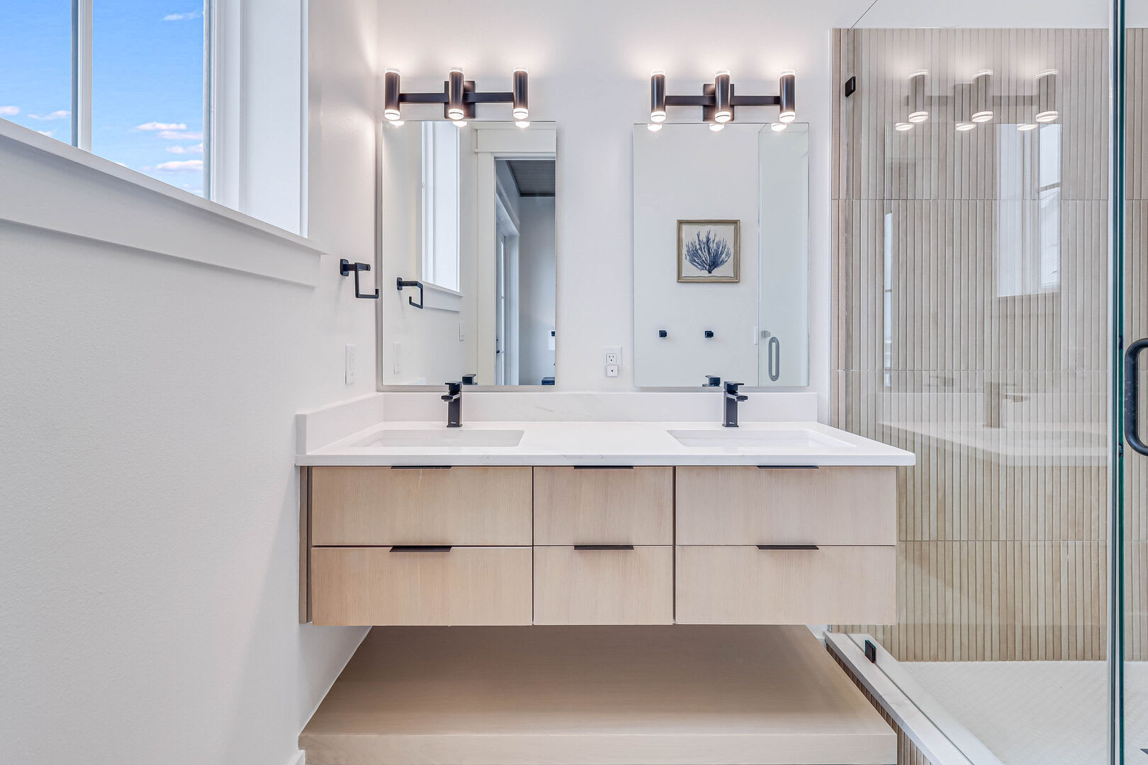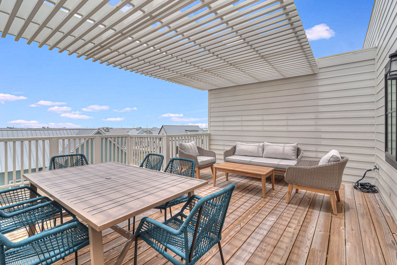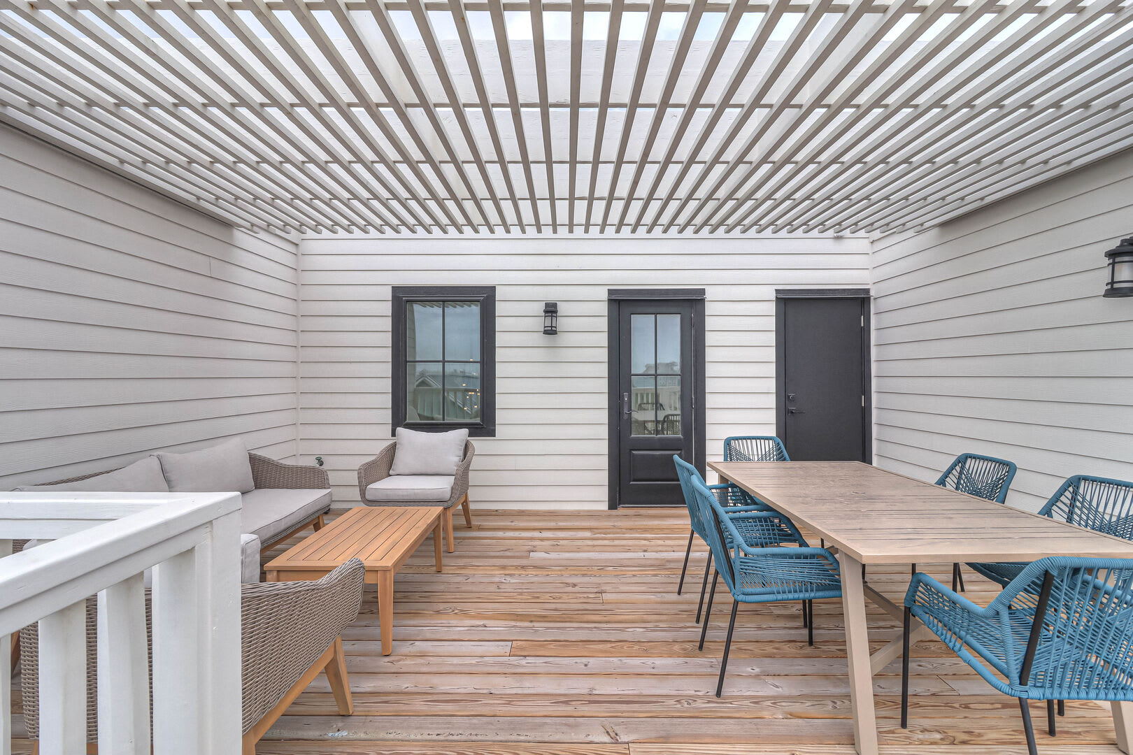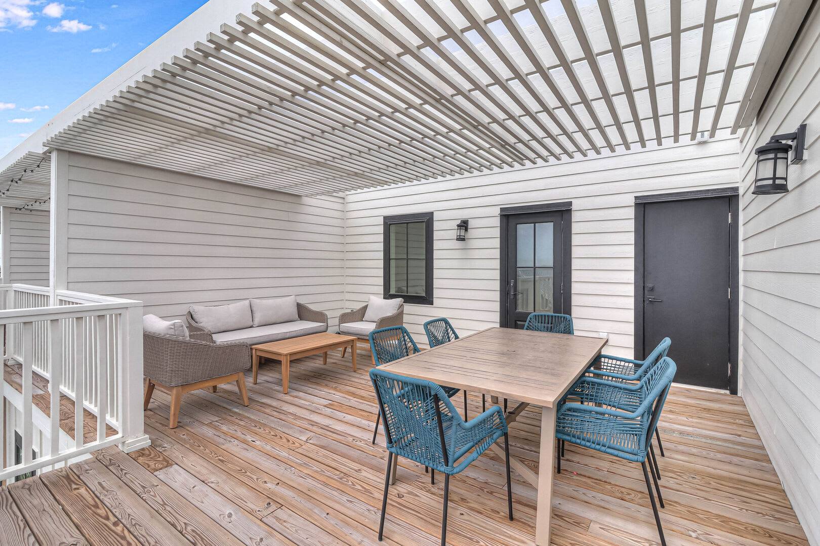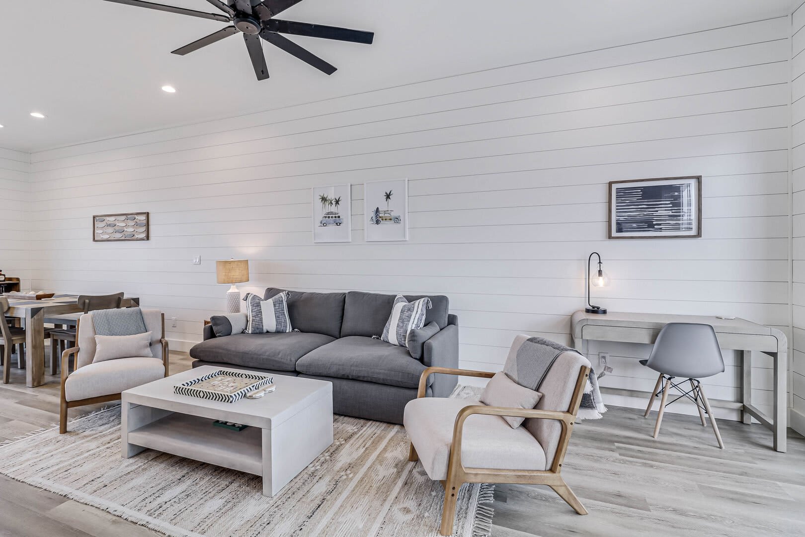 Step inside this luxurious retreat to discover chic finishes throughout, from the modern kitchen to the inviting living and dining spaces. On the ground floor, a comfortable guest suite awaits, complemented by a convenient laundry nook and a drop zone equipped with a mini fridge for easy beach snack preparation. The garage/rec room provides the perfect space for entertainment, featuring a Foosball table and various games to enjoy.