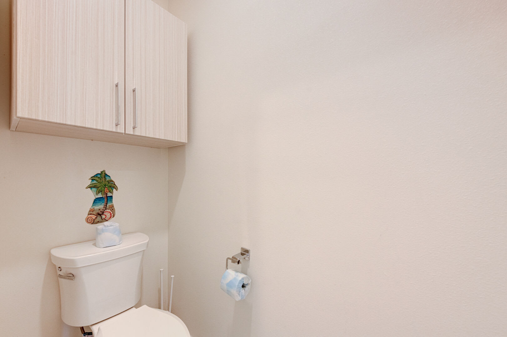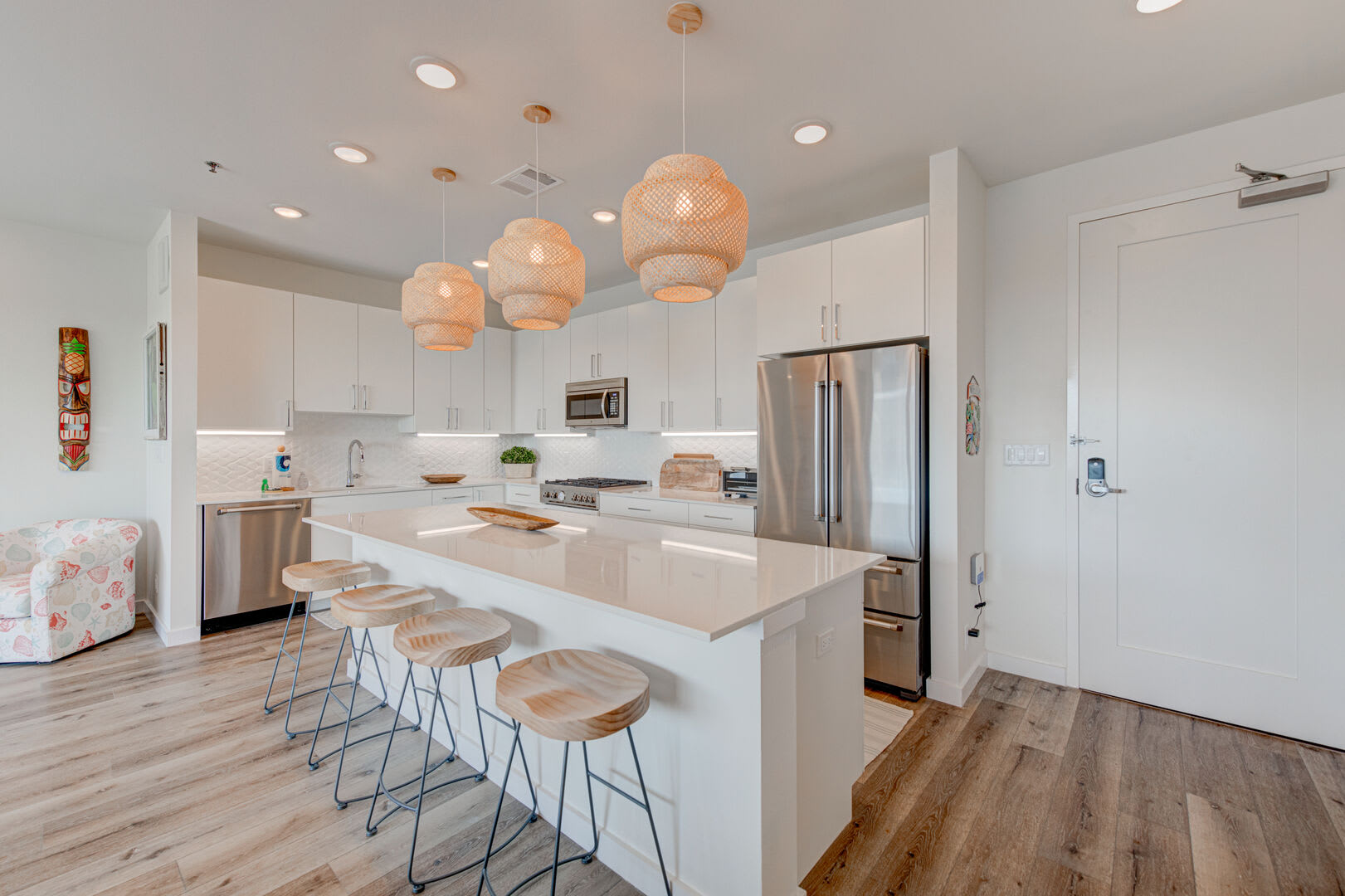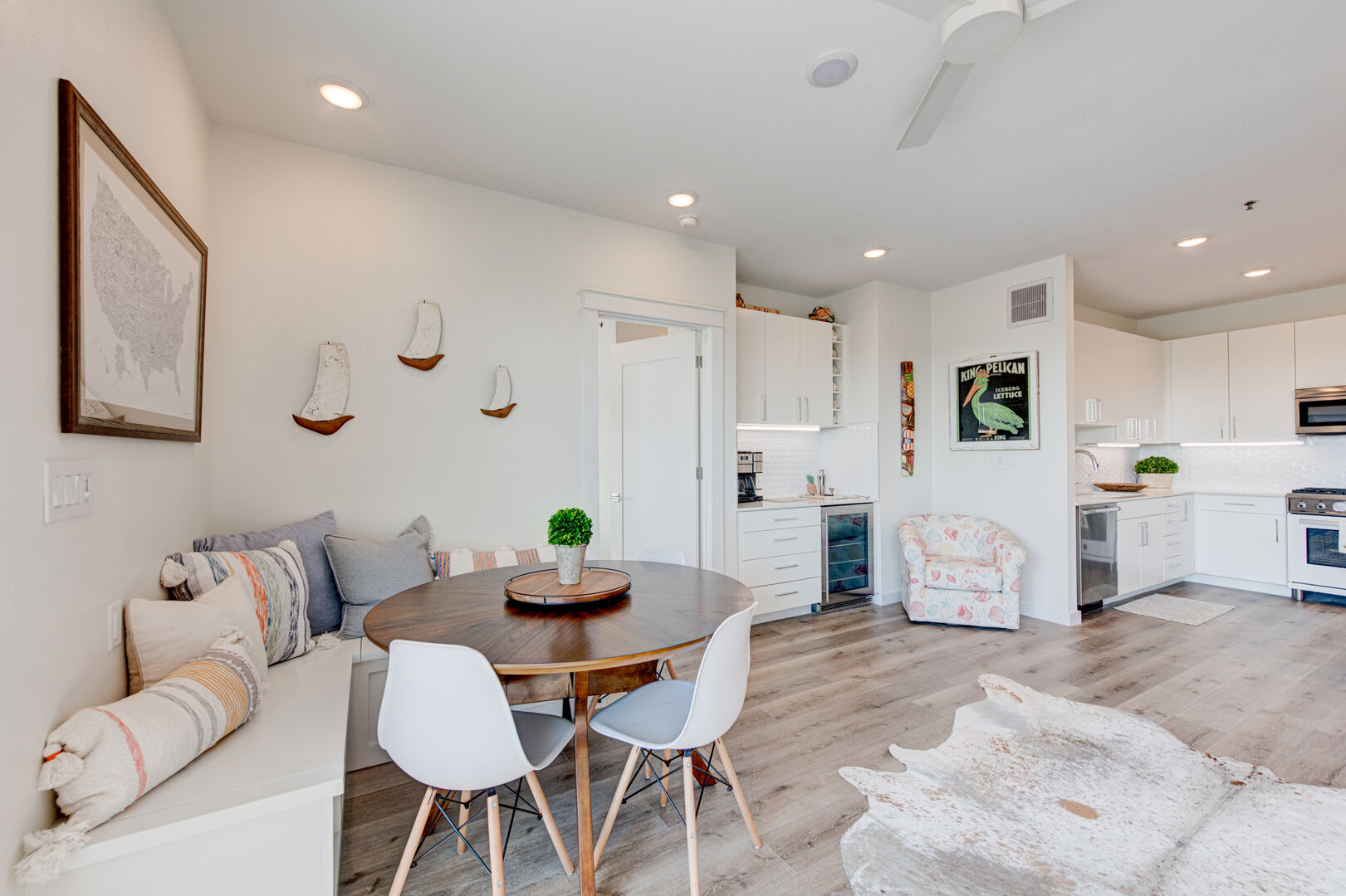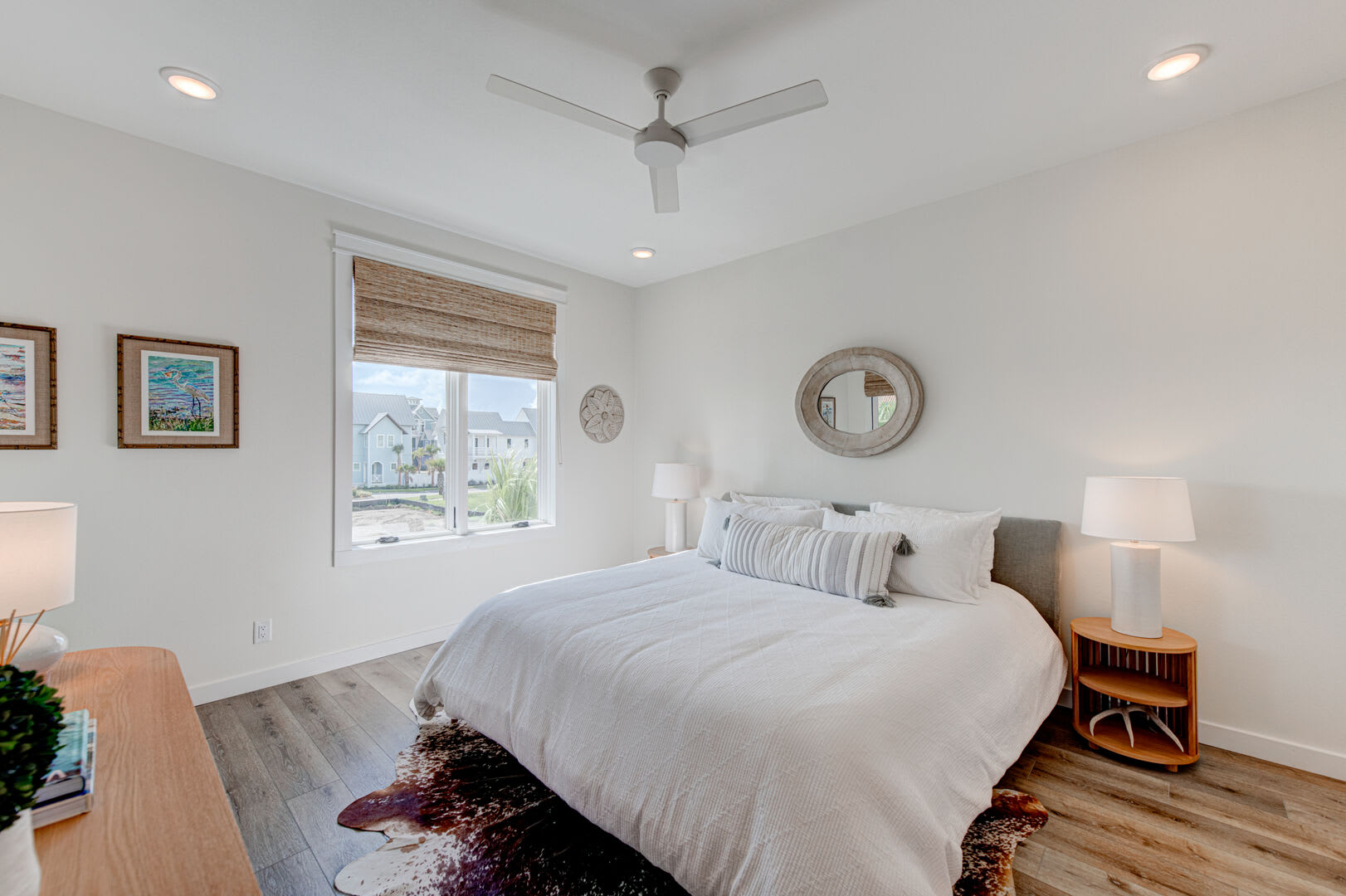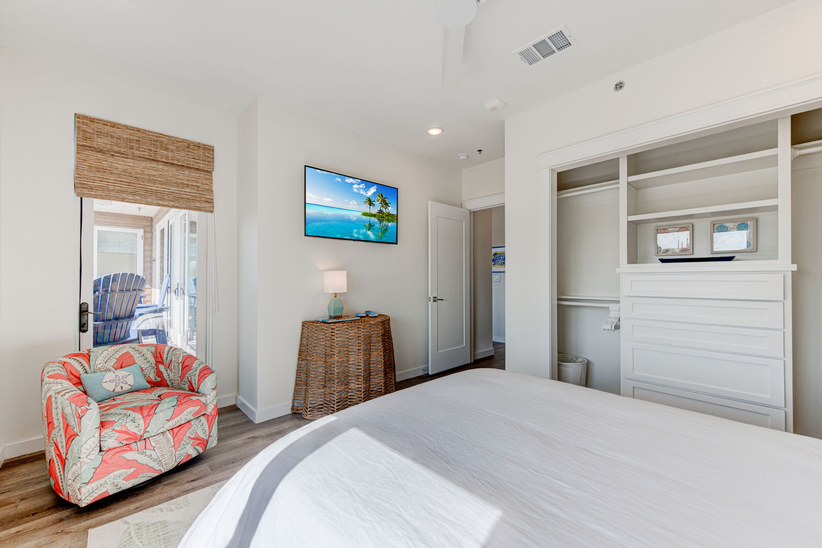 A beautifully furnished living area and plush furniture await inside the entryway. Guests will love settling in for a cozy family night in front of the flat-screen television. The stunning kitchen is perfectly equipped to prepare and enjoy fresh, coastal meals with elite stainless-steel appliances, white cabinetry, and beautiful countertops. The dining table and chairs provide ample seating to enjoy mealtimes together.