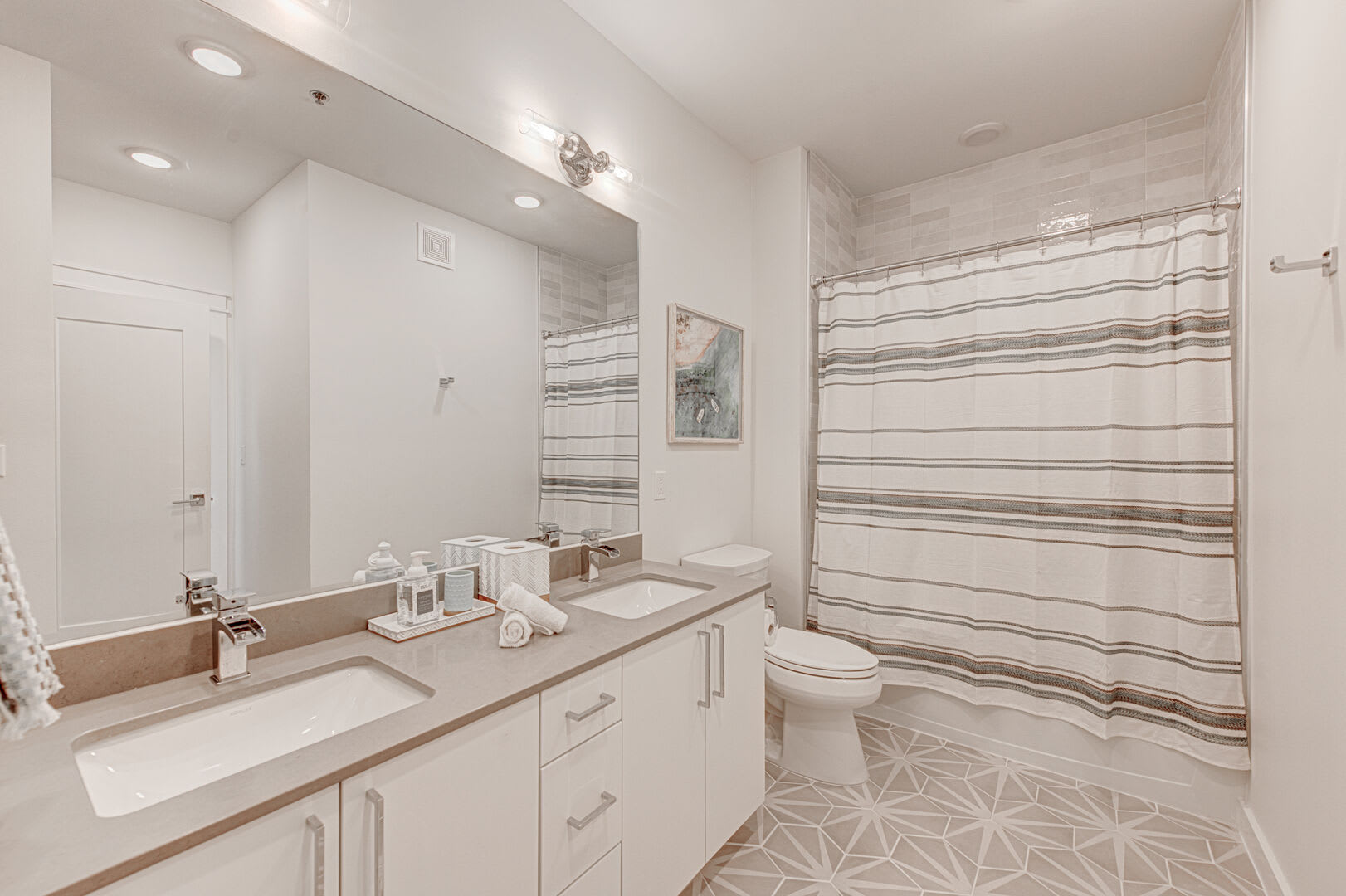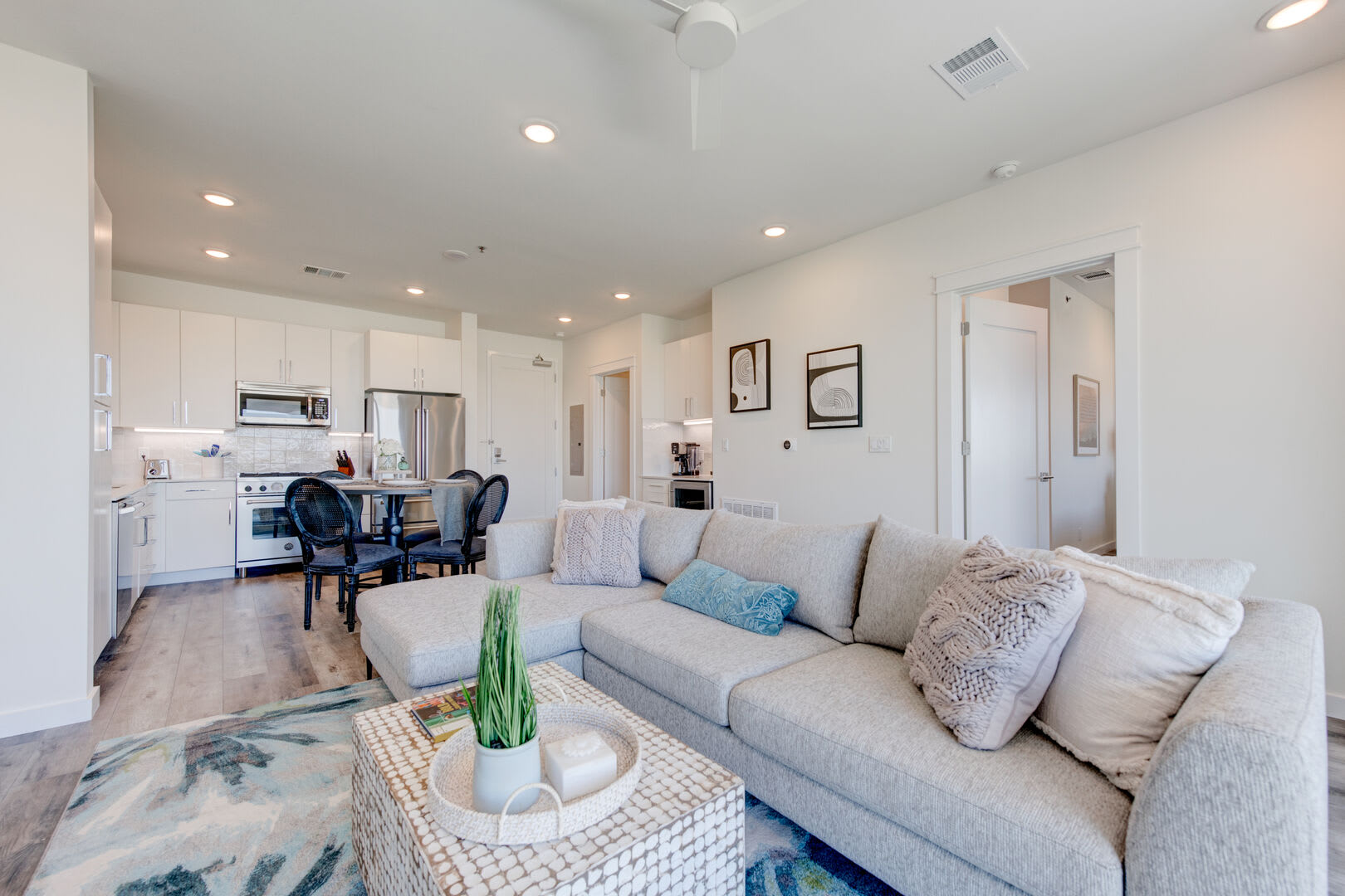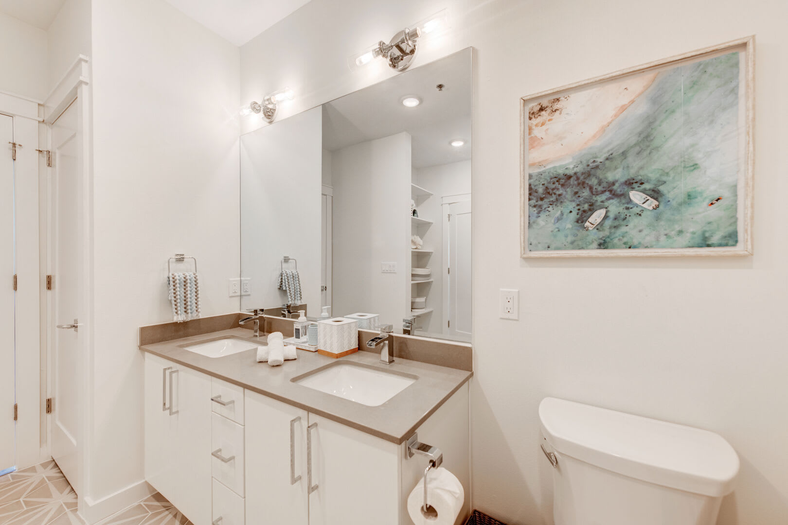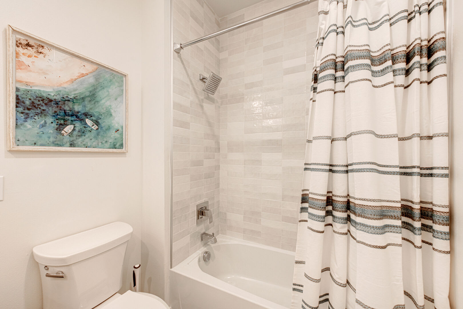 The stunning kitchen is perfectly equipped to prepare and enjoy fresh, coastal meals with elite stainless-steel appliances, white cabinetry, and beautiful countertops. The dining table and 4 chairs provide ample seating to enjoy mealtimes together.