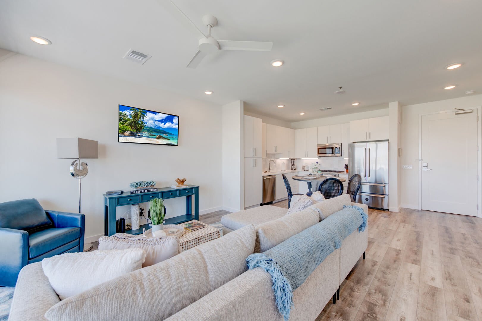 A beautifully furnished living area and plush furniture await inside the entryway. Guests will love settling in for a cozy family night in front of the flat-screen television.