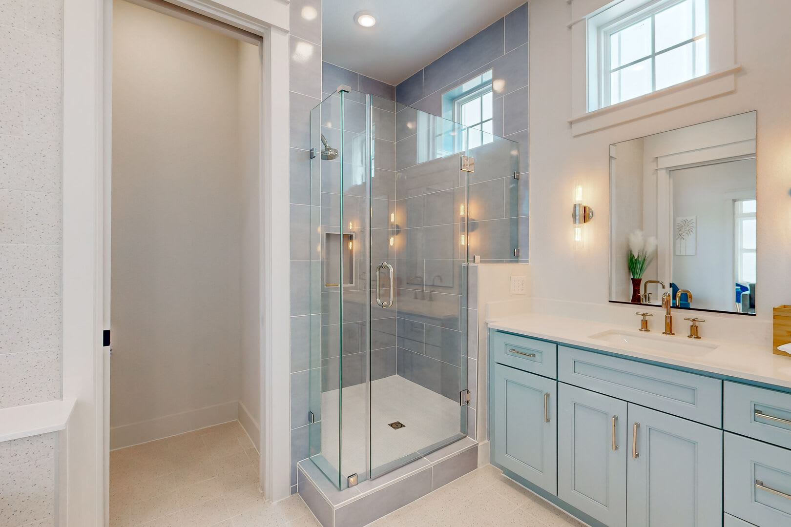BR2 Queen Bunk Bed, ensuite bath w/ walk-in shower, single vanity (this bedroom has to be accessed from the outdoor patio stairs)