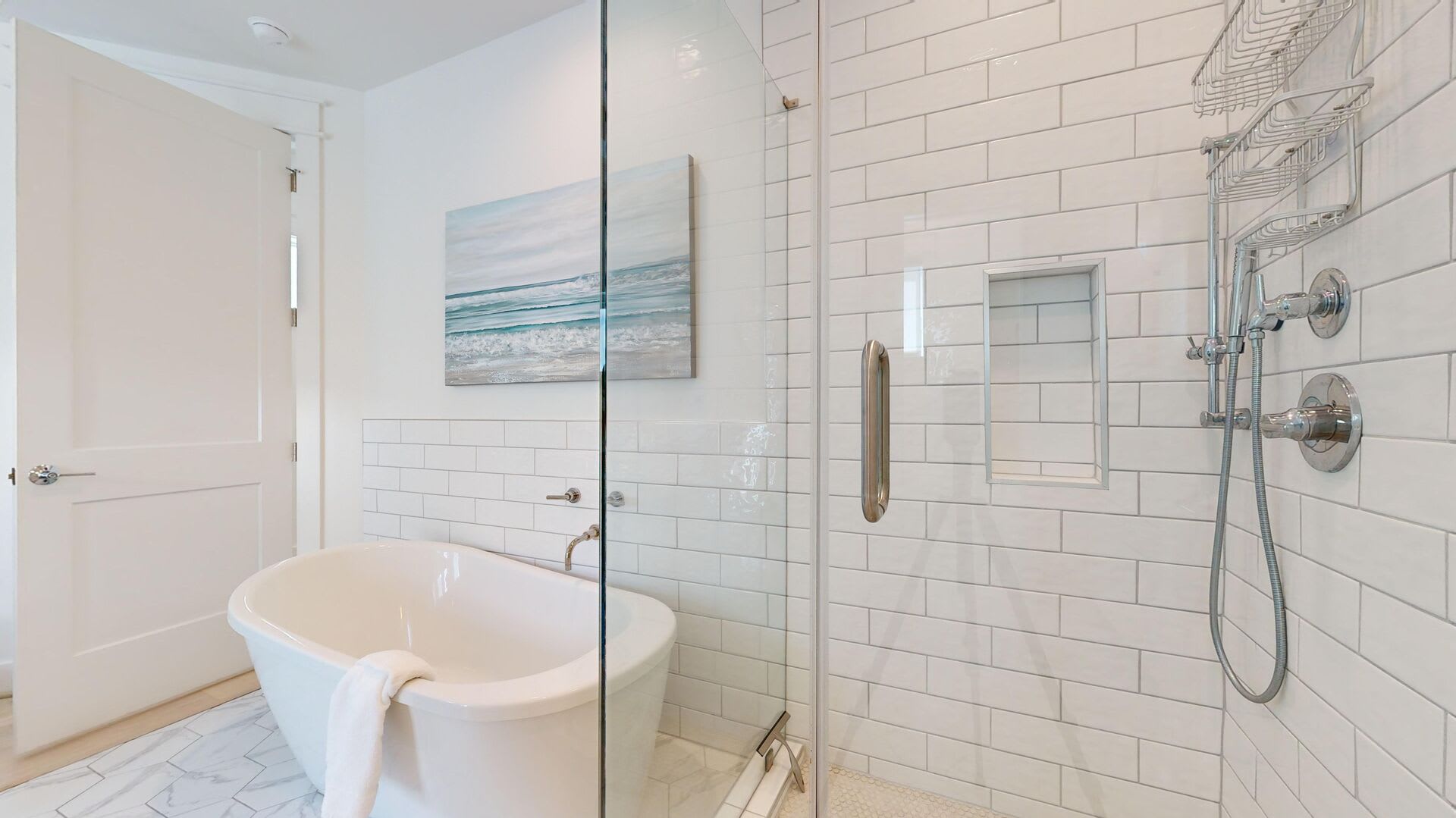 BR1 Queen, TV, Closet, ensuite bath w/ tub/shower combo, single vanity