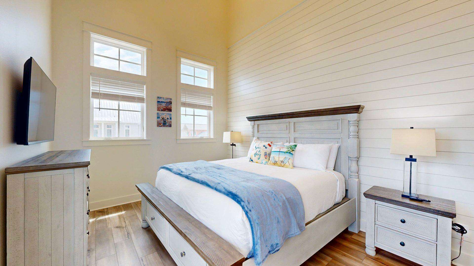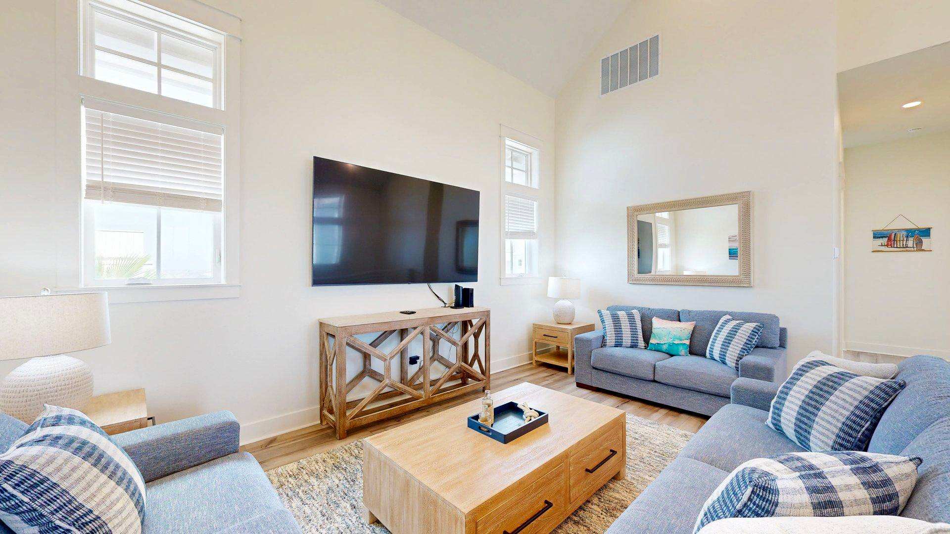 Mockingbird at Sunflower Beach Resort, a stunning beachfront home that perfectly captures the essence of coastal living. This beautifully decorated residence spans three levels, offering ample space and comfort for family and friends.