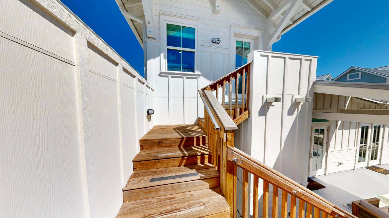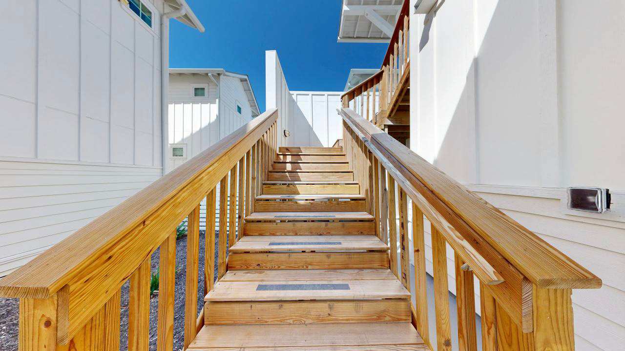 The second bedroom is accessed from the patio via an outdoor stairway, offering a unique and charming experience.