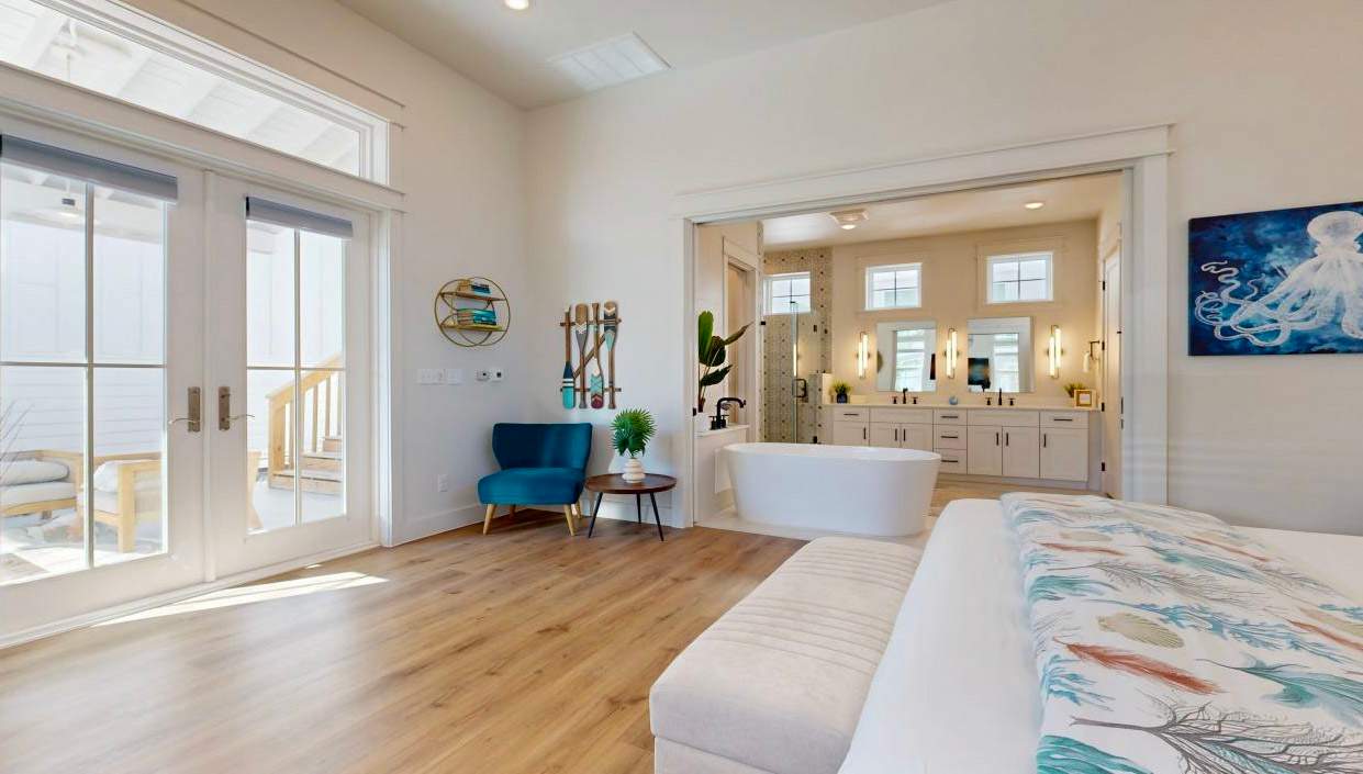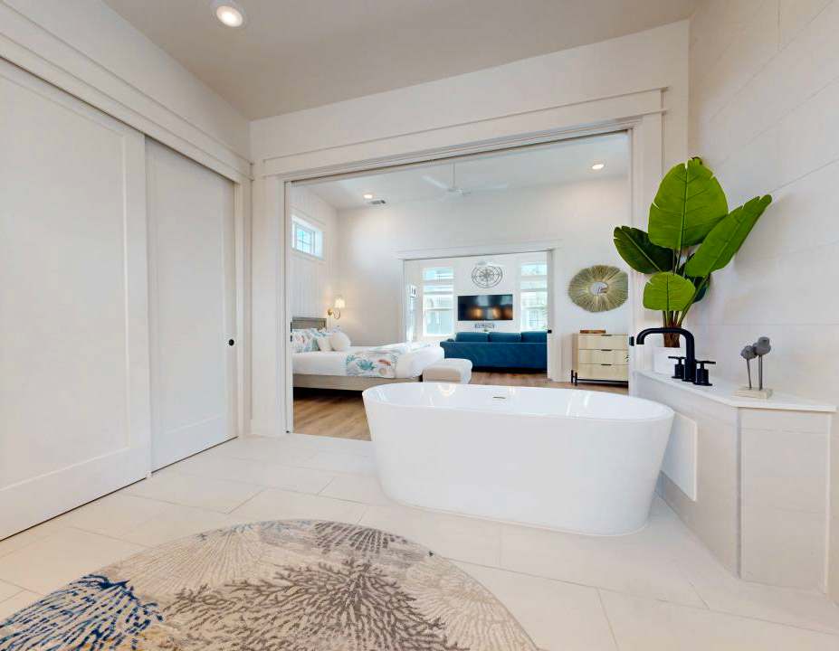BR1 King, Closet, Doors to Patio, ensuite bath w/ soaking tub, walk-in shower, dual vanity