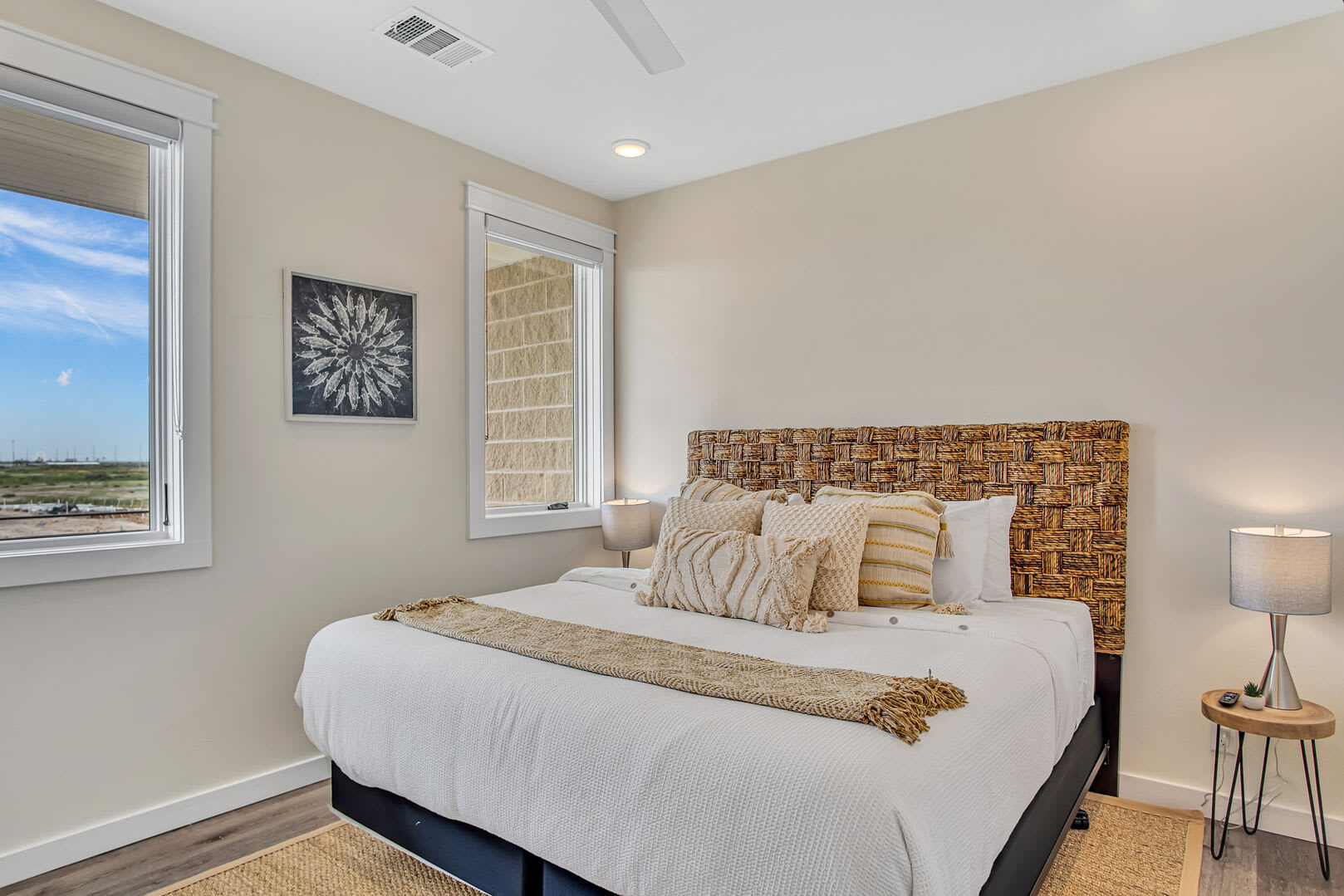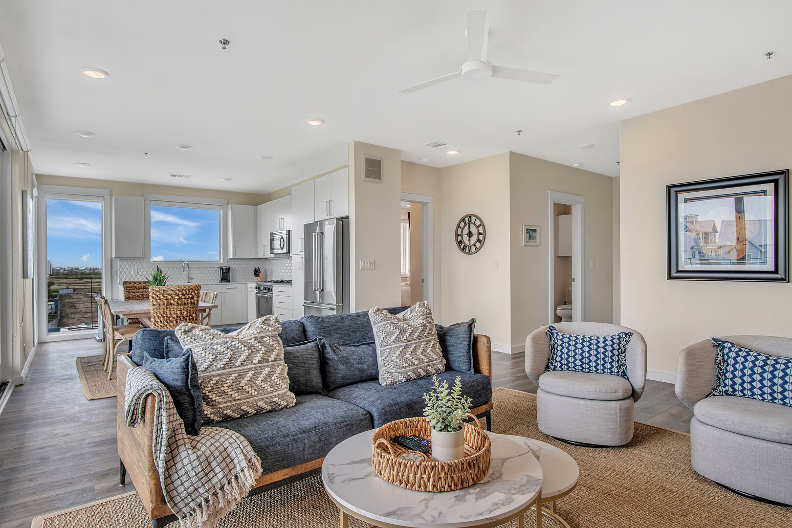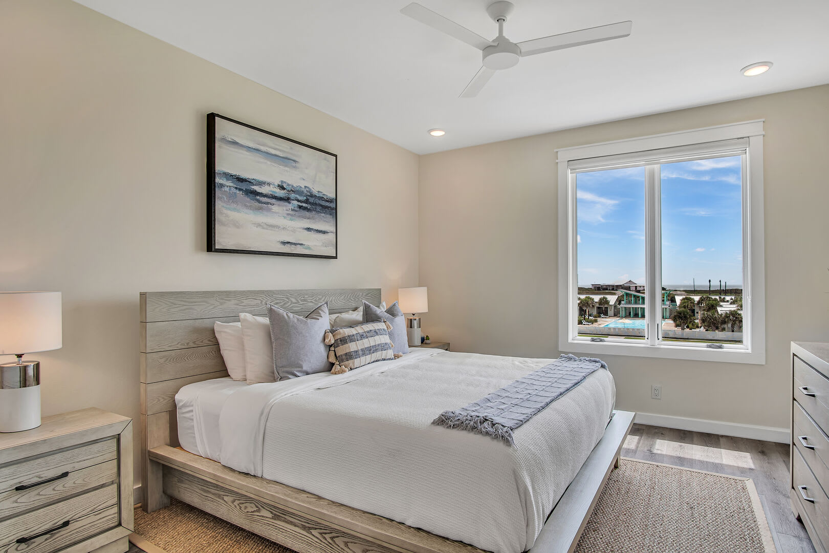 'Ocean Breeze' epitomizes Resort living with its exemplary coastal charm and unparalleled Gulf views from the top floor of the building! This masterful 2 bedroom, 2 bath residence offers pristine living space with ample room to sleep 4 guests. Prominently situated in Sunflower Beach Resort at the Pool Residences and perched at a high elevation to best enjoy the beautiful Gulf views. Ocean Breeze pool residence offers an open floor plan that accentuates this property's generous proportions and thoughtful design throughout, including high ceilings and high-end finishes and furnishings. Enjoy a spacious entertainment area that opens to the private patio, perfect for entertaining or soaking up the ocean breezes. A plush king-bedroom suite with a private bath and flat-screen TV makes an ideal primary bedroom. The guest bedroom also offers a plush king bed with a full-size bathroom and flat-screen TV. The generously sized living space, including a gourmet, well-stocked kitchen complete with high-end appliances, is the perfect place to settle after a fun day at the Resort. Book your stay today!
