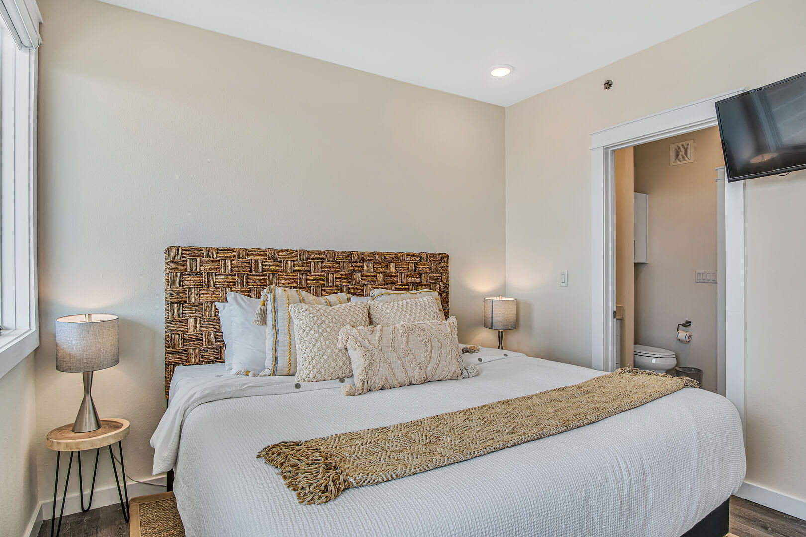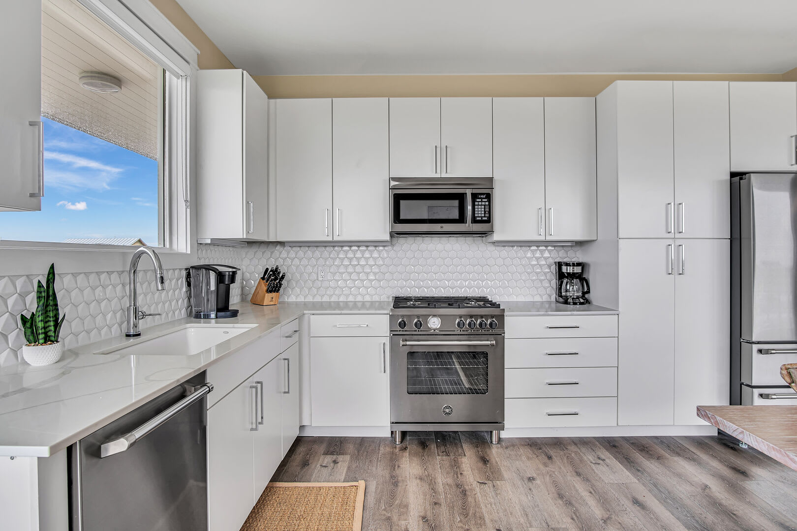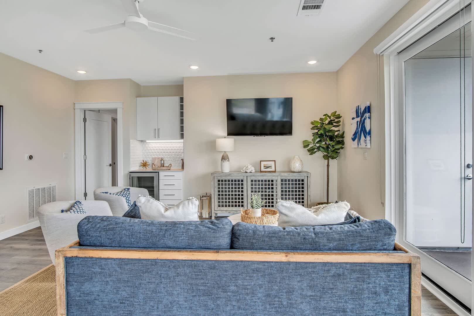 'Ocean Breeze' epitomizes Resort living with its exemplary coastal charm and unparalleled Gulf views from the top floor of the building! This masterful 2 bedroom, 2 bath residence offers pristine living space with ample room to sleep 4 guests. Prominently situated in Sunflower Beach Resort at the Pool Residences and perched at a high elevation to best enjoy the beautiful Gulf views. Ocean Breeze pool residence offers an open floor plan that accentuates this property's generous proportions and thoughtful design throughout, including high ceilings and high-end finishes and furnishings. Enjoy a spacious entertainment area that opens to the private patio, perfect for entertaining or soaking up the ocean breezes. A plush king-bedroom suite with a private bath and flat-screen TV makes an ideal primary bedroom. The guest bedroom also offers a plush king bed with a full-size bathroom and flat-screen TV. The generously sized living space, including a gourmet, well-stocked kitchen complete with high-end appliances, is the perfect place to settle after a fun day at the Resort. Book your stay today!