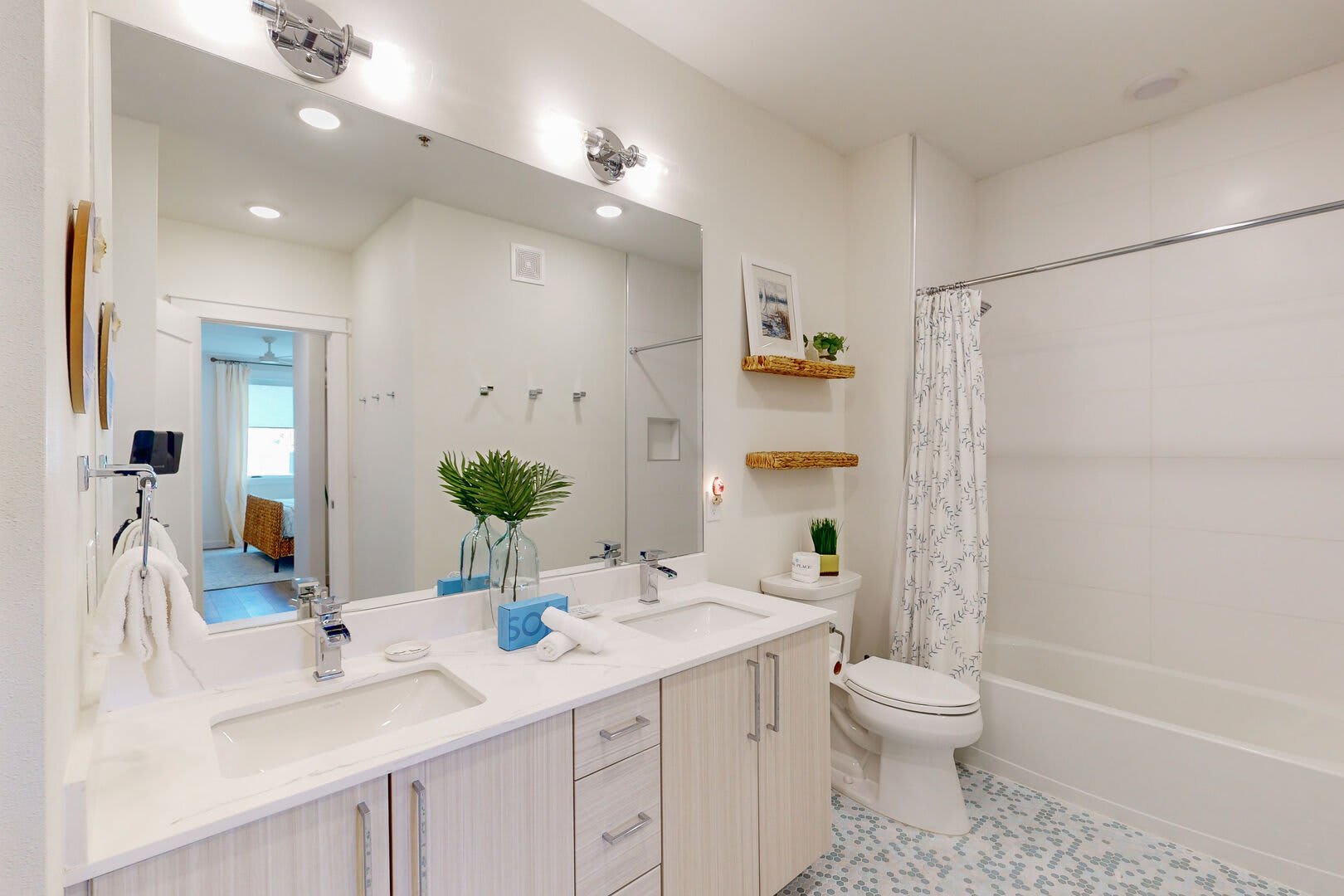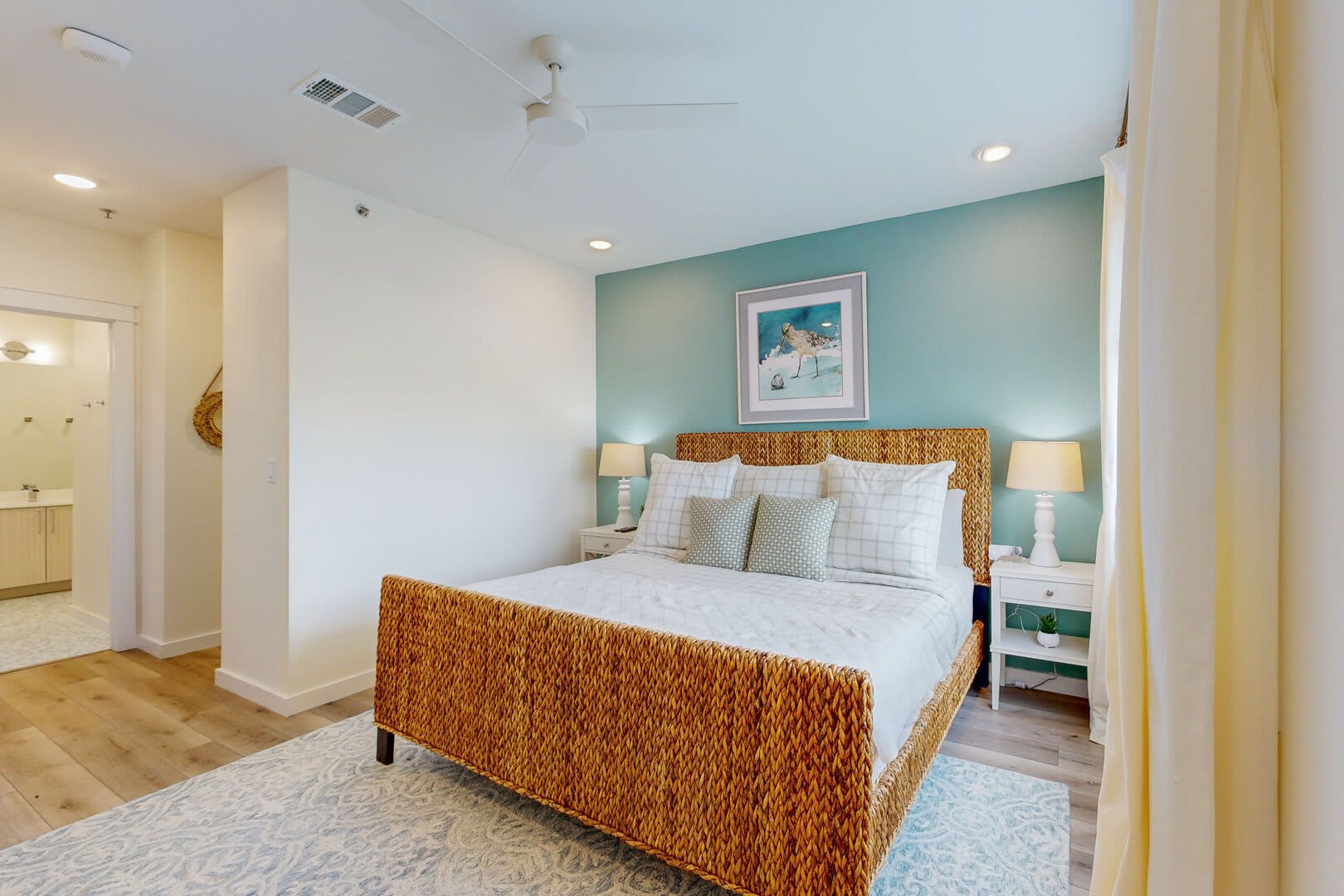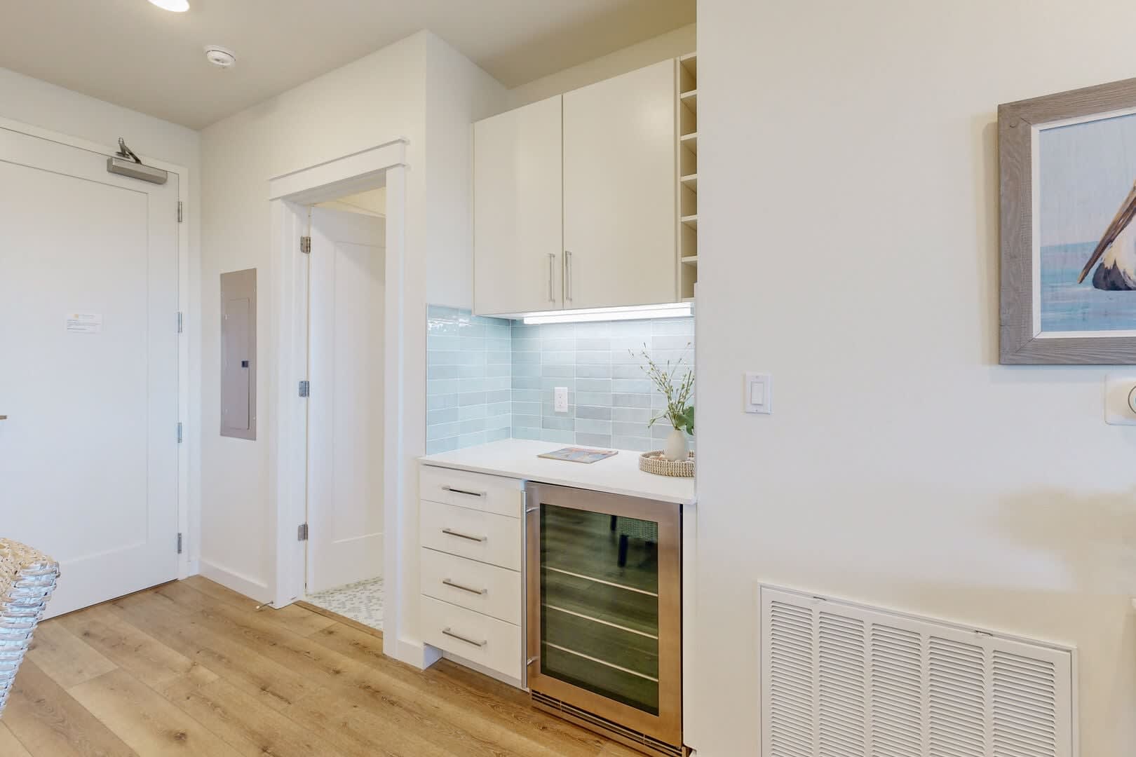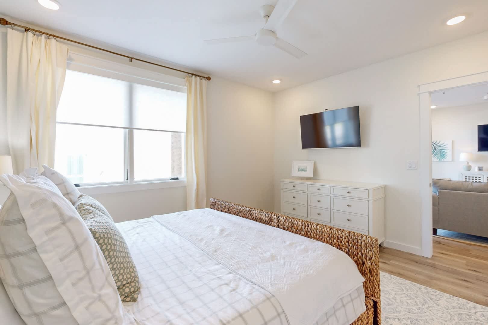 A beautifully furnished living area and plush furniture are sure to provide a comfortable spot to make happy memories with family and friends. Guests will love settling in for a cozy night in front of the flat-screen TV. The stunning kitchen is perfectly equipped to prepare fresh coastal meals with elite stainless-steel appliances, white cabinetry, and beautiful countertops. The dining table and 4 chairs provide ample seating to enjoy mealtimes together.