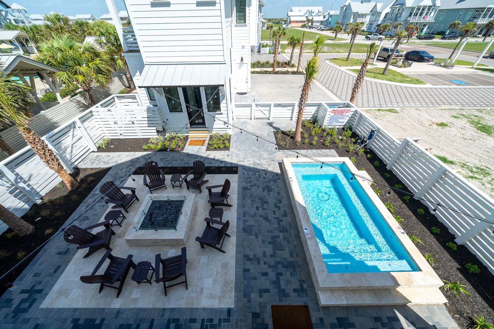 Courtyard: Step into the private, fully fenced courtyard to enjoy an 8 x 15 pool with ample seating. The pool can be heated in winter and chilled in summer. Gather around the large raised fire pit in the evenings to unwind and forget your worries.