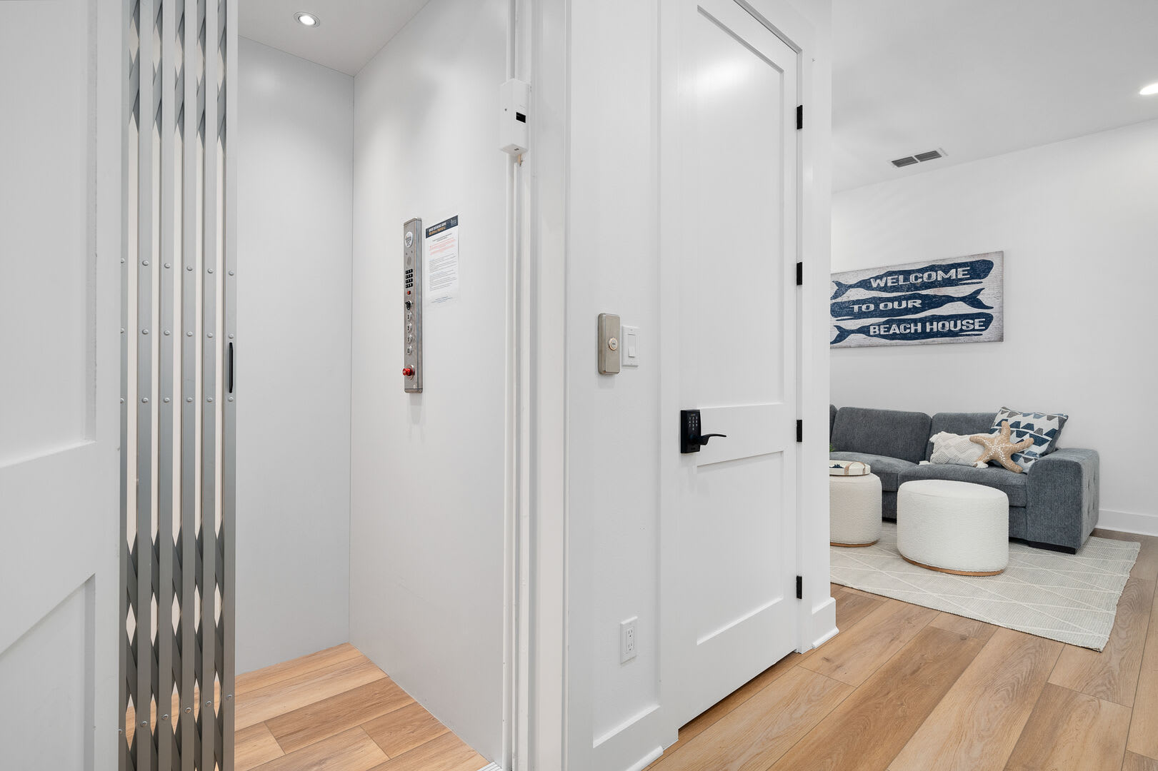 Additional Amenities: The first floor includes two queen-size suites, a large bunk room, a living area, and a sand room with a full-size refrigerator, two washer/dryer stacks, and a large sink.
