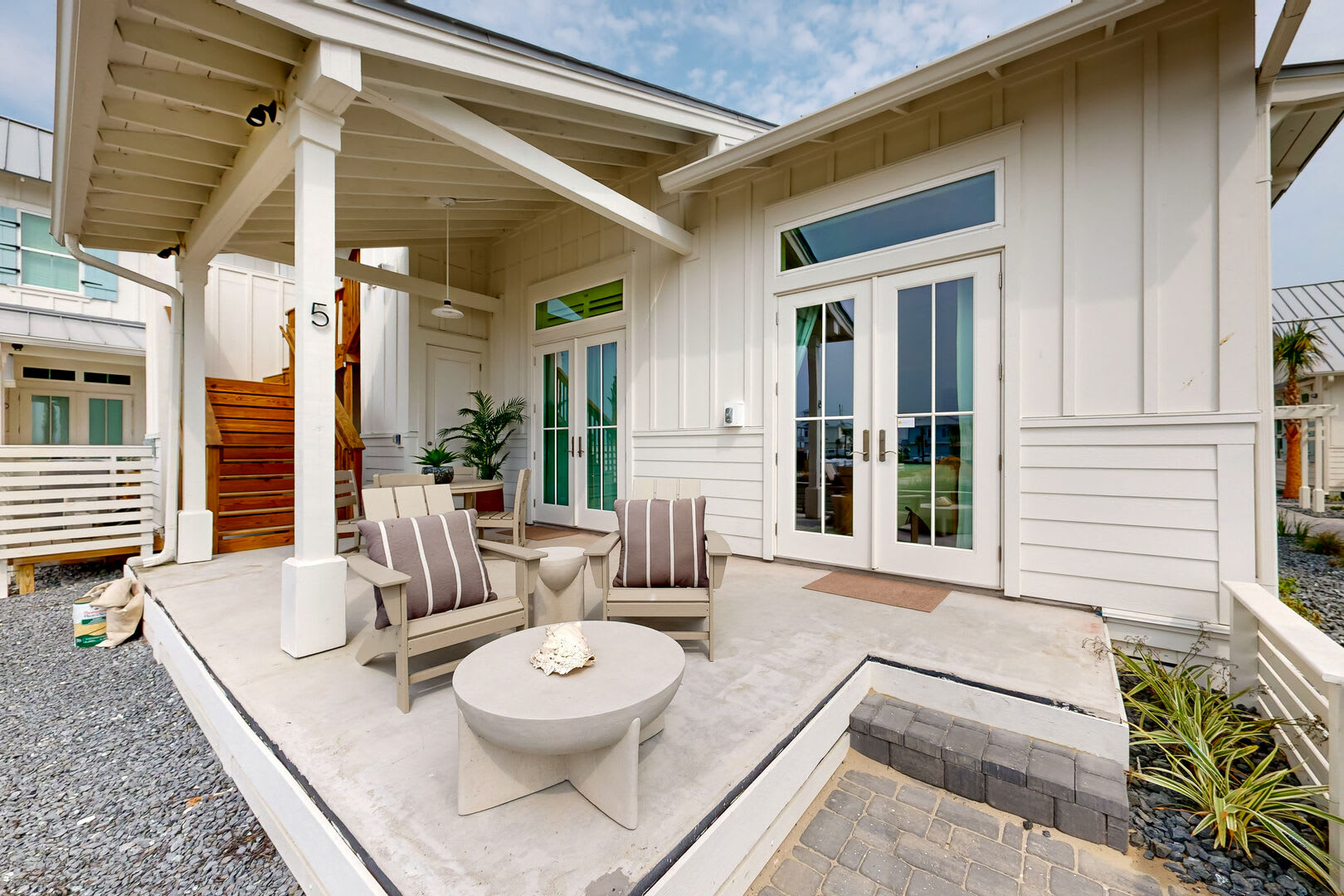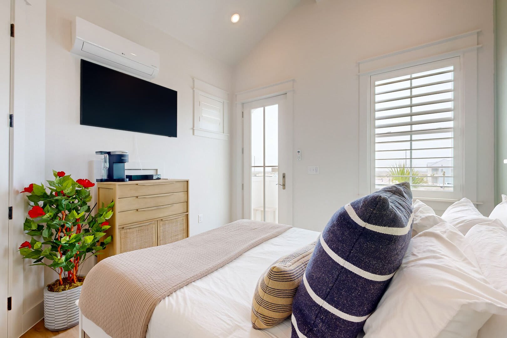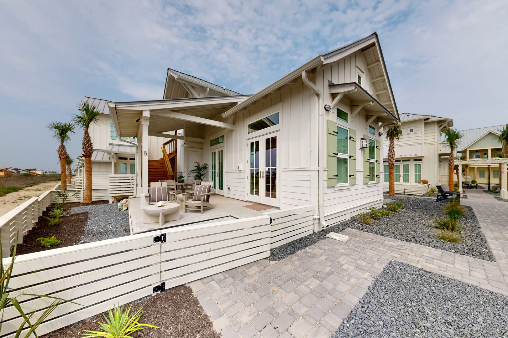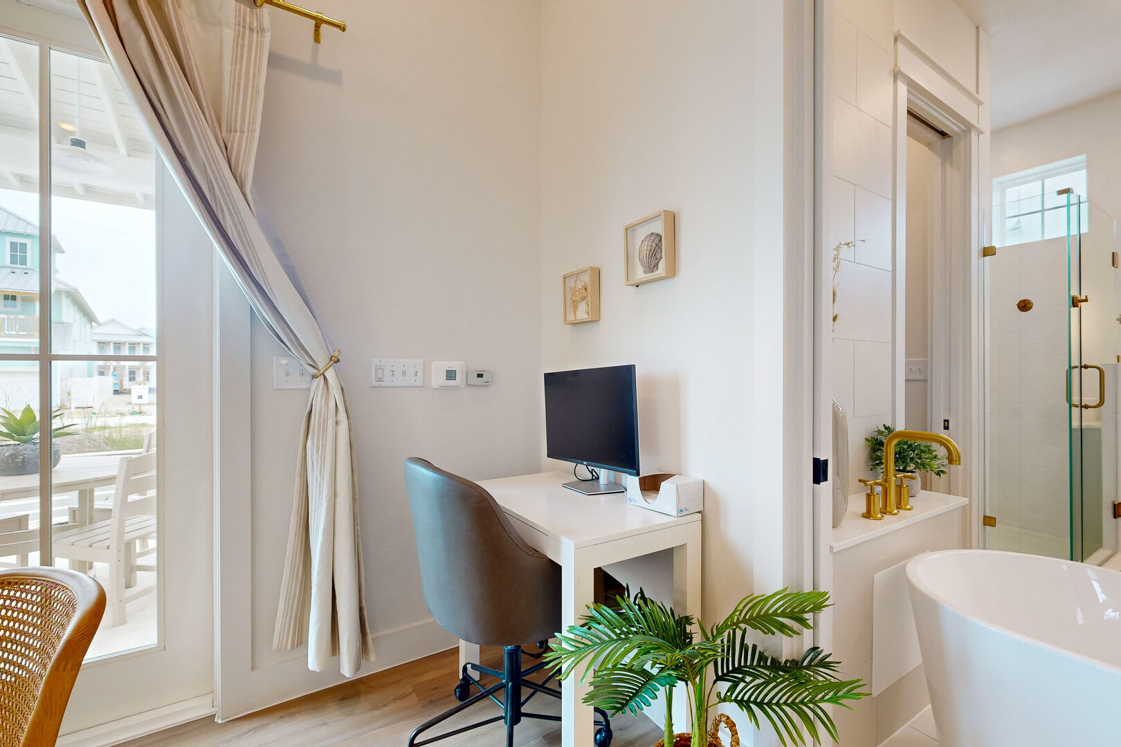 Retreat to the primary suite with a king bed, where sliding doors open to reveal an expansive bathroom oasis, complete with a luxurious standing tub and a frameless glass walk-in shower. Upstairs, a second suite with a queen bed and twin trundle accessed via exterior stairs offers privacy, ideal for couples or older children, complete with its essentials, like a Keurig coffee maker and Samsung Frame TV. Need to work remotely? No problem. This home features a dedicated desk and type-C port display, ensuring productivity without sacrificing leisure time. Whether you're seeking relaxation, adventure, or a perfect blend of both, Sunflower Beach Hideaway #5 promises an unforgettable beach vacation experience that is sure to redefine RBF.