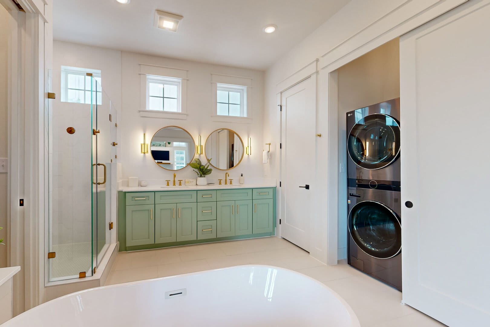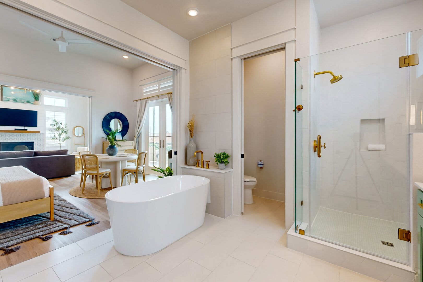 BD1) (Downstairs) - King with spacious ensuite bath including soaking tub, large walk-in shower, dual vanity, and plenty of closet space