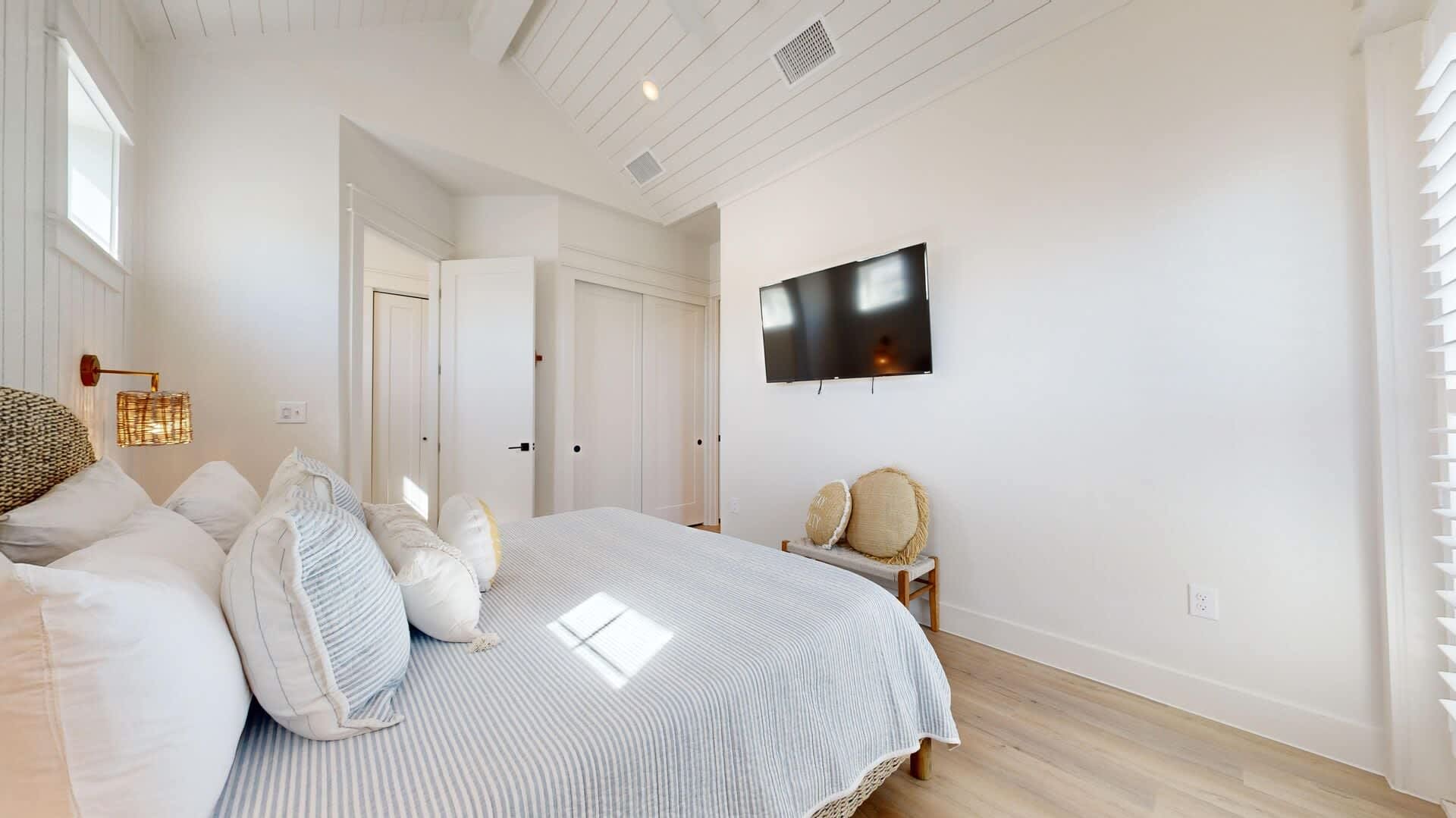 BR2 King, TV, Closet, ensuite bath w/ soaking tub, walk-in shower, dual vanity