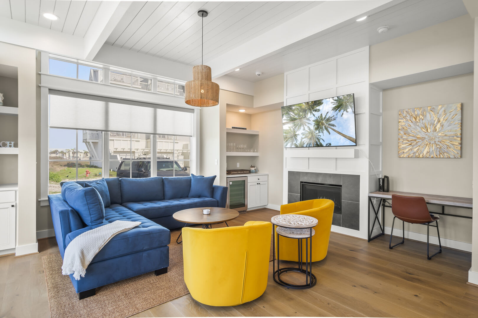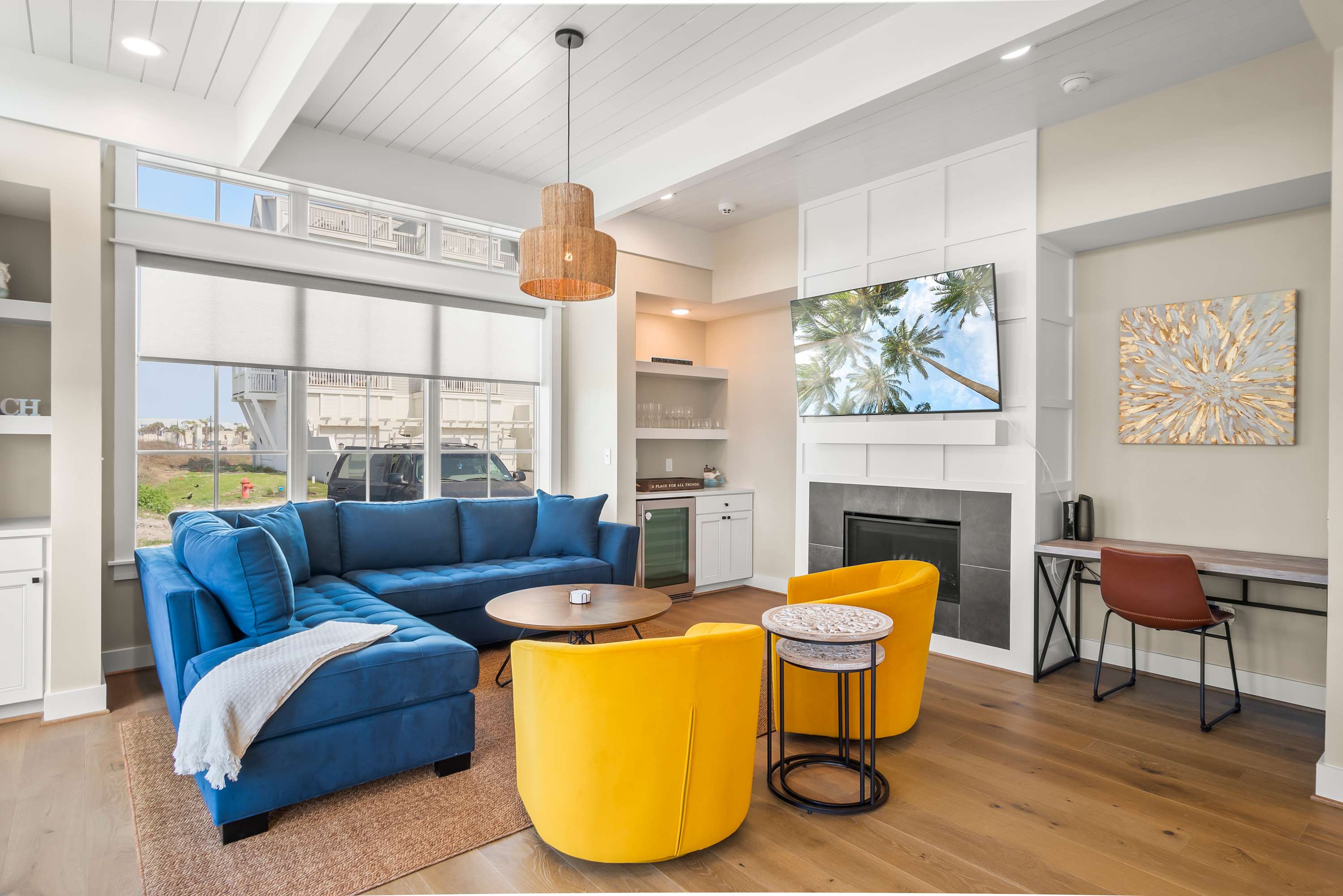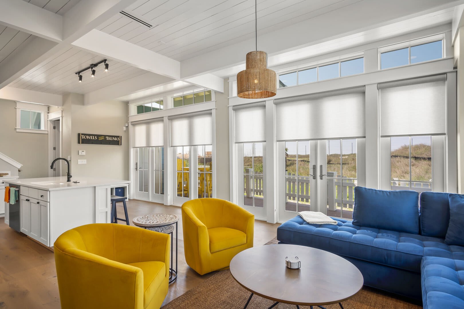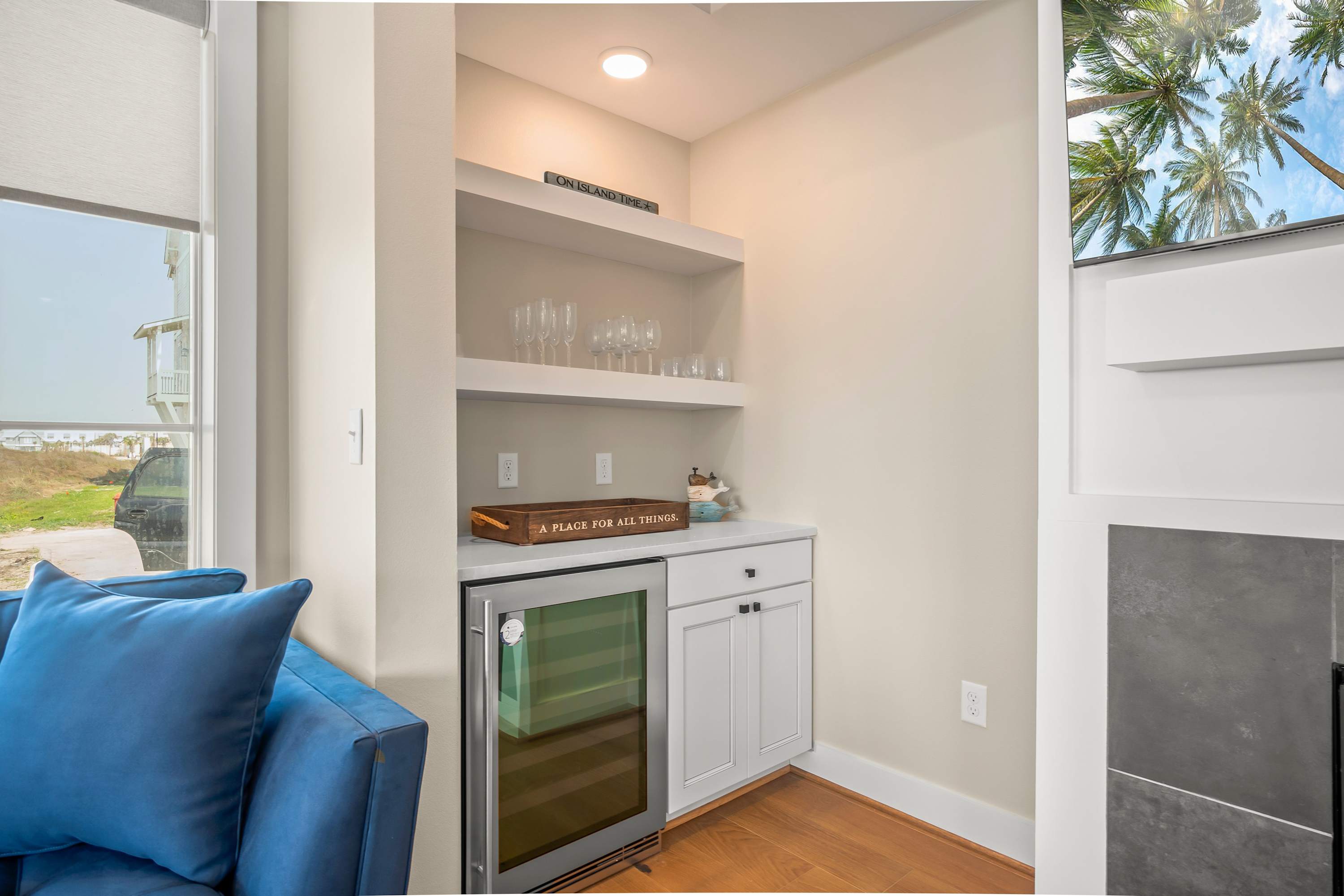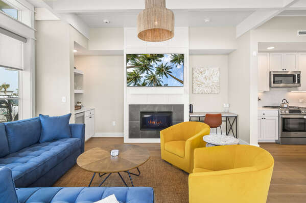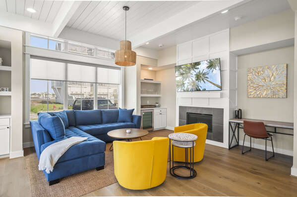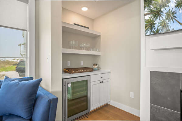 Step inside to discover opulent finishes, plush furnishings, and cheerful hues that make it feel like a vacation. You’ll immediately notice the large windows that fill Sea’n Stars with sunshine. Cozy club chairs and a comfortable chaise sectional center around the large Smart TV. Craft your favorite cocktail or uncork a bottle of perfect-temperature white at the dry bar, grab the remote, relax back and enjoy a favorite movie together.