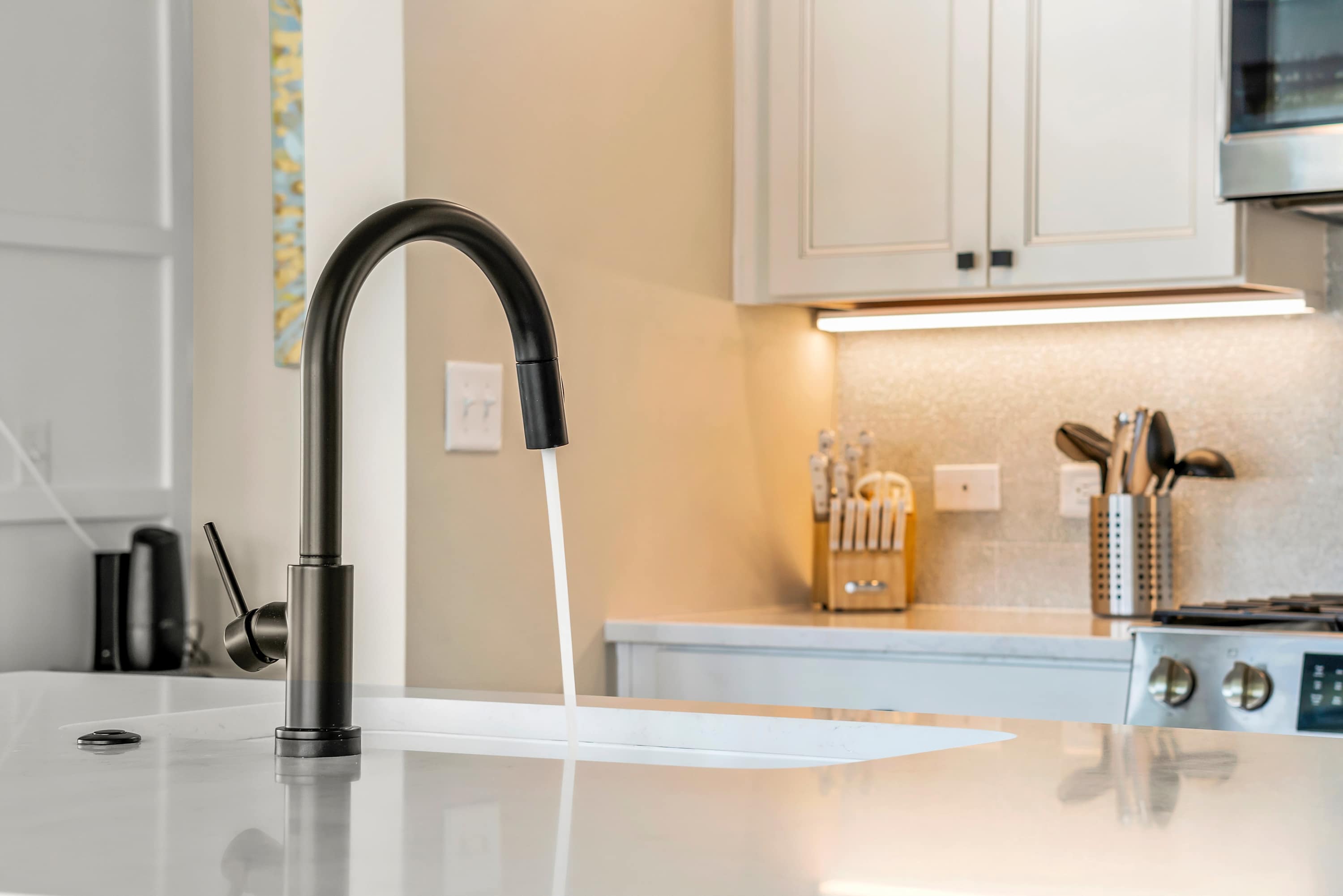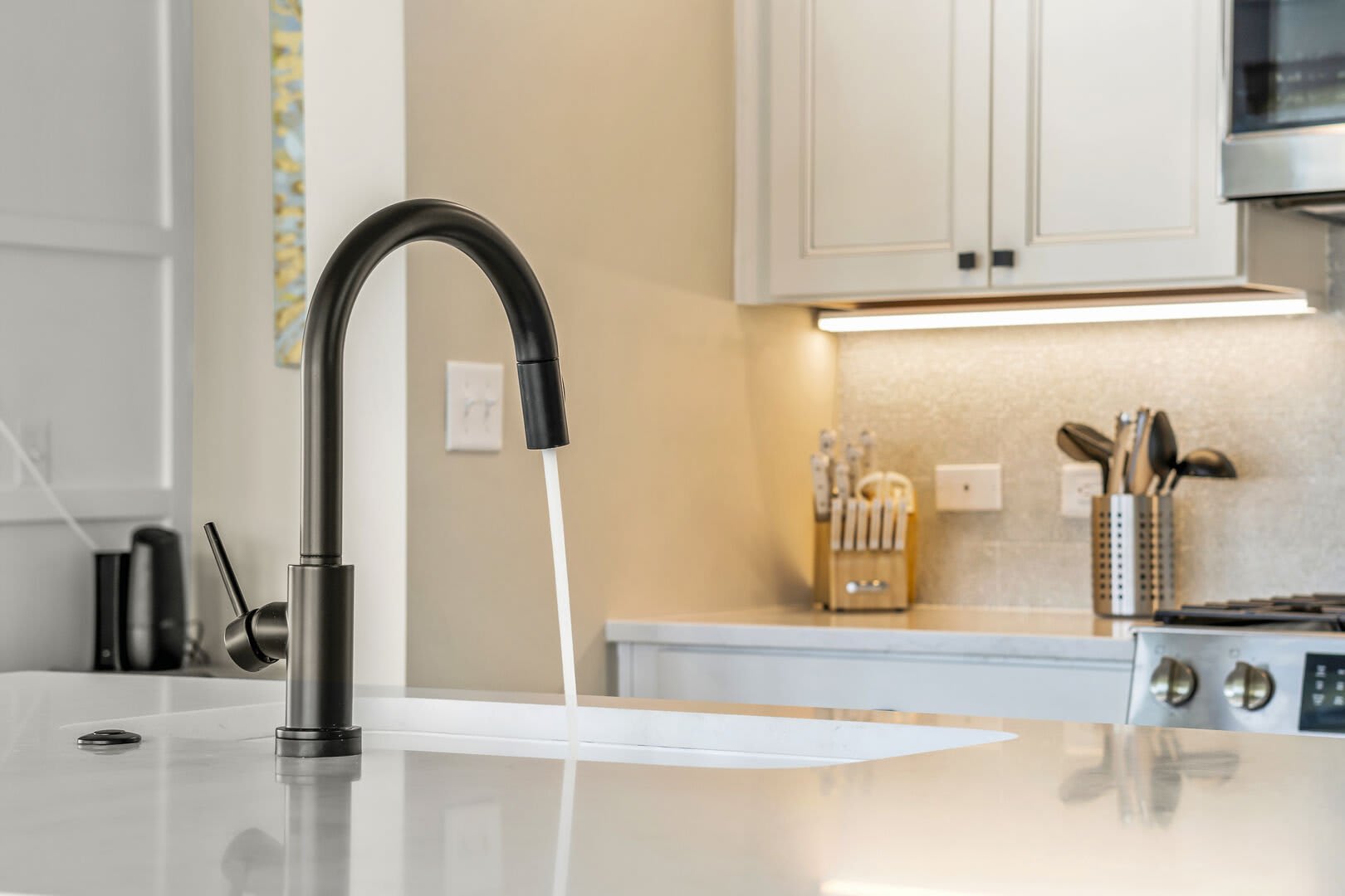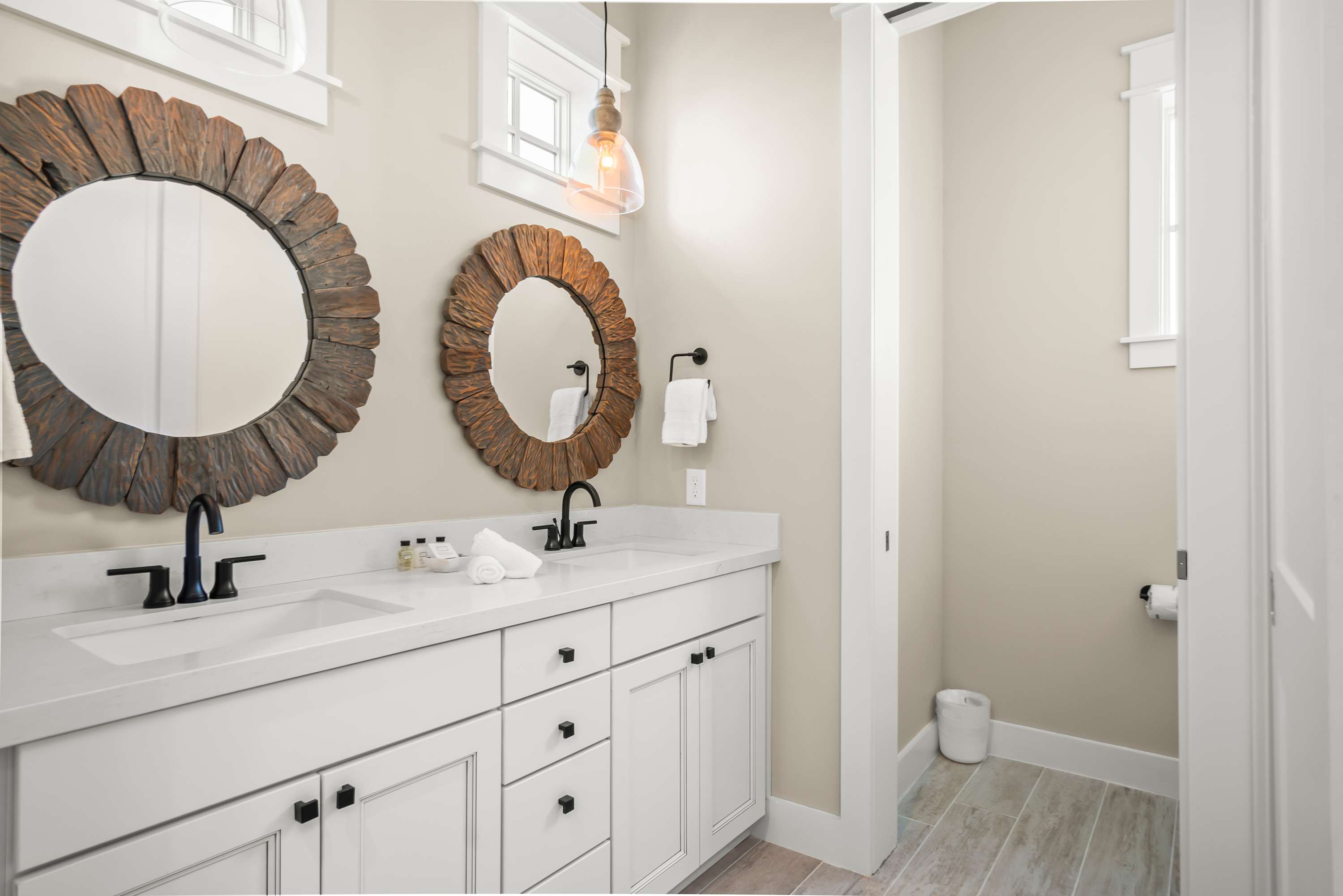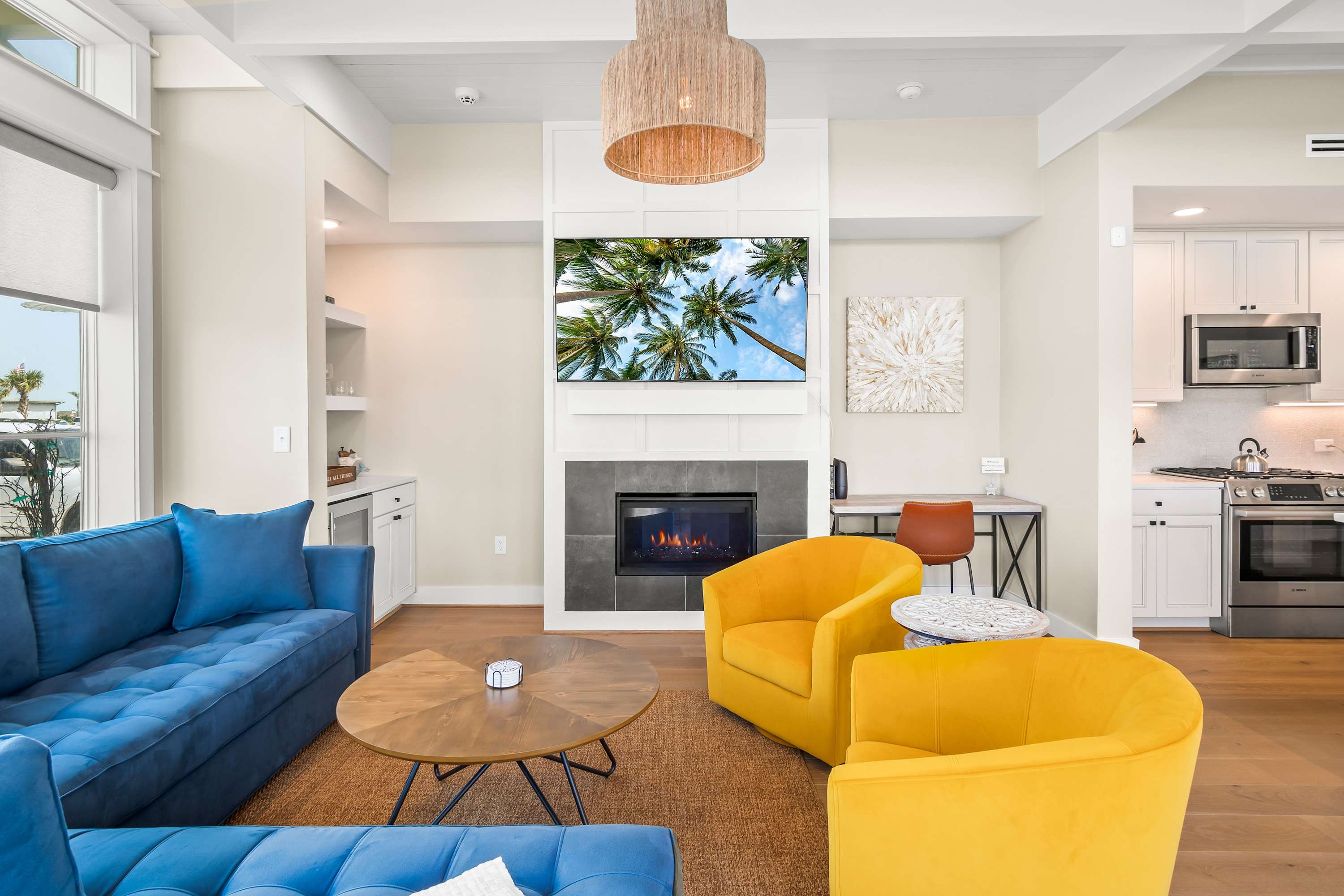 Step inside to discover opulent finishes, plush furnishings, and cheerful hues that make it feel like a vacation. You’ll immediately notice the large windows that fill Sea’n Stars with sunshine. Cozy club chairs and a comfortable chaise sectional center around the large Smart TV. Craft your favorite cocktail or uncork a bottle of perfect-temperature white at the dry bar, grab the remote, relax back and enjoy a favorite movie together.