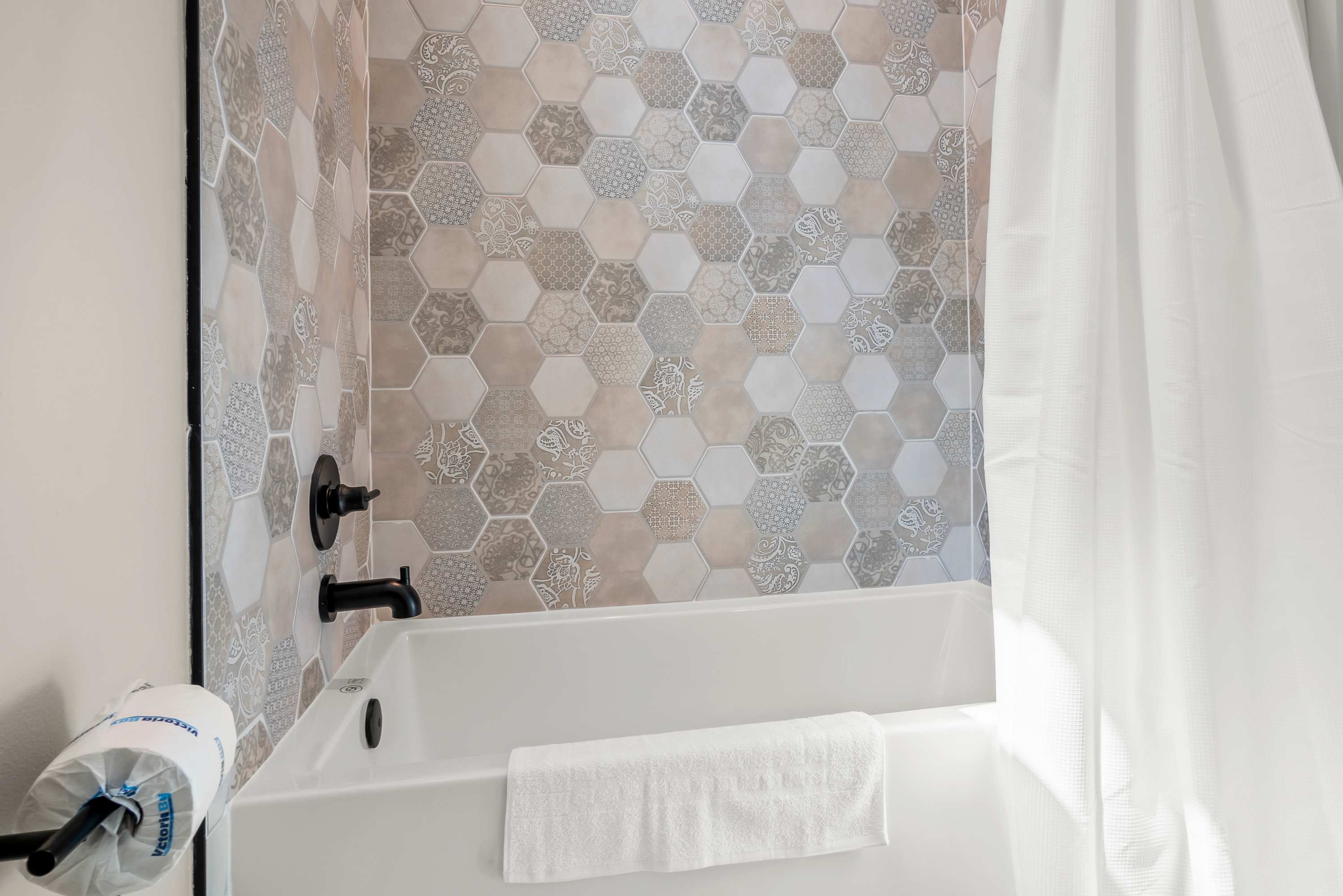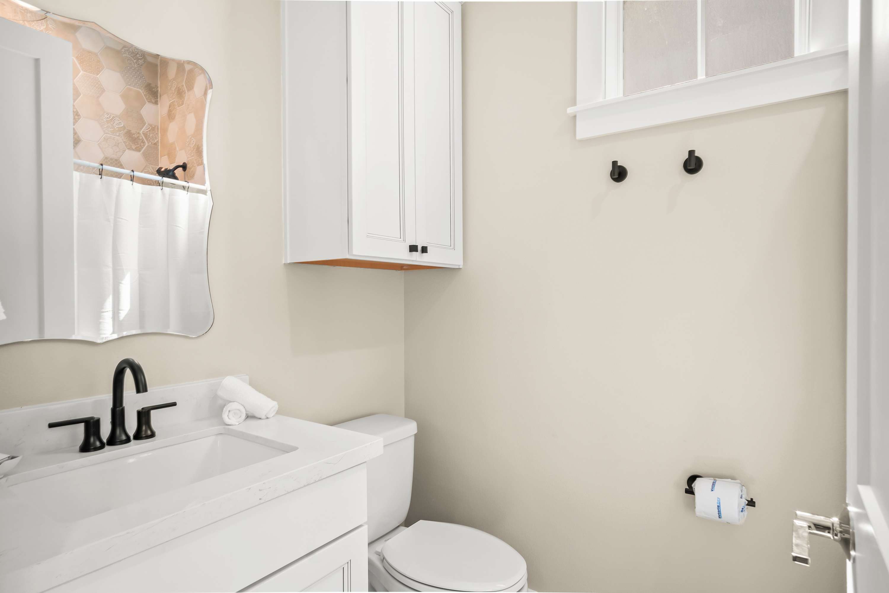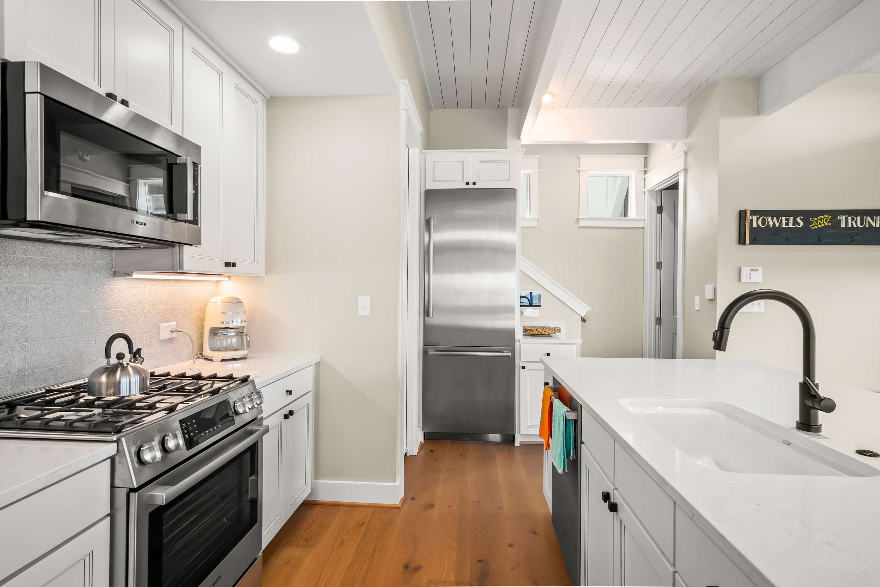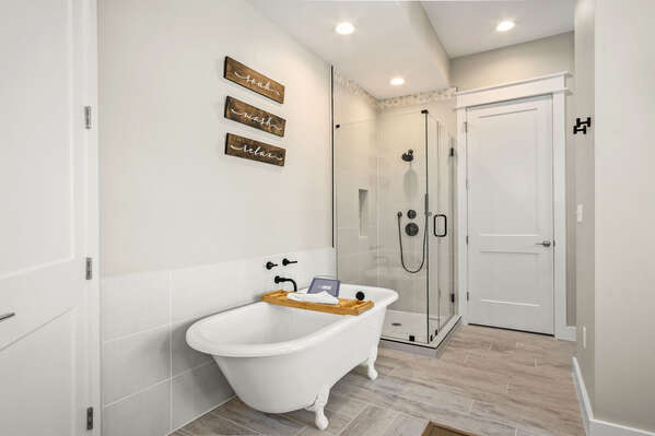 After a fun-filled day exploring the best of Port A, head upstairs to Sea'n Stars two spacious bedrooms. You’ll fall in love with the primary suite! Boasting a plush, king-size bed, private balcony, and walk-through ensuite bathroom, it’s sure to delight. Discover dual sinks, a large walk-in shower, and gorgeous claw-footed soaking tub in the primary bathroom. The guest bedroom offers comfort for kids and adults alike with a twin-over-queen-size bunk bed and a private ensuite bathroom. You’ll appreciate having Smart TVs and closet space in both bedrooms. No need to overpack for your vacation. This beach vacation house provides you with an in-house washer and dryer, so you can save space in your luggage for souvenirs!