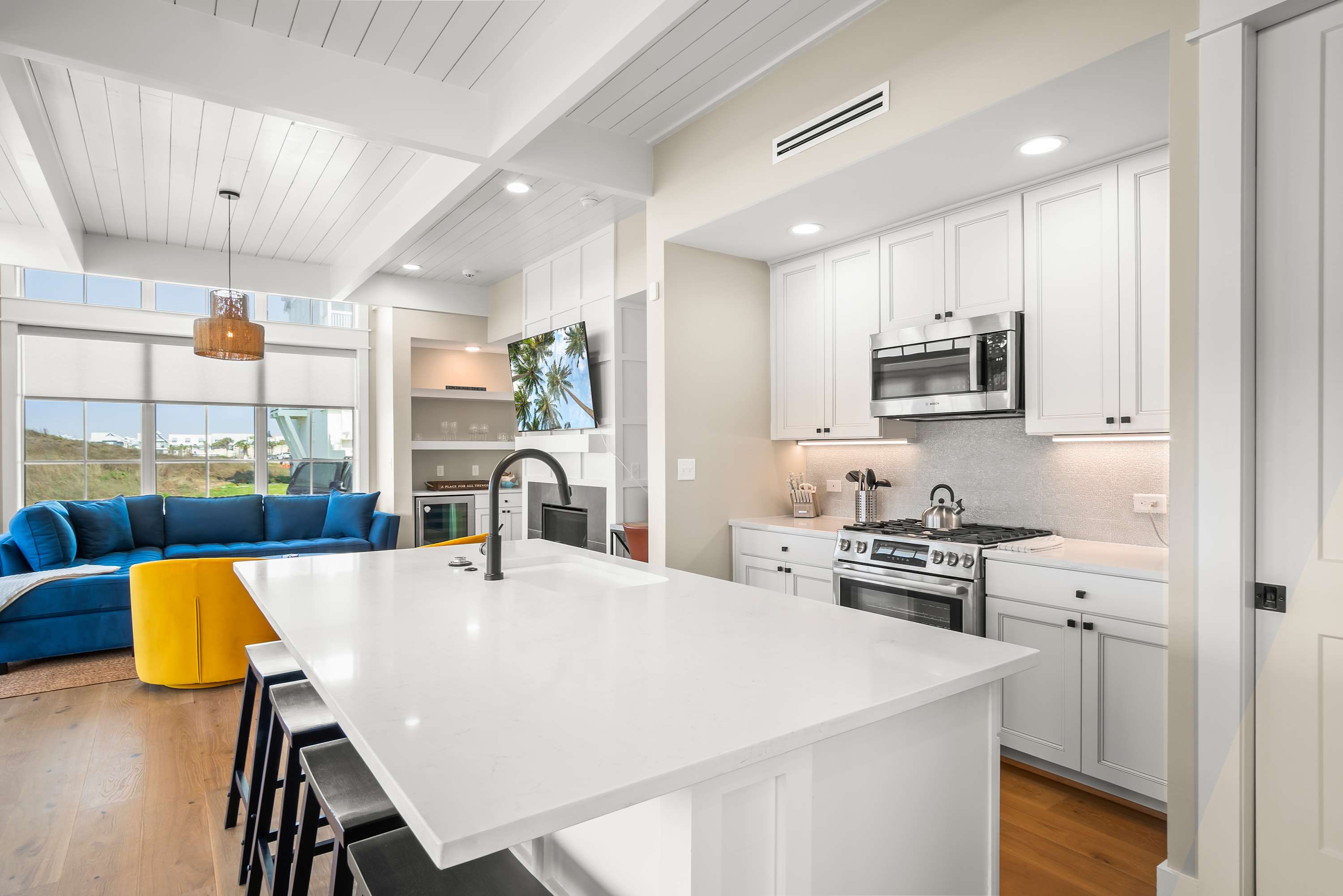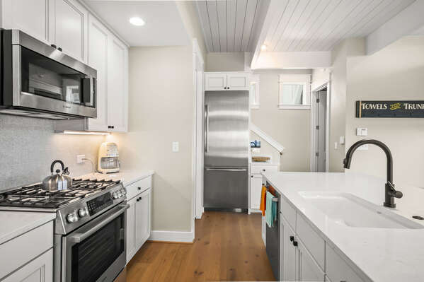 When you aren’t out on the town savoring a delicious seafood dinner at one of Port A’s notable restaurants, you’ll have Sea’n Stars’ stylish kitchen right at your fingertips. Designed with high-end stainless-steel appliances, a gas range and a working kitchen island, you’ll have everything you need to prepare your favorite dishes...all you need to bring along are the ingredients! Pull up a barstool to the kitchen island’s counter or head outside for an Alfresco dinner experience under a colorful Texas sunset.