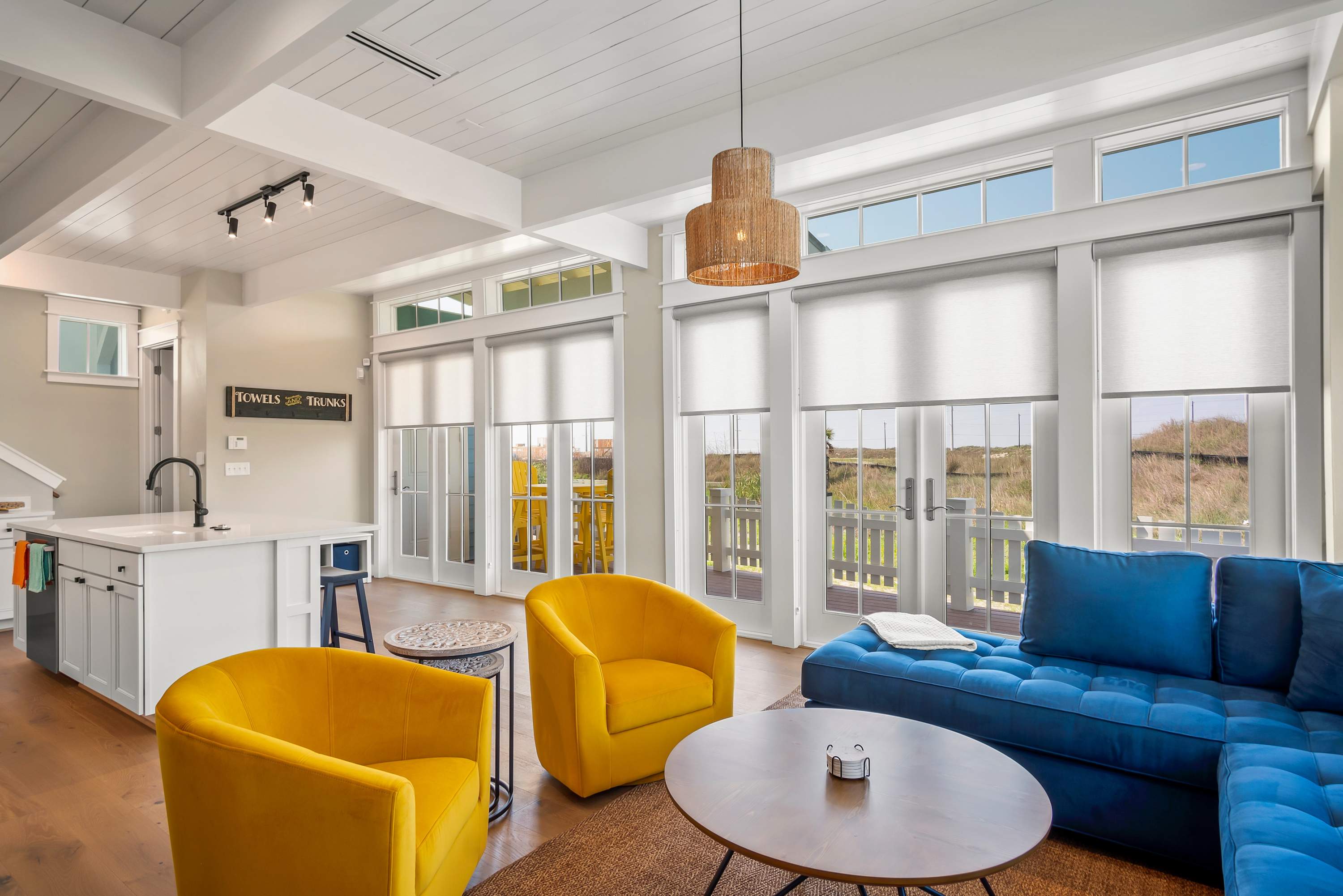 Step into paradise at the brand new Sea’n Stars, located in Sunflower Beach Resort in Port Aransas, TX. Perfect for five, this two-story beach vacation house offers two bedrooms and two and a half bathrooms amid a backdrop of luxury-designed indoor and outdoor living spaces to make your Texas Coast vacation extra special.