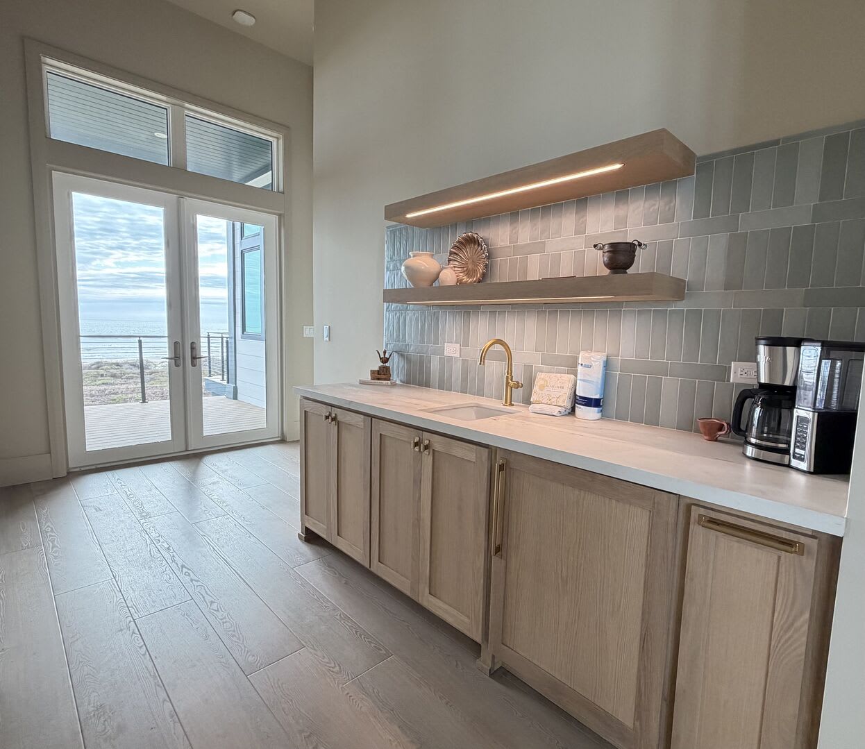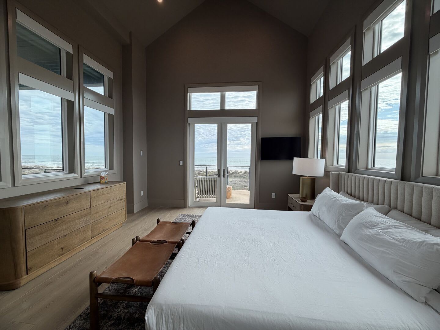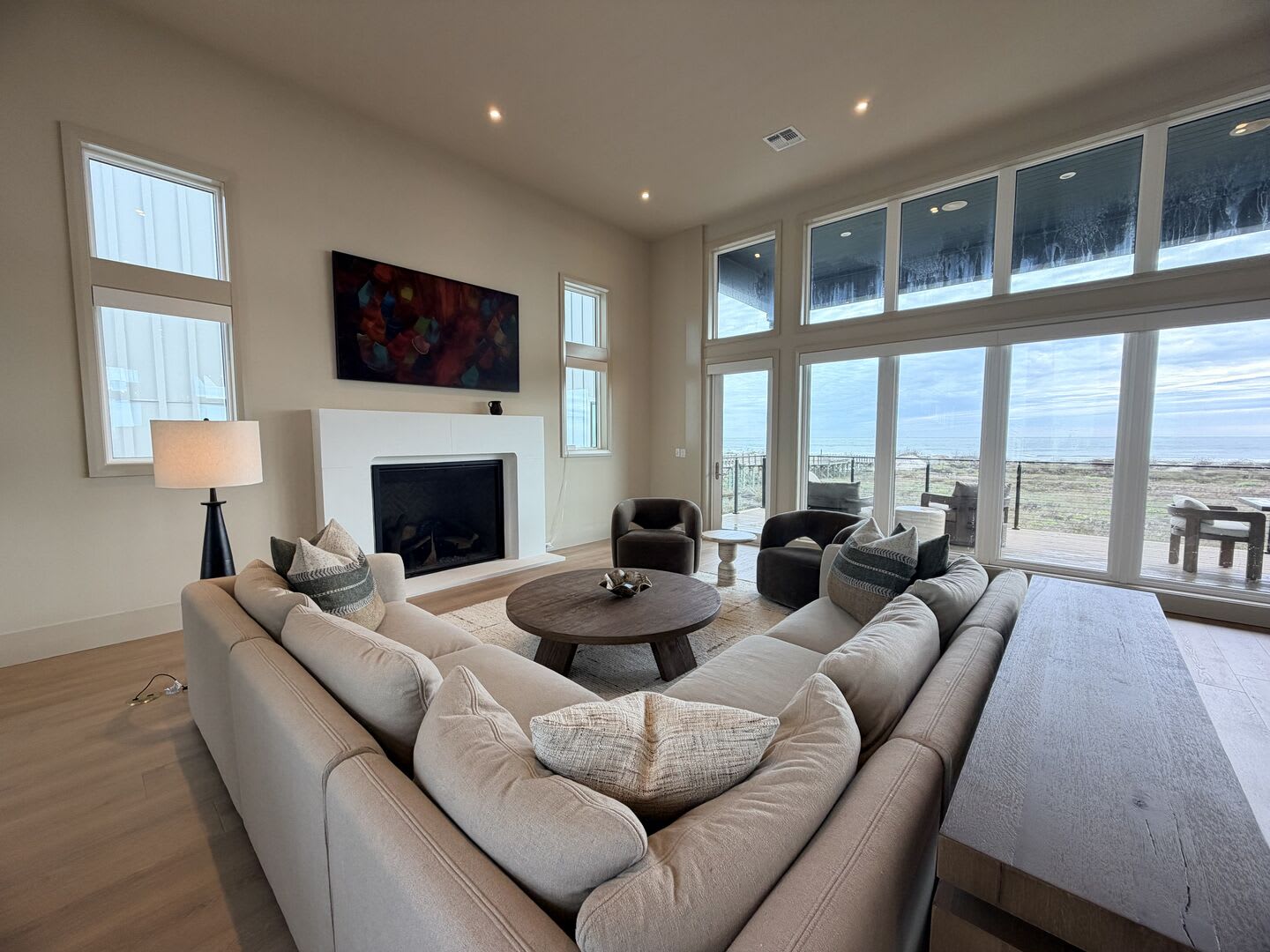A striking floating staircase leads to the tower room, complete with a Sub-Zero mini fridge and coffee bar, where you can savor breathtaking panoramic views of the Port A coastline. Experience stunning sunrises and sunsets from this elevated perch, making every moment spent here truly unforgettable.
