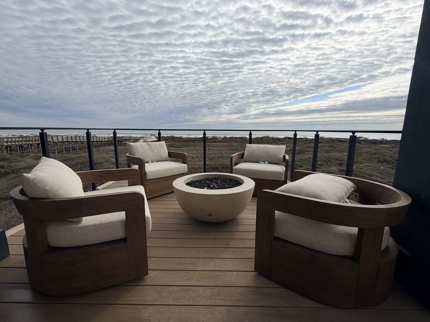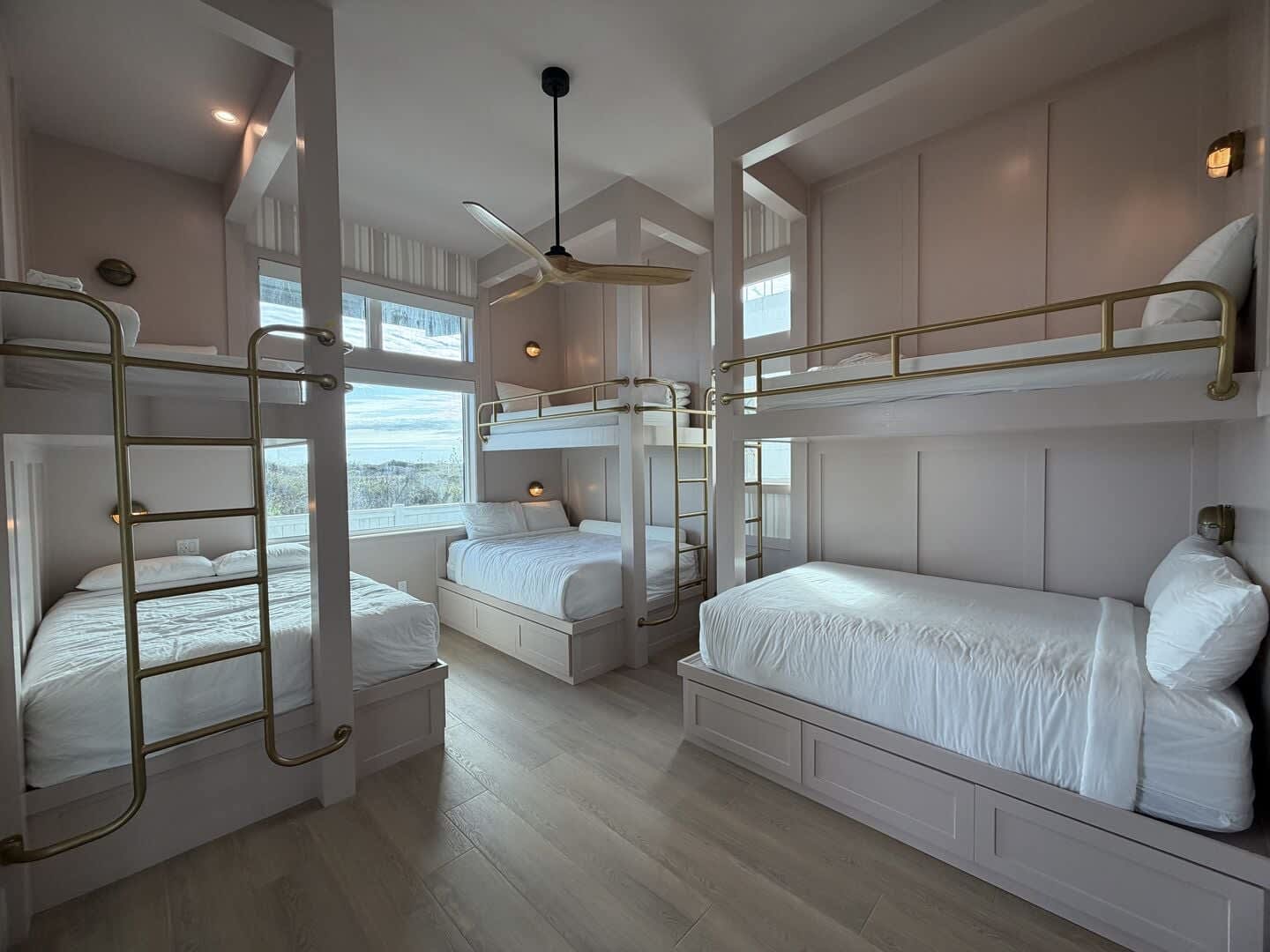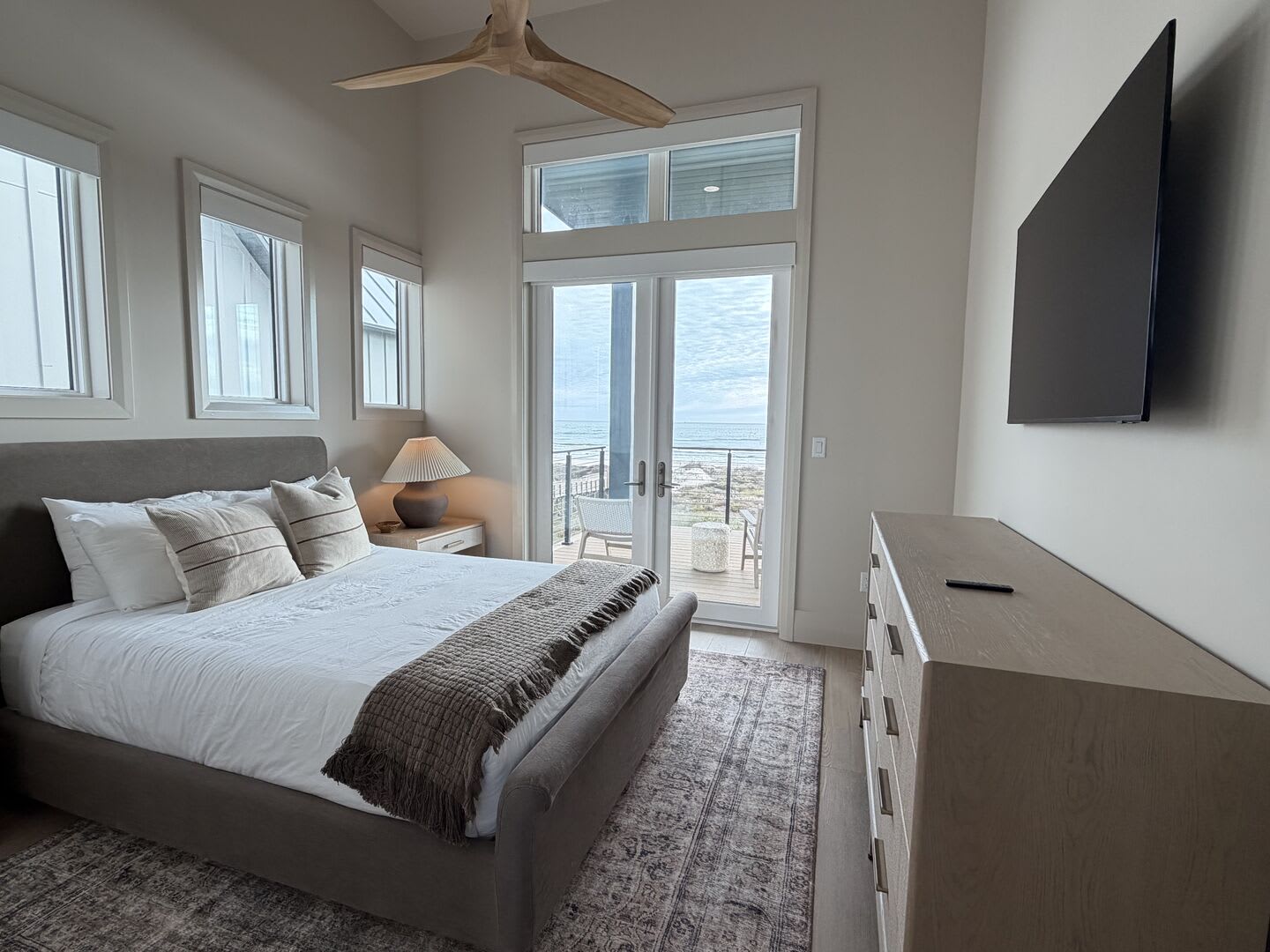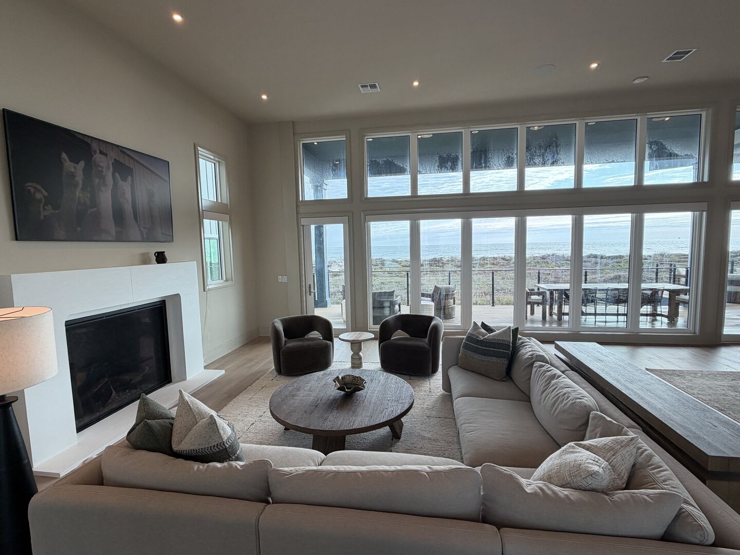 A striking floating staircase leads to the tower room, complete with a Sub-Zero mini fridge and coffee bar, where you can savor breathtaking panoramic views of the Port A coastline. Experience stunning sunrises and sunsets from this elevated perch, making every moment spent here truly unforgettable.