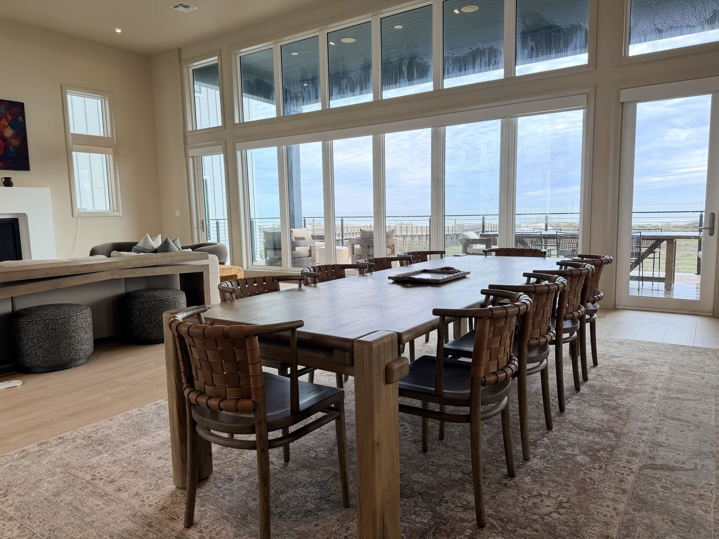 The second level is where the heart of the home truly shines. The open-concept floor plan seamlessly blends the main living area, dining space, and gourmet kitchen. The inviting living room features a large sectional sofa and side chairs, providing a comfortable space for movie nights. Gather around the massive dining table that seats ten, with five additional seats at the kitchen island, perfect for entertaining family and friends.