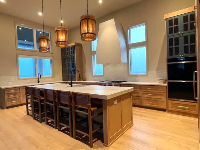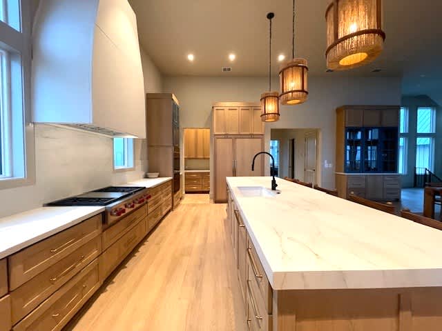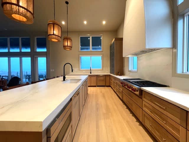 Step inside to discover a chef's dream kitchen, complete with a top-of-the-line Wolf gas range, double ovens, two dishwashers, and two sinks. The Butler's pantry and Sub-Zero refrigerator provide ample storage and prep space, while the expansive countertops make entertaining a breeze. A breathtaking window wall stretches the length of the kitchen, flooding the space with natural light and offering a picturesque view of the outdoor deck, perfect for enjoying your morning coffee while soaking in the beauty of the sunrise.