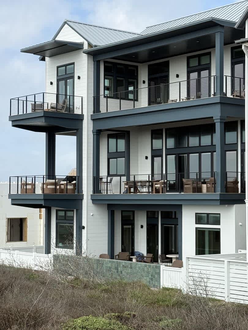 Ascend to the third level to discover three generously-sized guest bedrooms, each with its own ensuite bath, as well as the luxurious primary suite. All bedrooms provide access to the large deck that runs the length of the home, where you can unwind and listen to the soothing sounds of the Gulf.