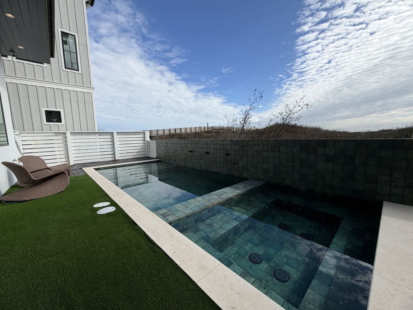 Step outside to your private oasis featuring a heated pool, ideal for year-round enjoyment. Fire up the propane grill and cook up your fresh catch while soaking up the sun in your own backyard paradise. The shared boardwalk to the beach is just steps away from the house.