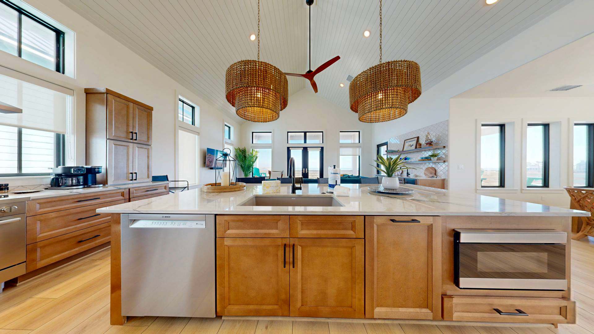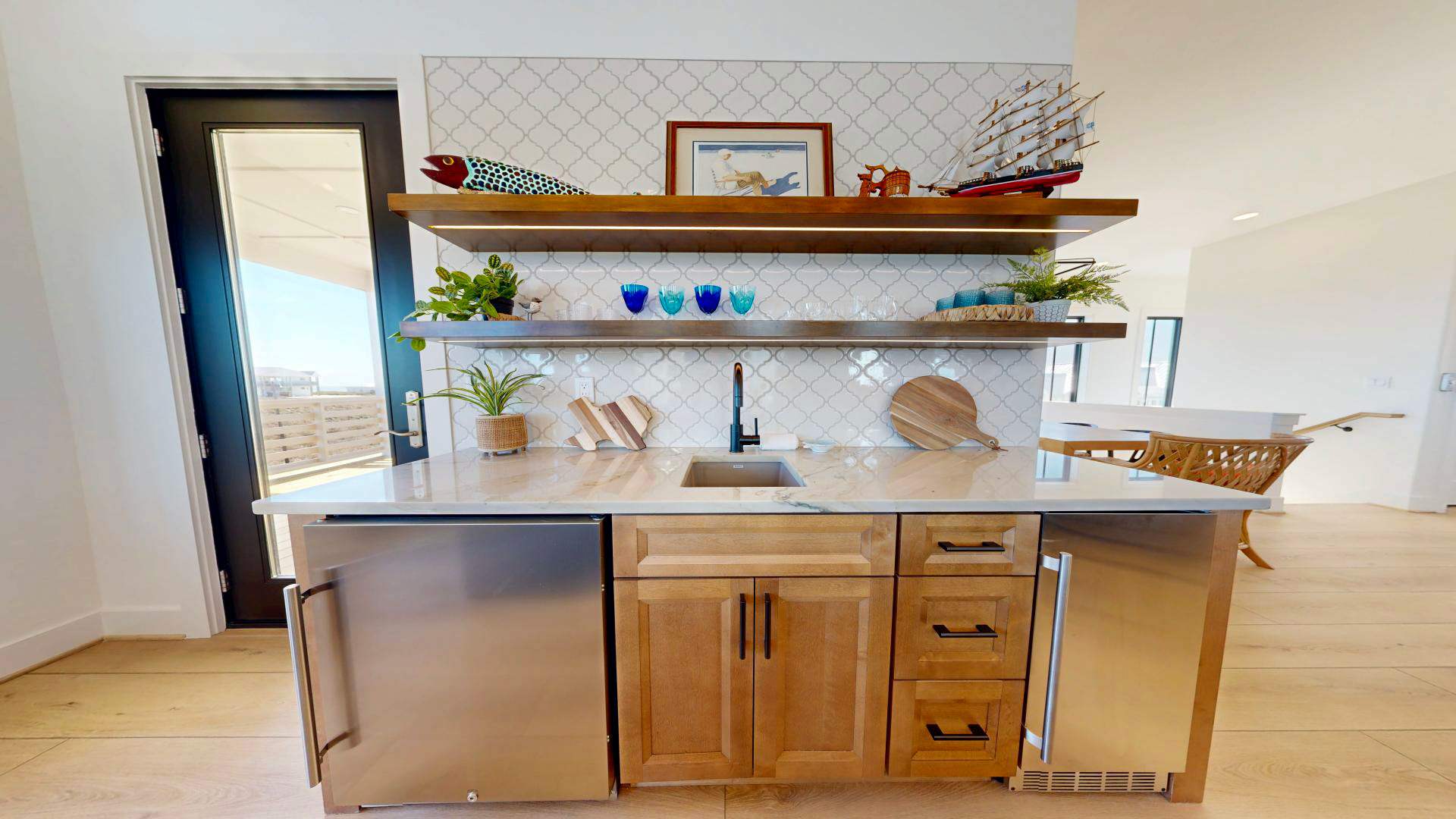 Level one welcomes you with a charming entry and a convenient mudroom area, perfect for storing beach gear and everyday essentials.