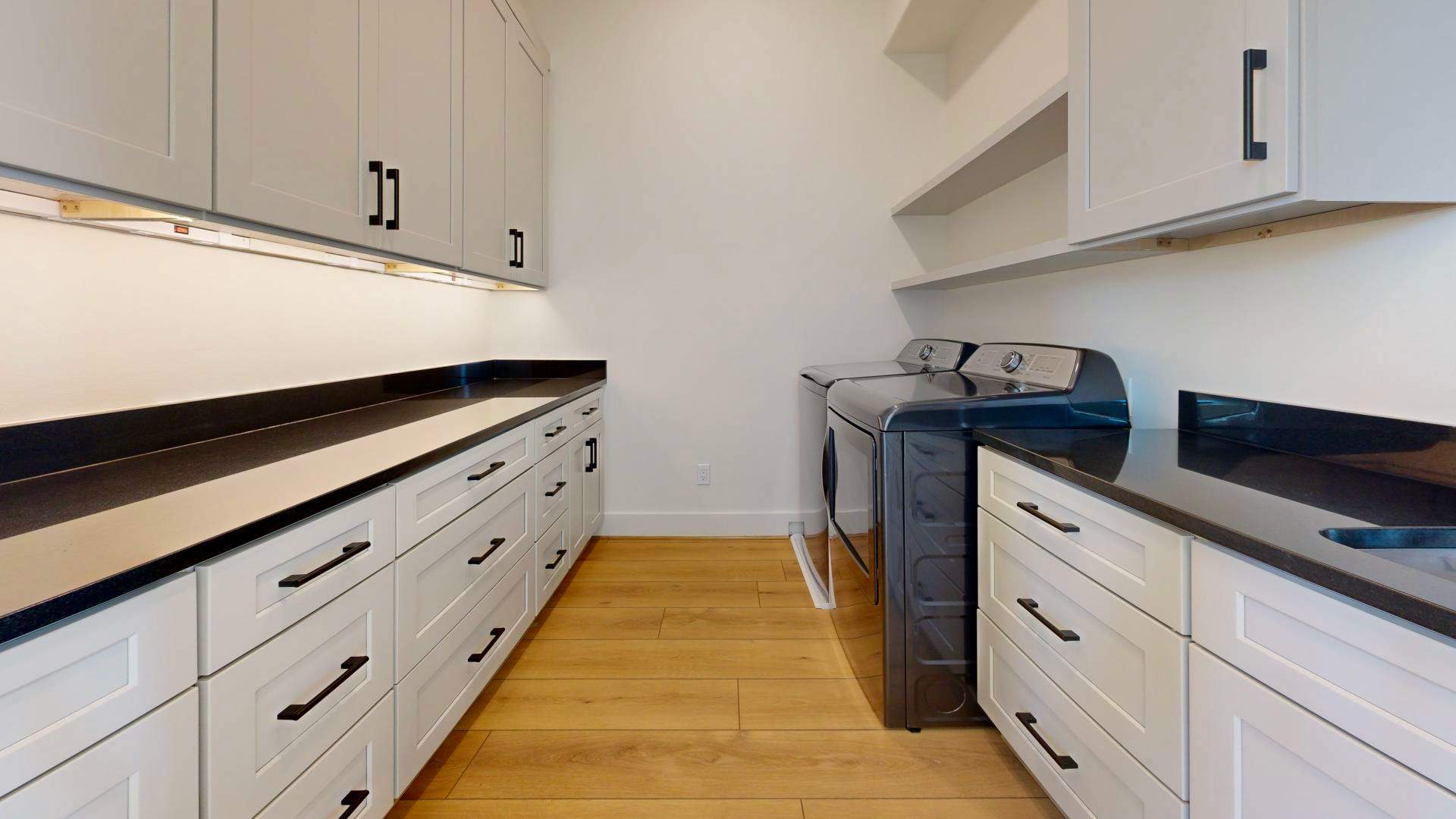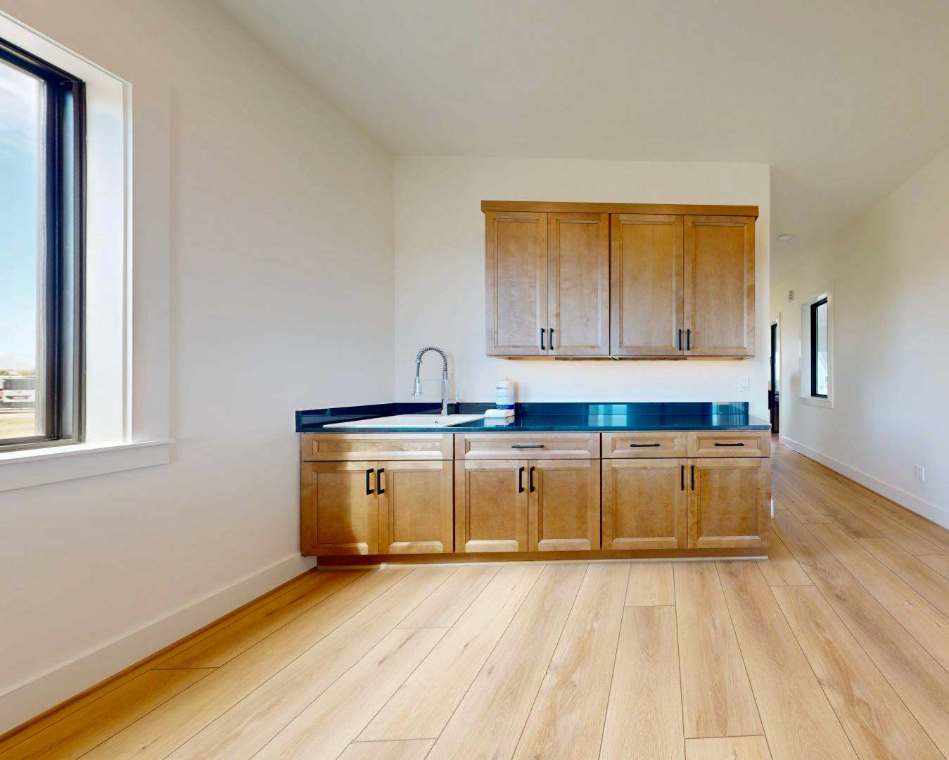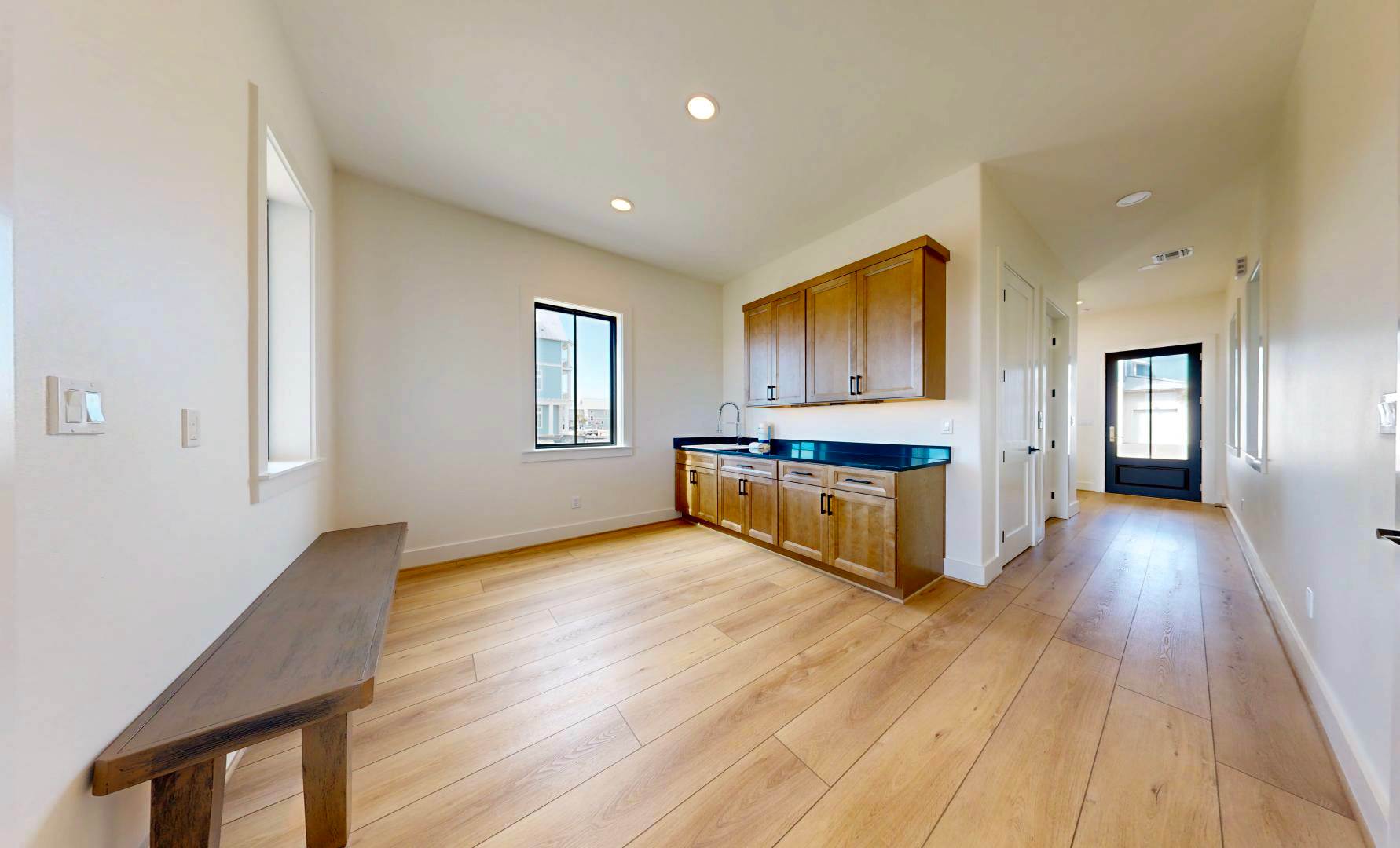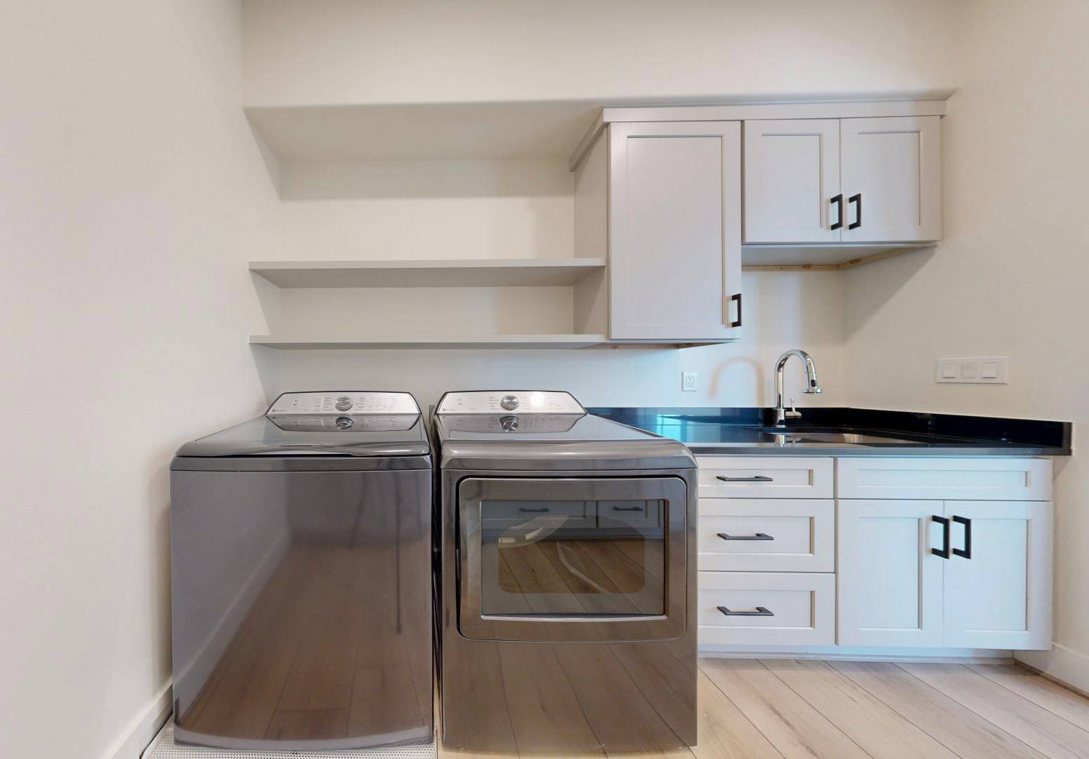 Ascend to Level Three, where the main living area captivates with its expansive open floor plan. Relax in the inviting living space, furnished with a sectional sofa and additional seating, perfect for gatherings. The stylish bar area boasts an ice maker and beverage fridge, ensuring you have everything you need for entertaining. The fully stocked kitchen is a chef's dream, featuring stainless Bosch appliances, abundant counter space, and a large island for meal prep and socializing. The spacious dining table is perfect for family meals or game nights, with extra seating available at the kitchen island.