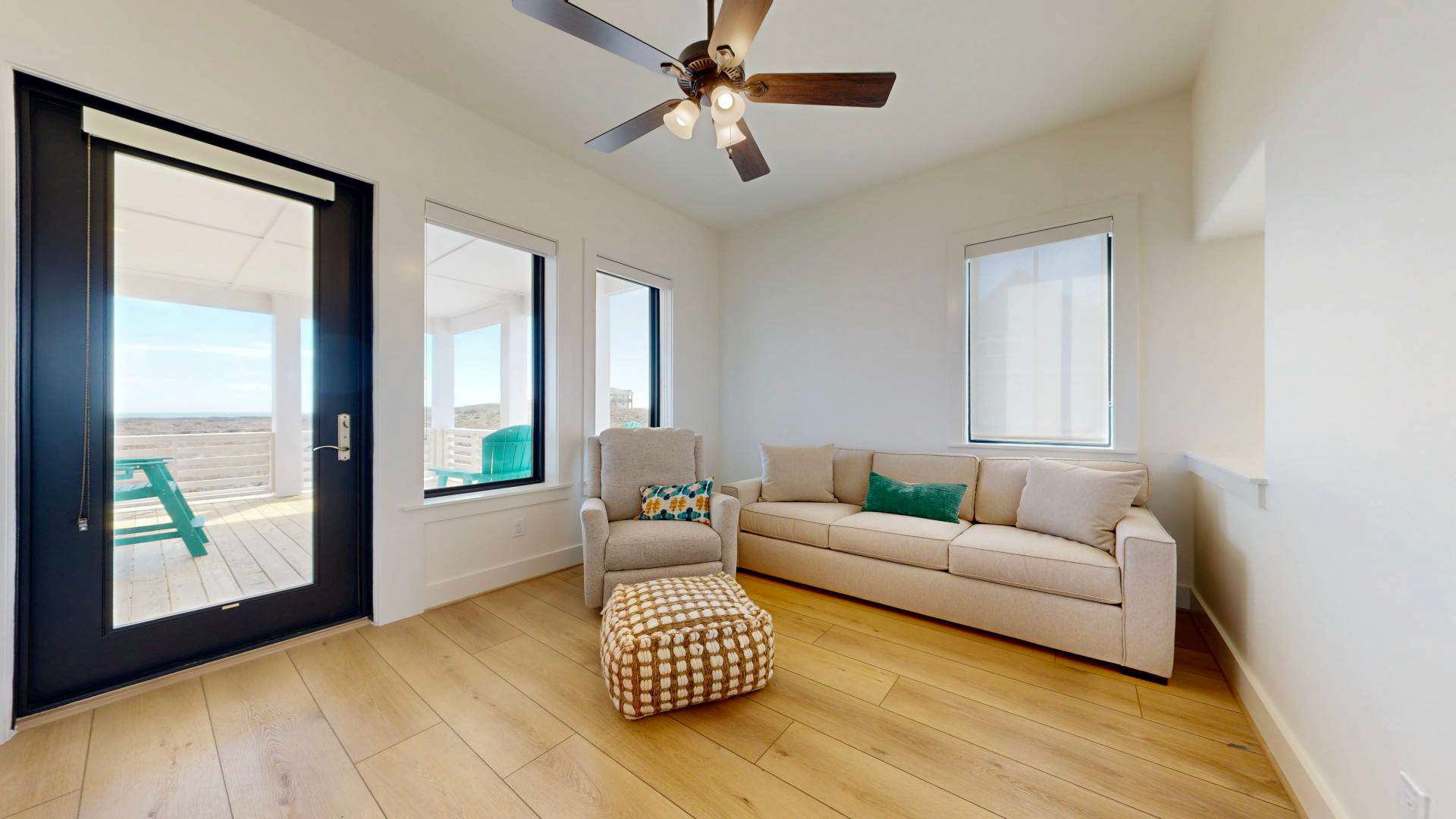 Level two features three spacious bedrooms and three well-appointed bathrooms, providing ample space for family and guests. Enjoy a cozy lounge area, complete with a sofa that folds out into a queen sleeper, making it ideal for extra guests. Step out onto one of the two balconies to soak in the coastal breeze and stunning surroundings.