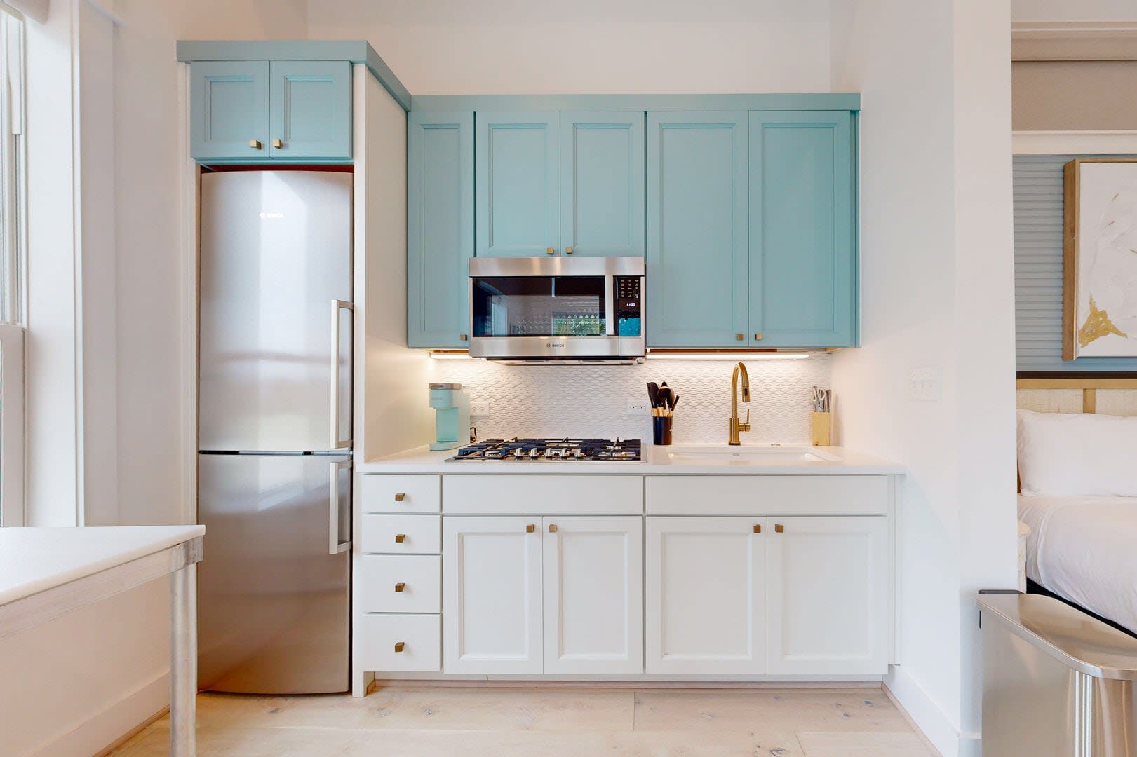 Our cabin ensures that your stay is as comfortable as it is memorable, boasting all the essentials you need and more, a perfectly appointed kitchen with a gas cooktop and microwave, ready for your culinary whimsy, a handy washer & dryer to cater to all your needs, allowing you to pack light and stay fresh.