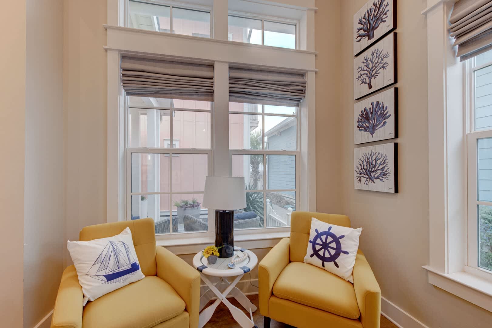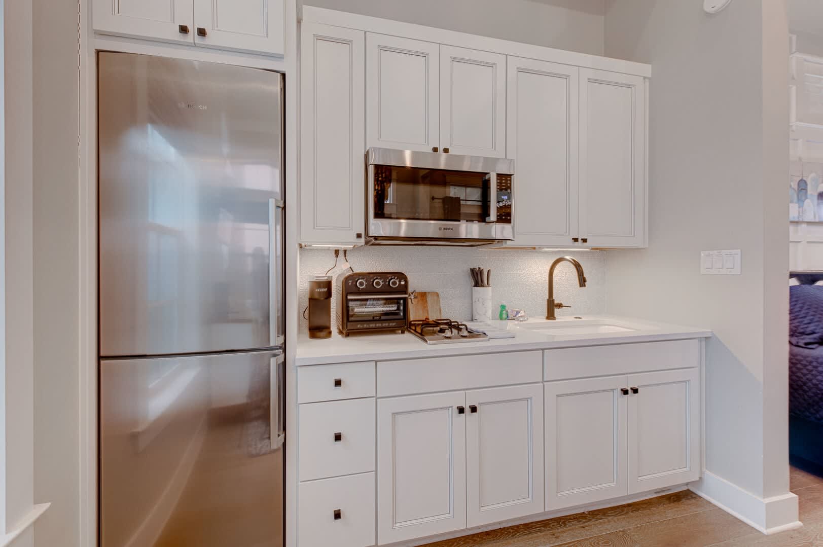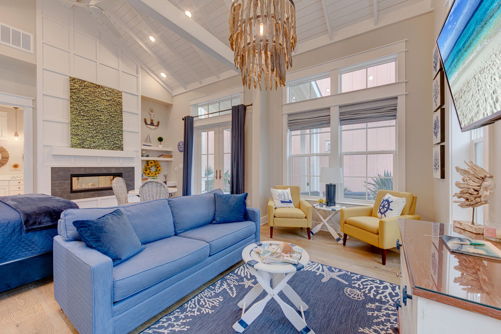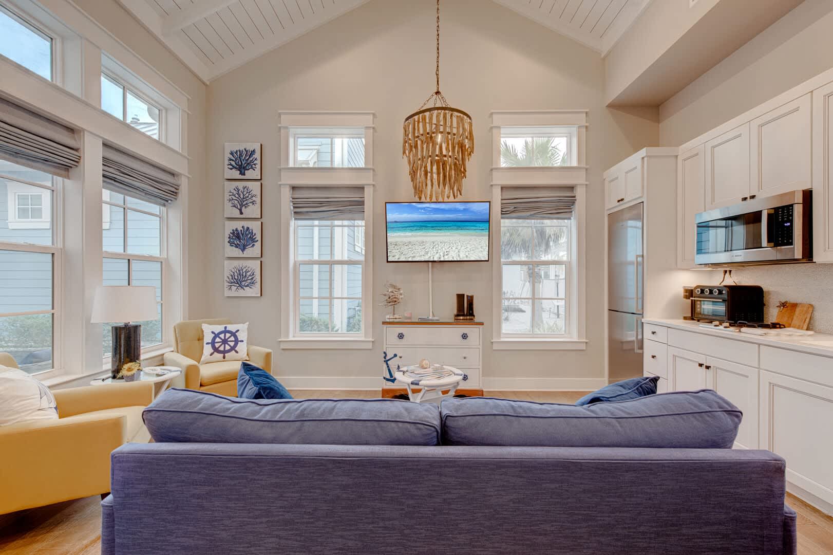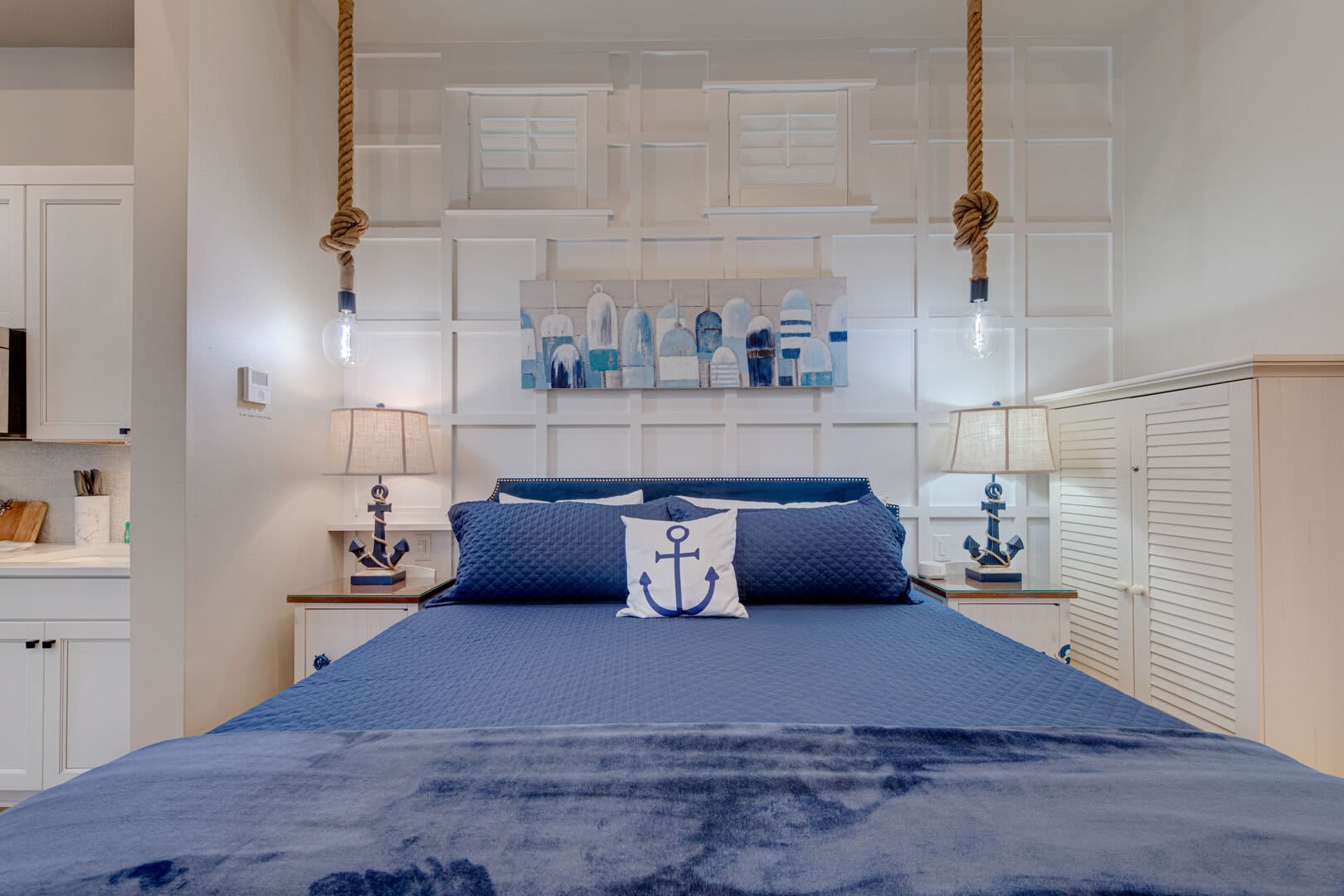 As soon as you step inside, you’ll find unique architectural details with fun, beachy décor. The open floor plan boasts stylish furnishings, great natural light, and all the comforts of home. The kitchenette features a gas stove, refrigerator, microwave, and a drip coffee maker that also accepts K-cups. Slip onto the shady patio and dine alfresco or simply chat about the memories you’re making. And don’t forget to post your favorite vacation photos to your social media courtesy of the free Wi-Fi.
