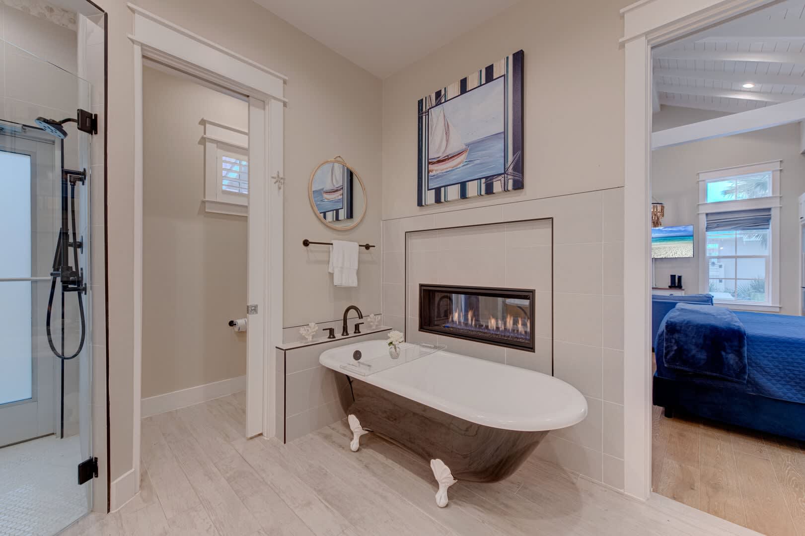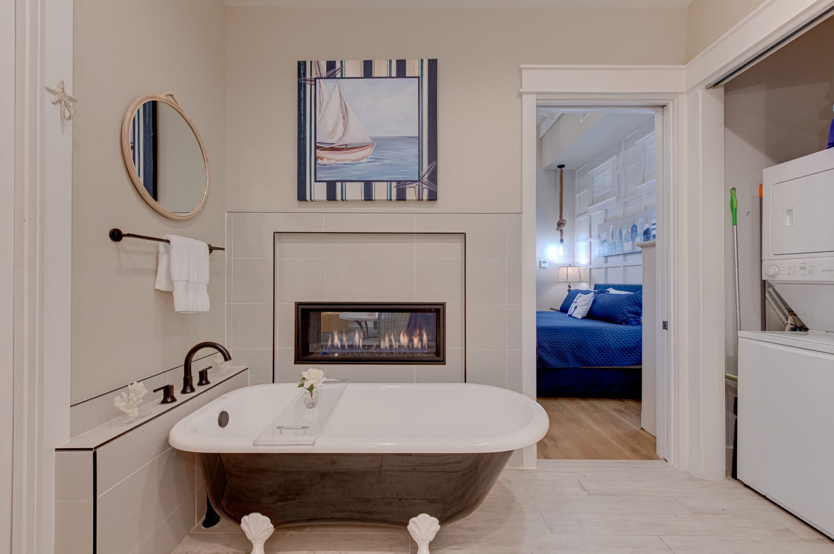 When you’re ready to turn in for the night, you’ll find the primary bedroom has a plush and cozy bed along with two nightstands and bedside lamps. The primary bathroom is truly stunning and features a walk-in shower, dual vanities with quartz countertops, and a claw-foot soaking tub. It might be your favorite spot in the condo! Additional guests can make use of the queen-size sleeper sofa in the living room. At Sunny Anchor, freshly laundered bed linens and towels are provided for you and your guests.