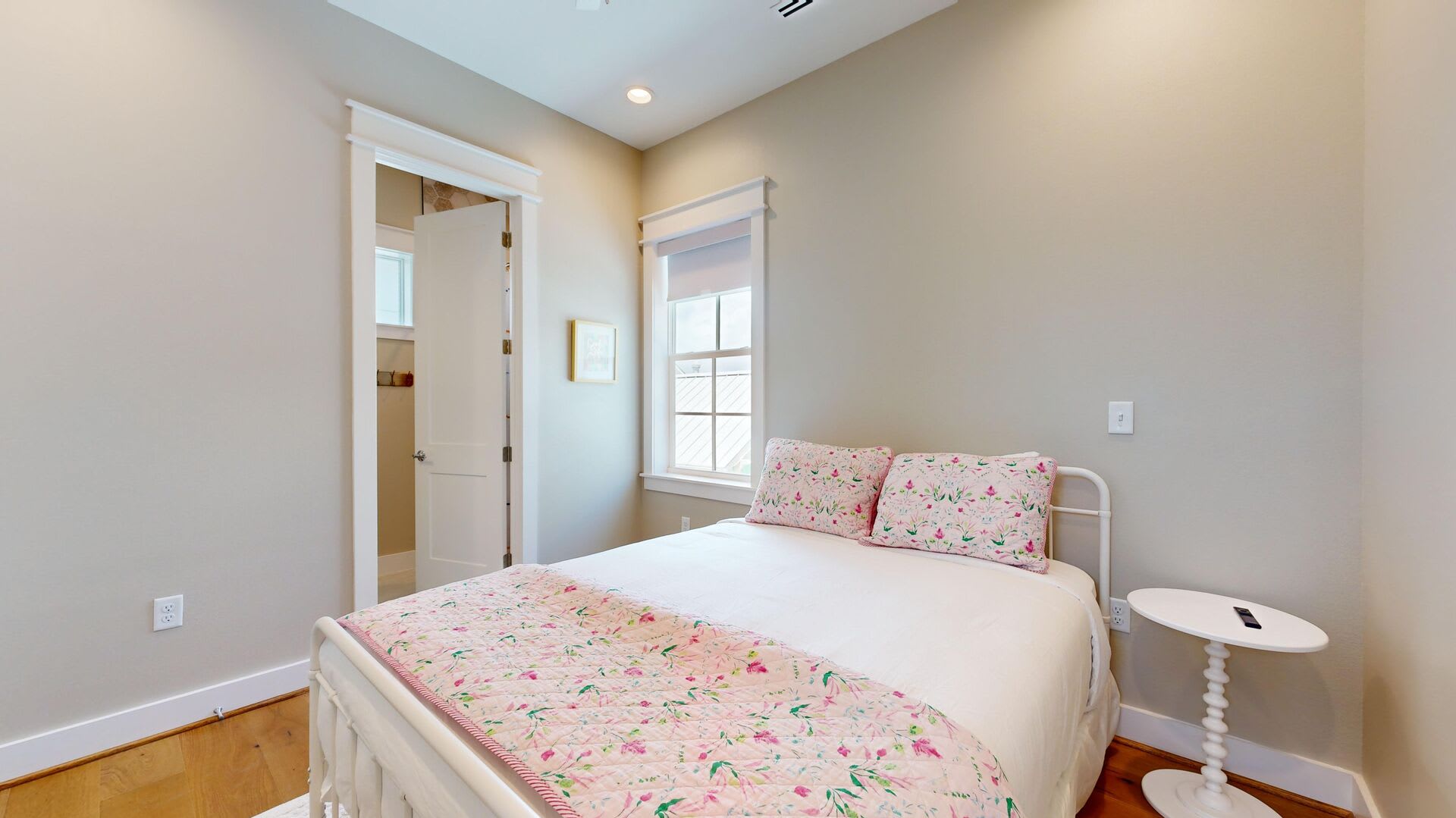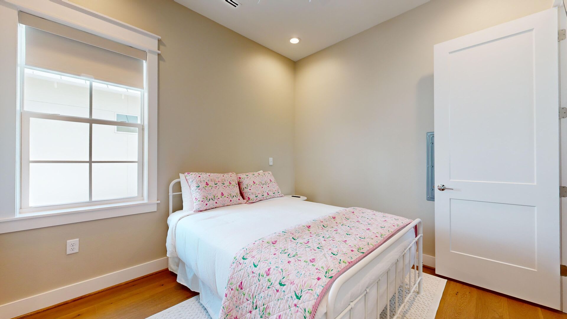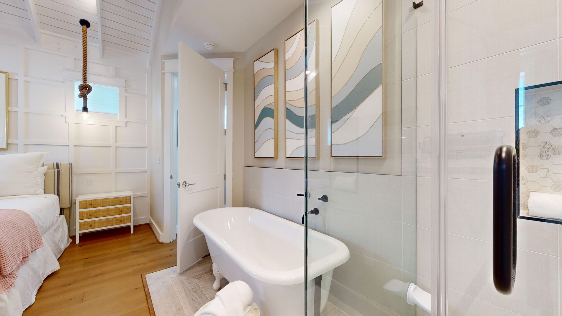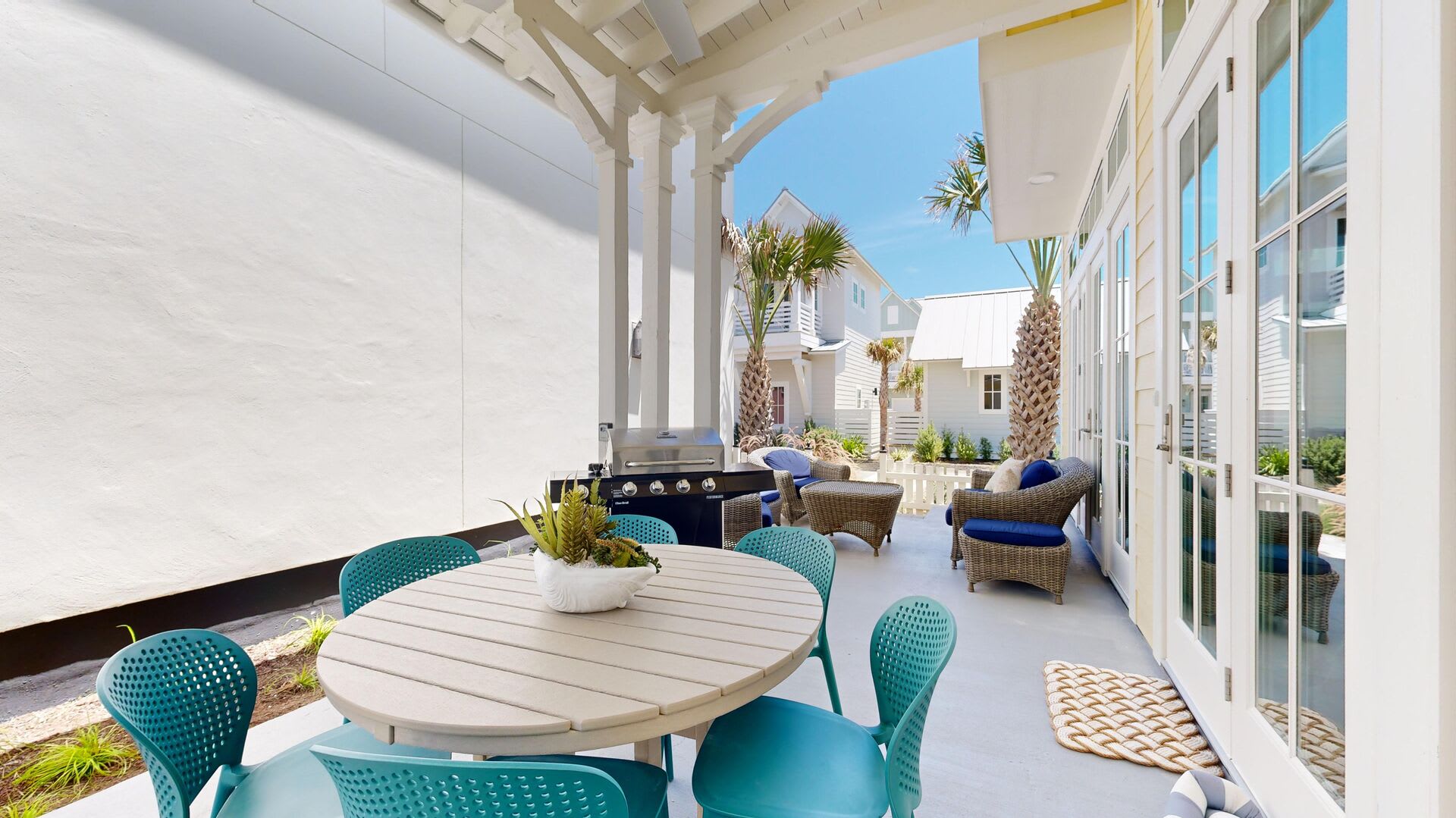 Venture to the second level, where you'll discover two spacious full-size bedrooms, each featuring its own ensuite bath for added privacy and comfort. While the home offers plenty of outdoor hangout areas, the upstairs patio is not part of the guest-accessible spaces and will need to remain locked. A stackable washer and dryer on this level ensures that you can effortlessly keep your beachwear fresh throughout your stay.