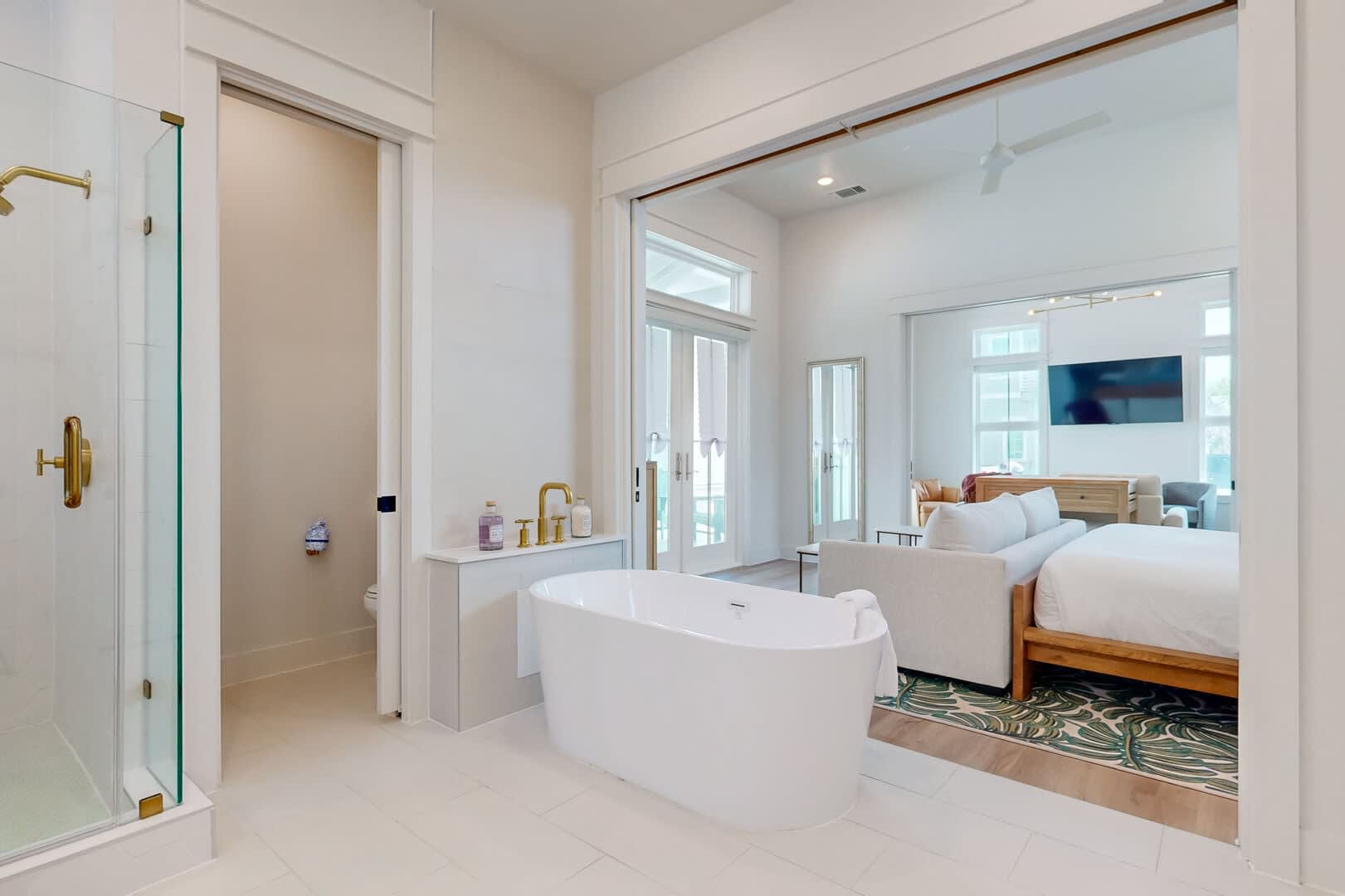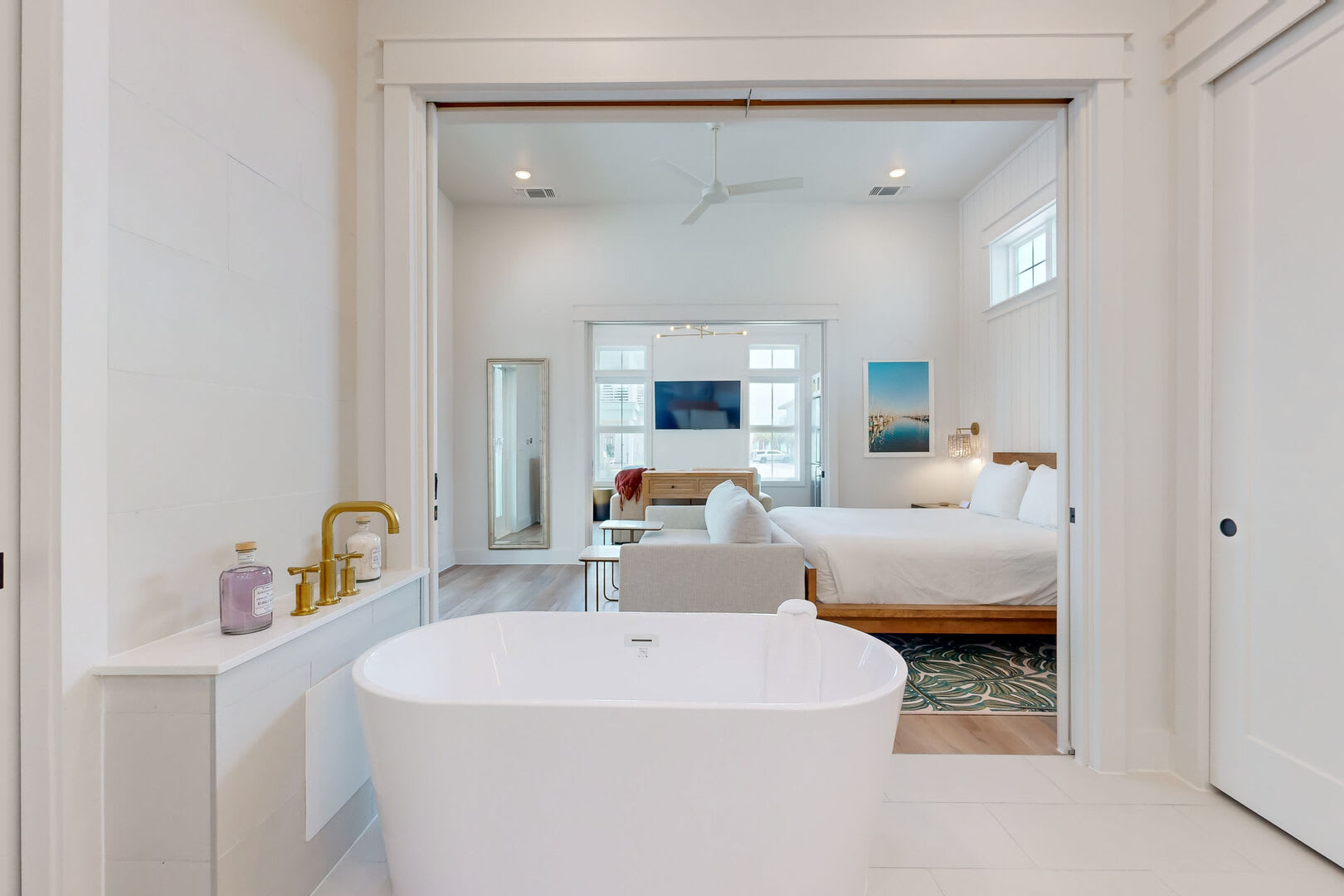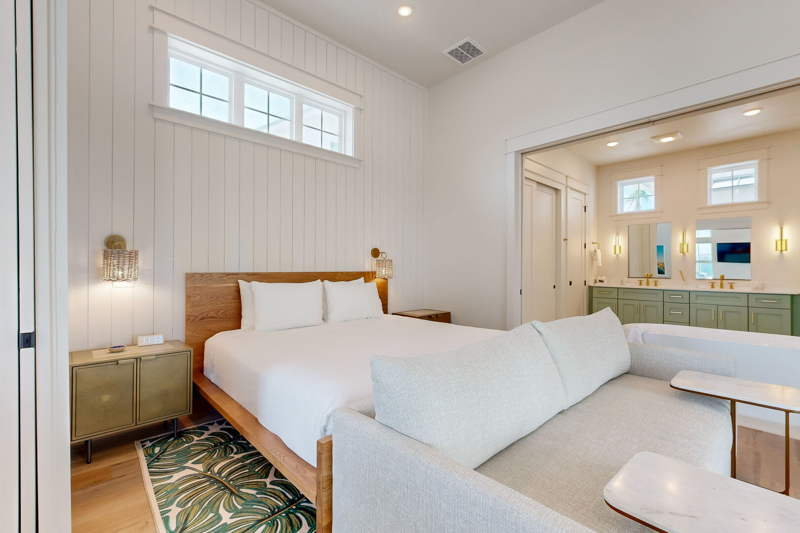 BR1 King, Queen sofa sleeper, ensuite bath w/ soaking tub, walk-in shower, dual vanity