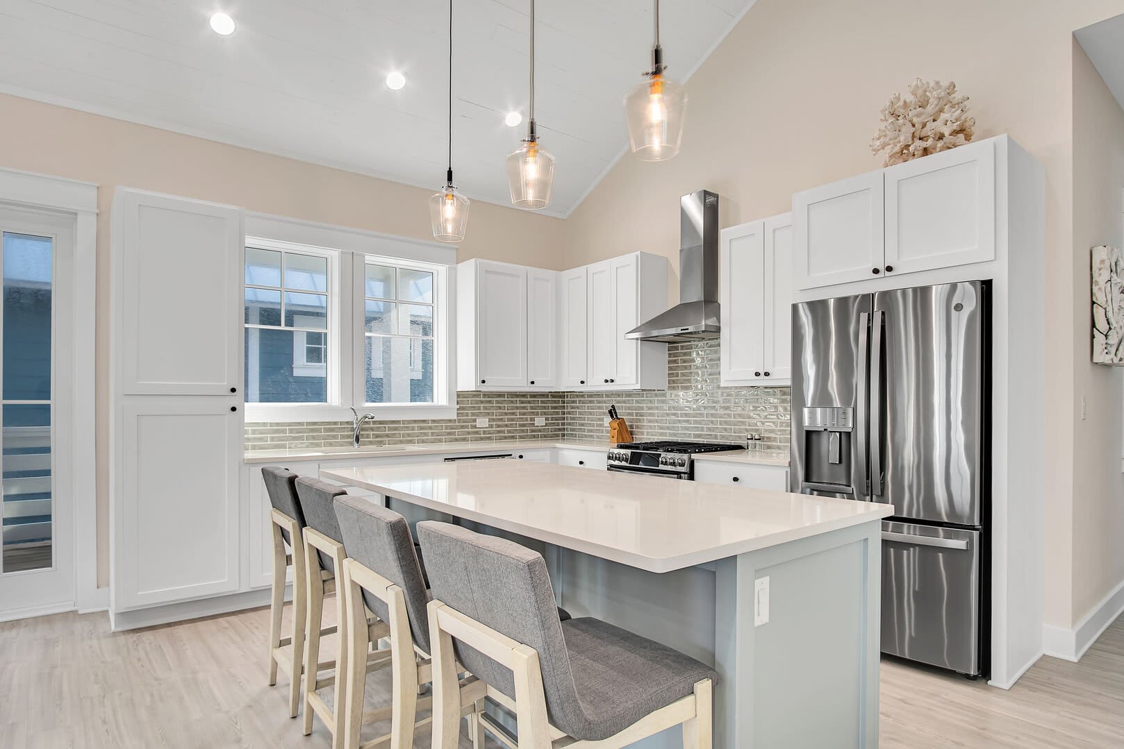 Enjoy the smooth sounds of the Ocean at The Sandbar! This meticulously decorated home is located in the prime subdivision of Sunflower Beach Resort. Use the private boardwalk over the dunes to the beach. Relax and listen to the waves roll in at the charming Sandbar Vacation Home! This home boasts an island-style interior with wood floors and coastal chic chic-style furniture; perfect for families vacationing together. Enjoy the open living, dining and kitchen combination. The kitchen boasts new stainless-steel appliances and a large 8-person dining table. For additional seating enjoy the breakfast bar that seats 4. Step outside off the dining room/kitchen doors onto a spacious deck where you can have dinner on the outdoor dining table or relax in the ocean breezes. Enjoy everything The Sandbar has to offer. This perfect location is perfect for soaking up sun rays at one of the two community pools or taking a short golf cart ride into town for nightly activities.